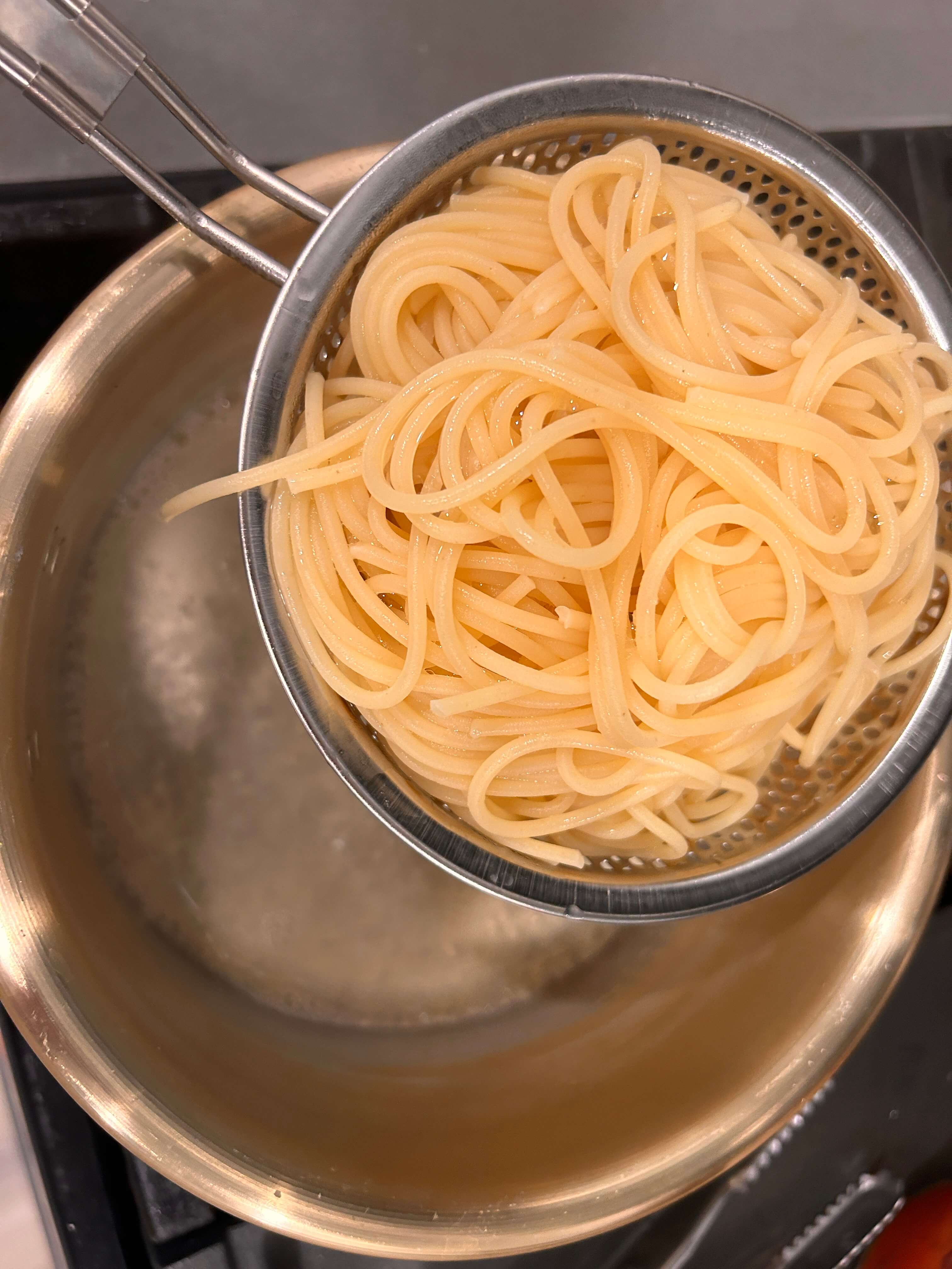 5. 면을 삶아 준비해 줍니다. (보통 7분)