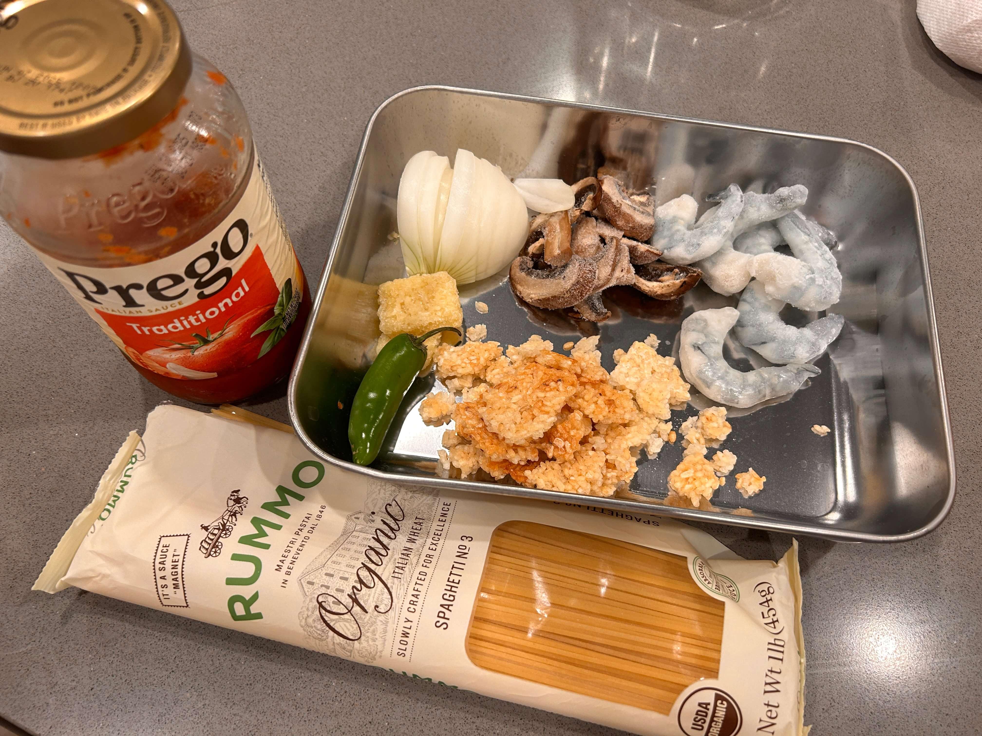 1. 토마토소스, 파스타면, 누룽지가 주 메인이고 그 외에 넣고 싶은 각종 야채나 해산물을 준비해 줍니다.