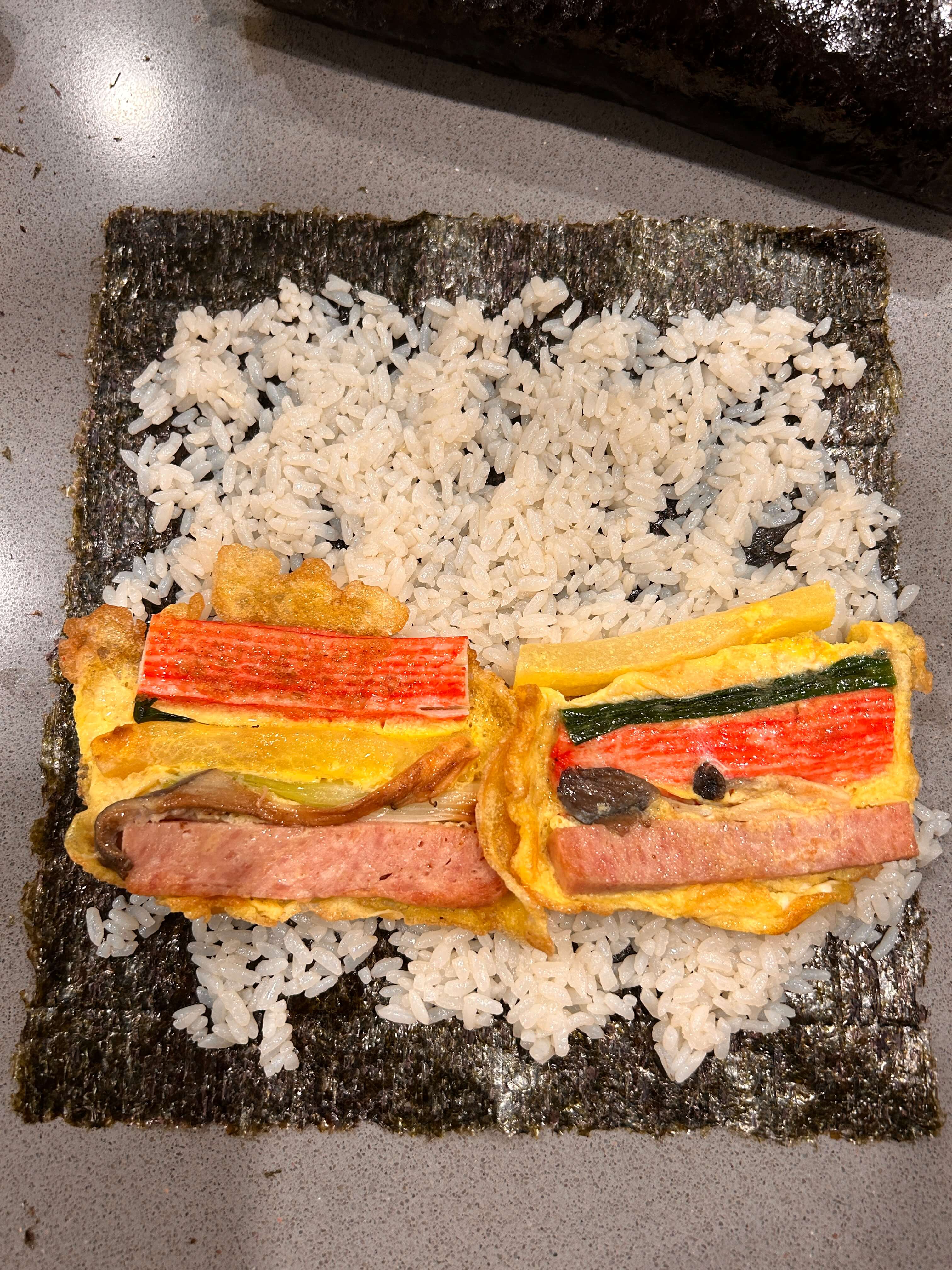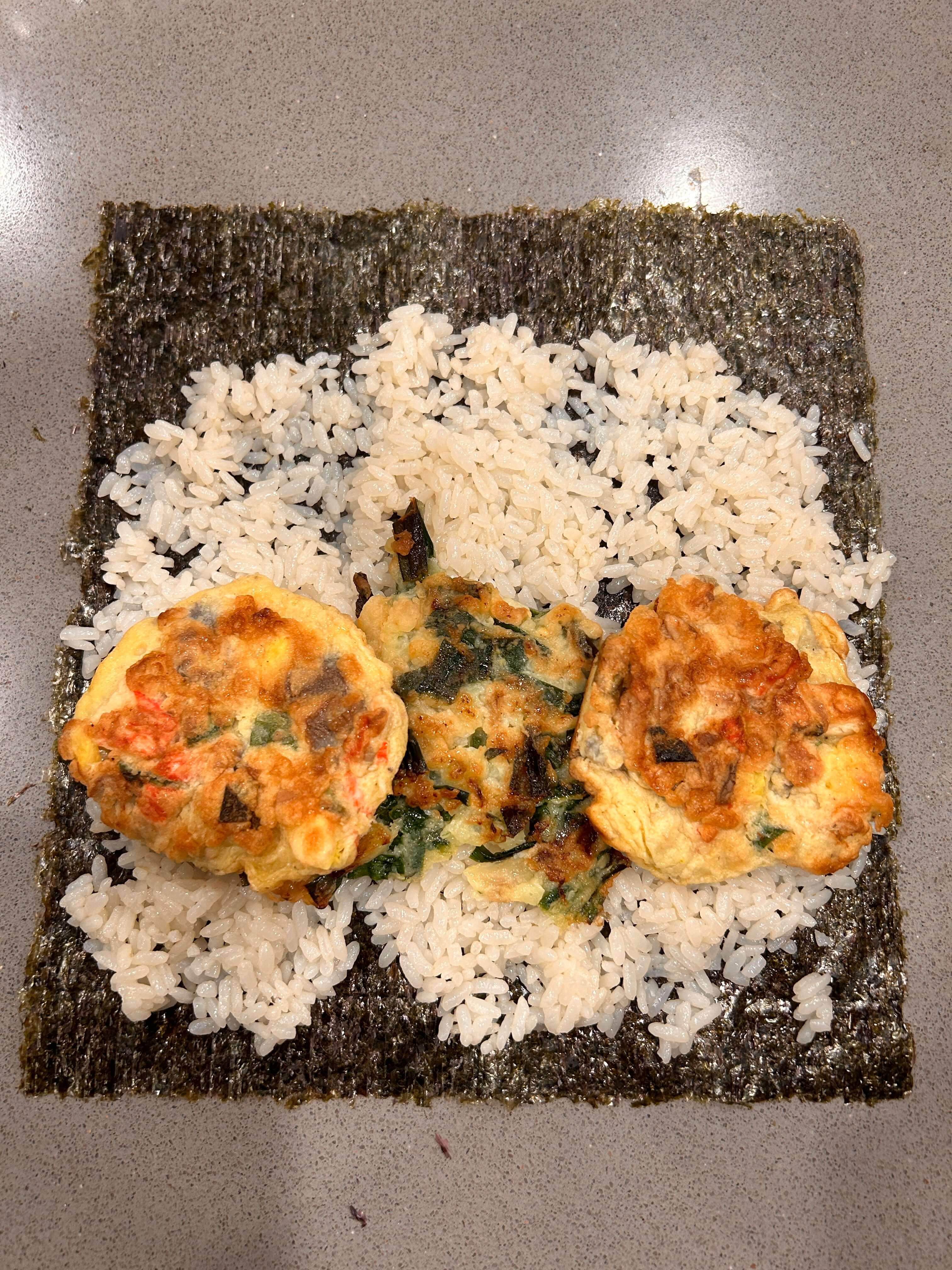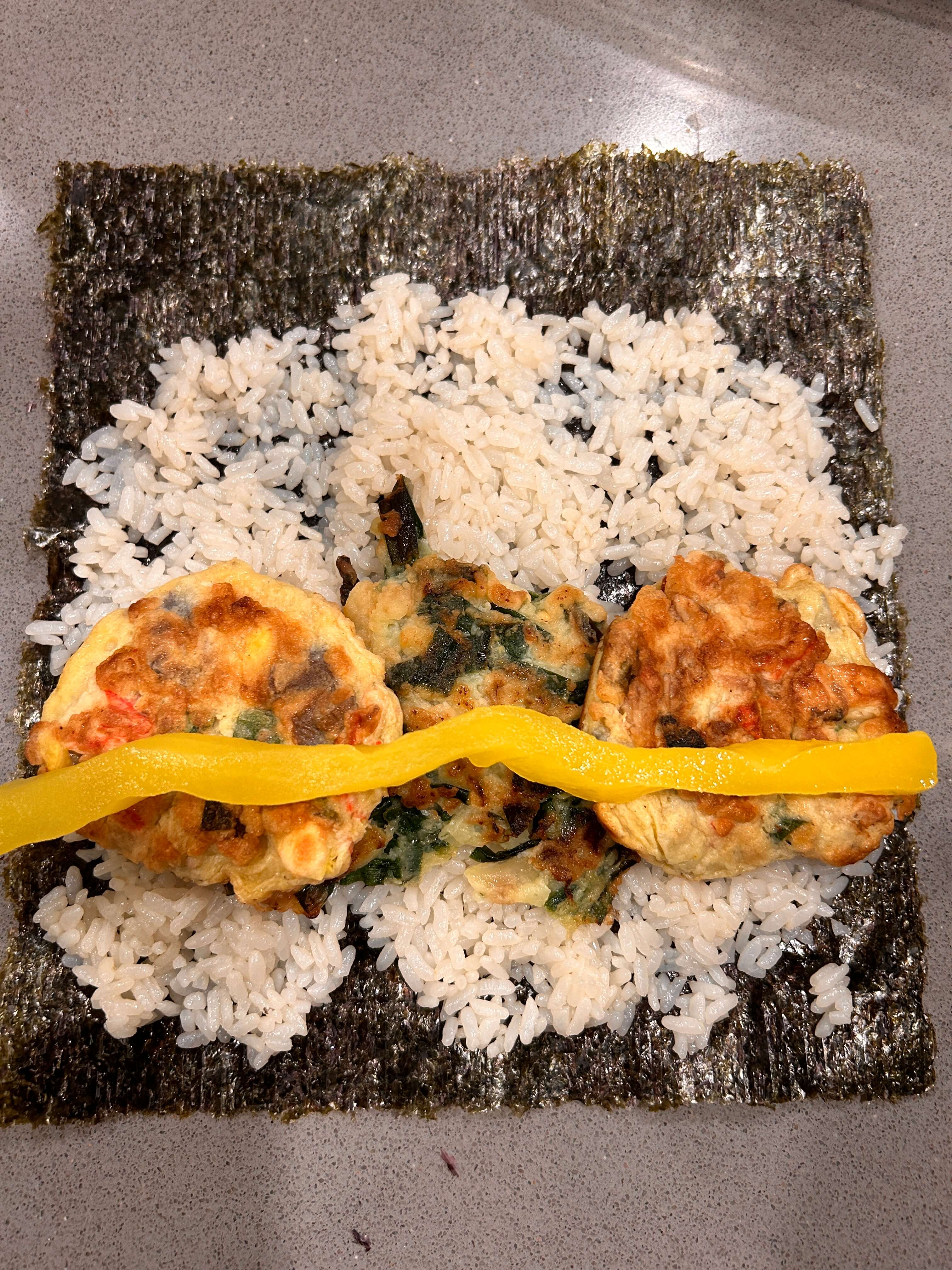 2. 김 위에 밥을 골고루 펴줍니다.