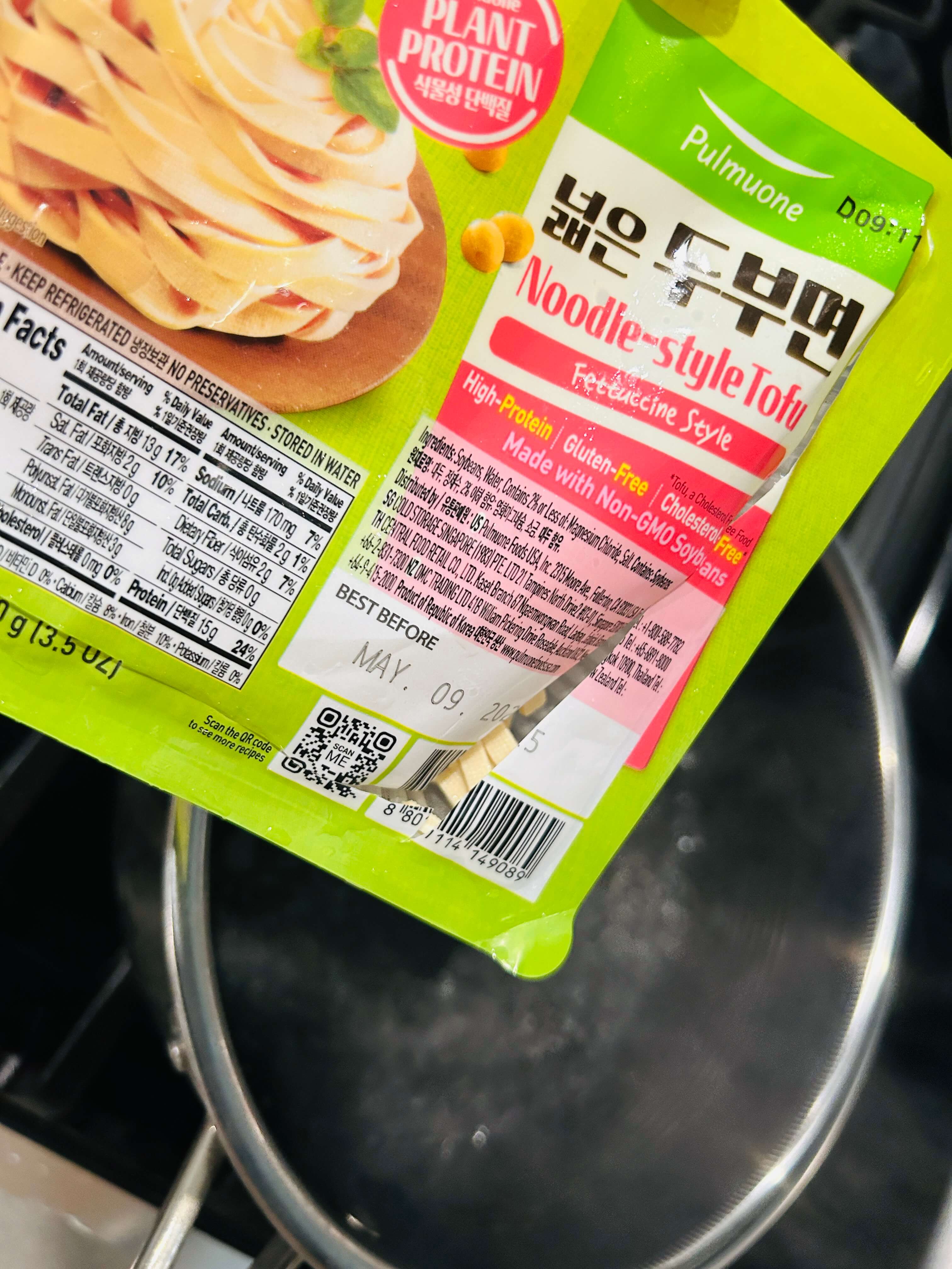 10. 두부면을 뜨거운 물에 살짝 데쳐줍니다.