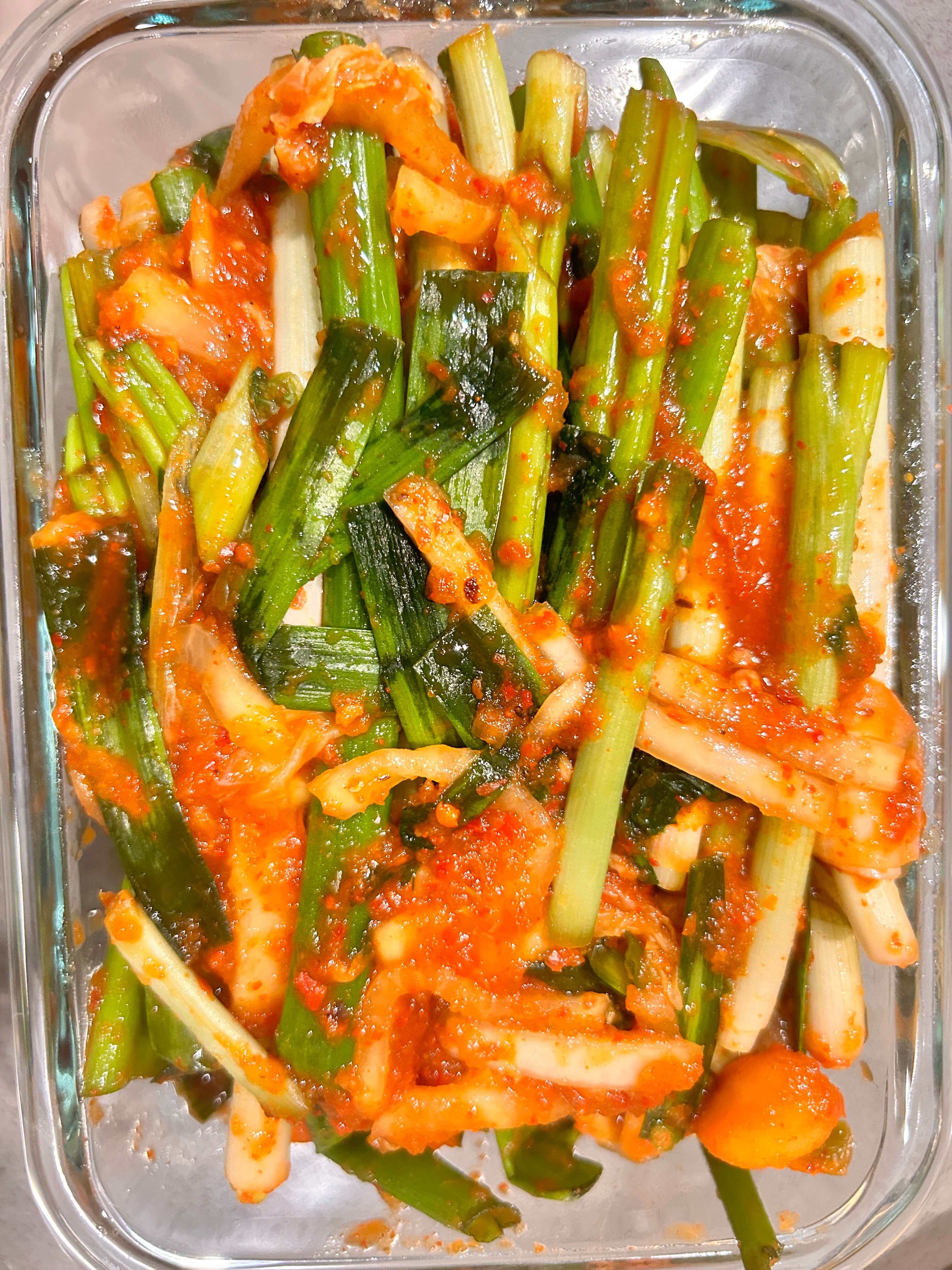 13. 남은 양념장으로 쪽파를 넣어 파김치도 만들어 줍니다.