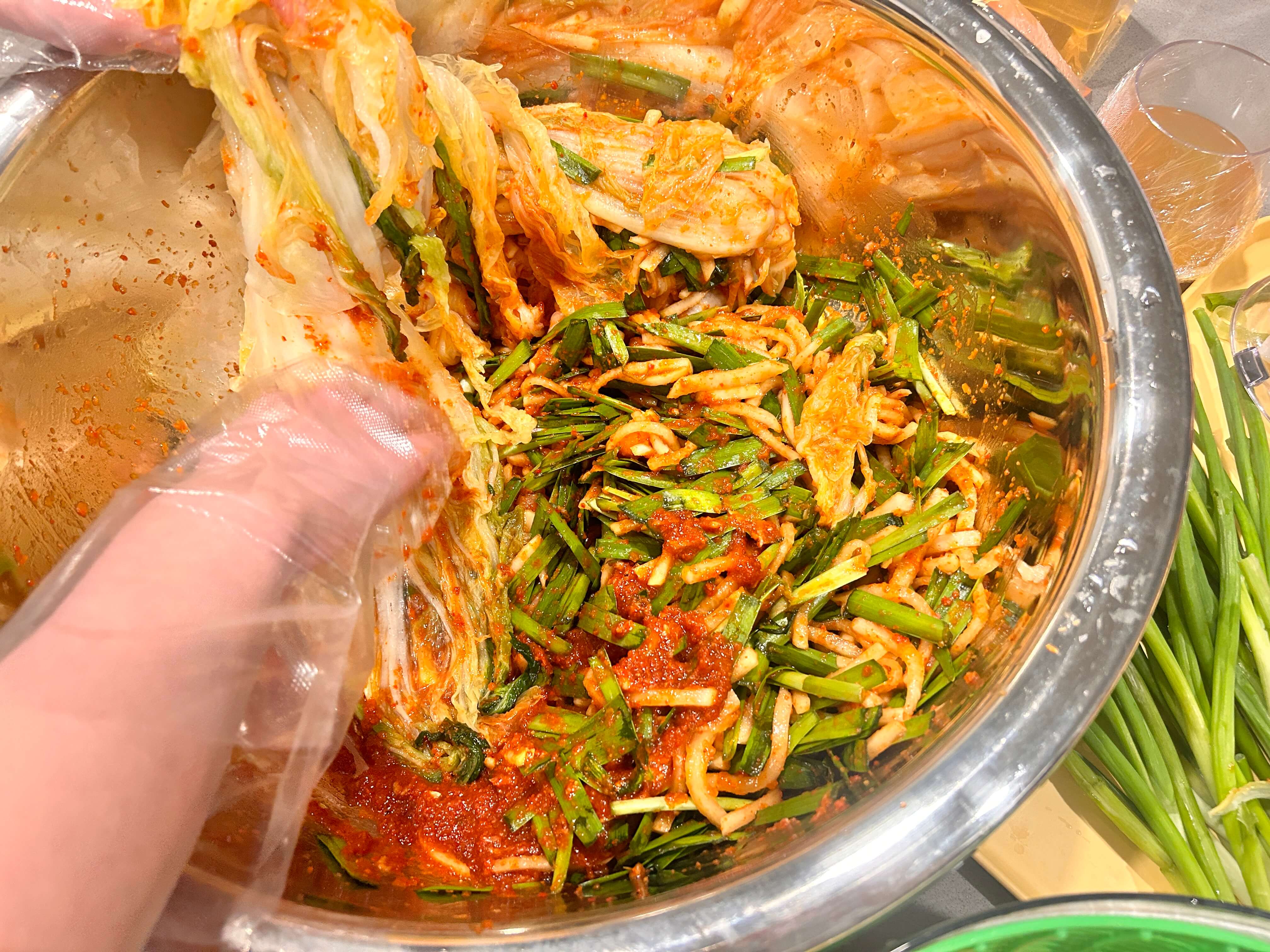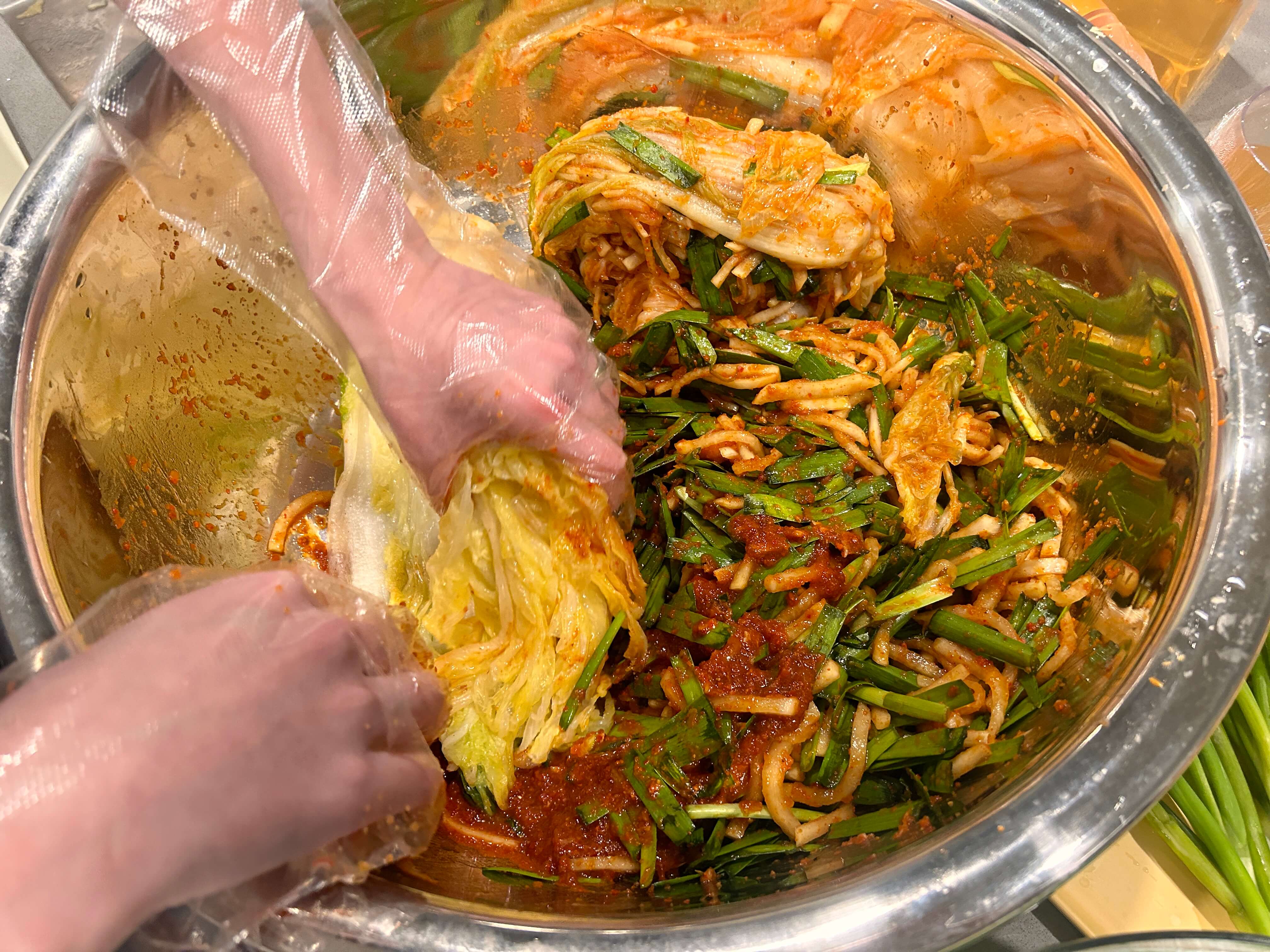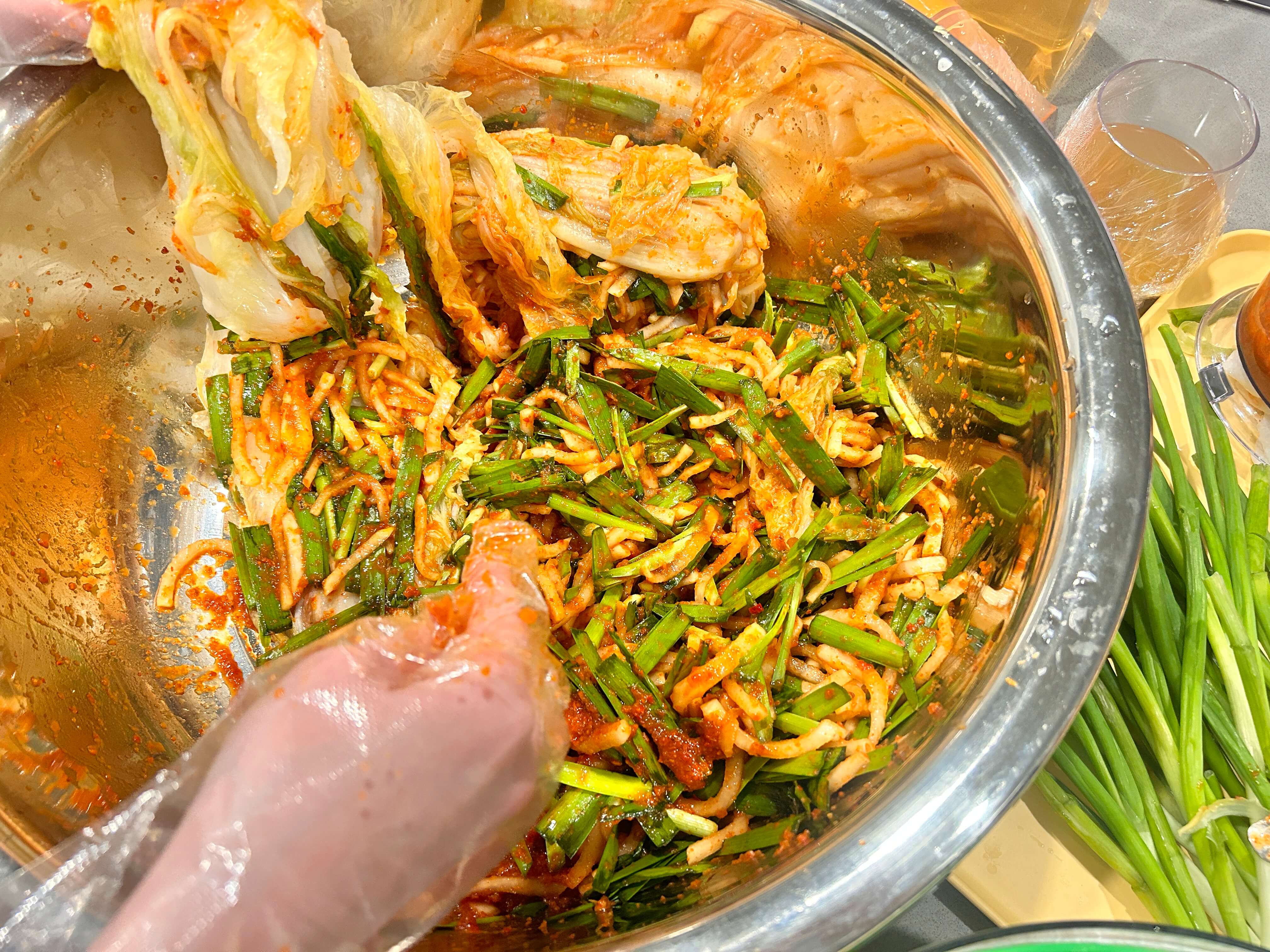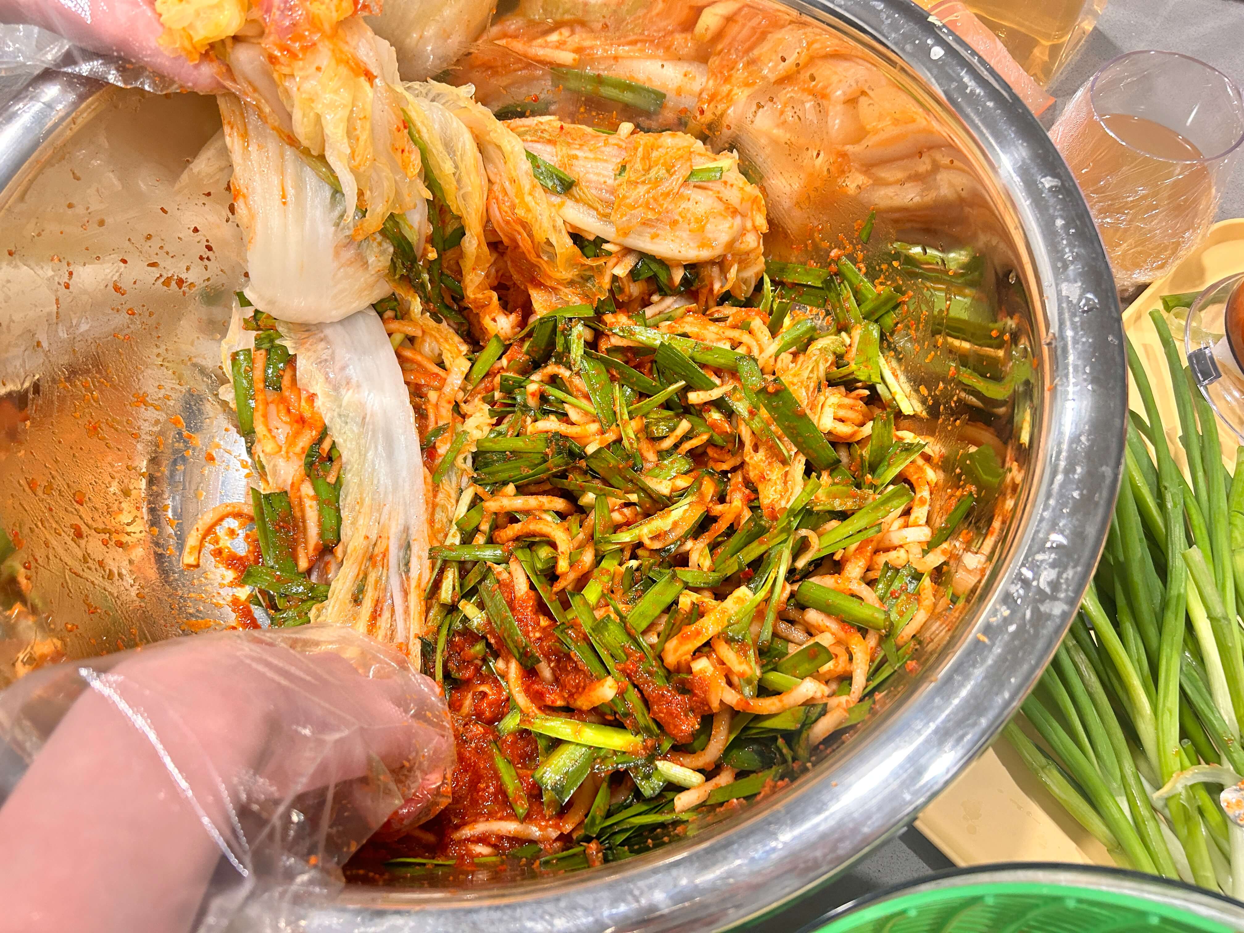 11. 절여진 김치를 속재료와 잘 버무려 줍니다.