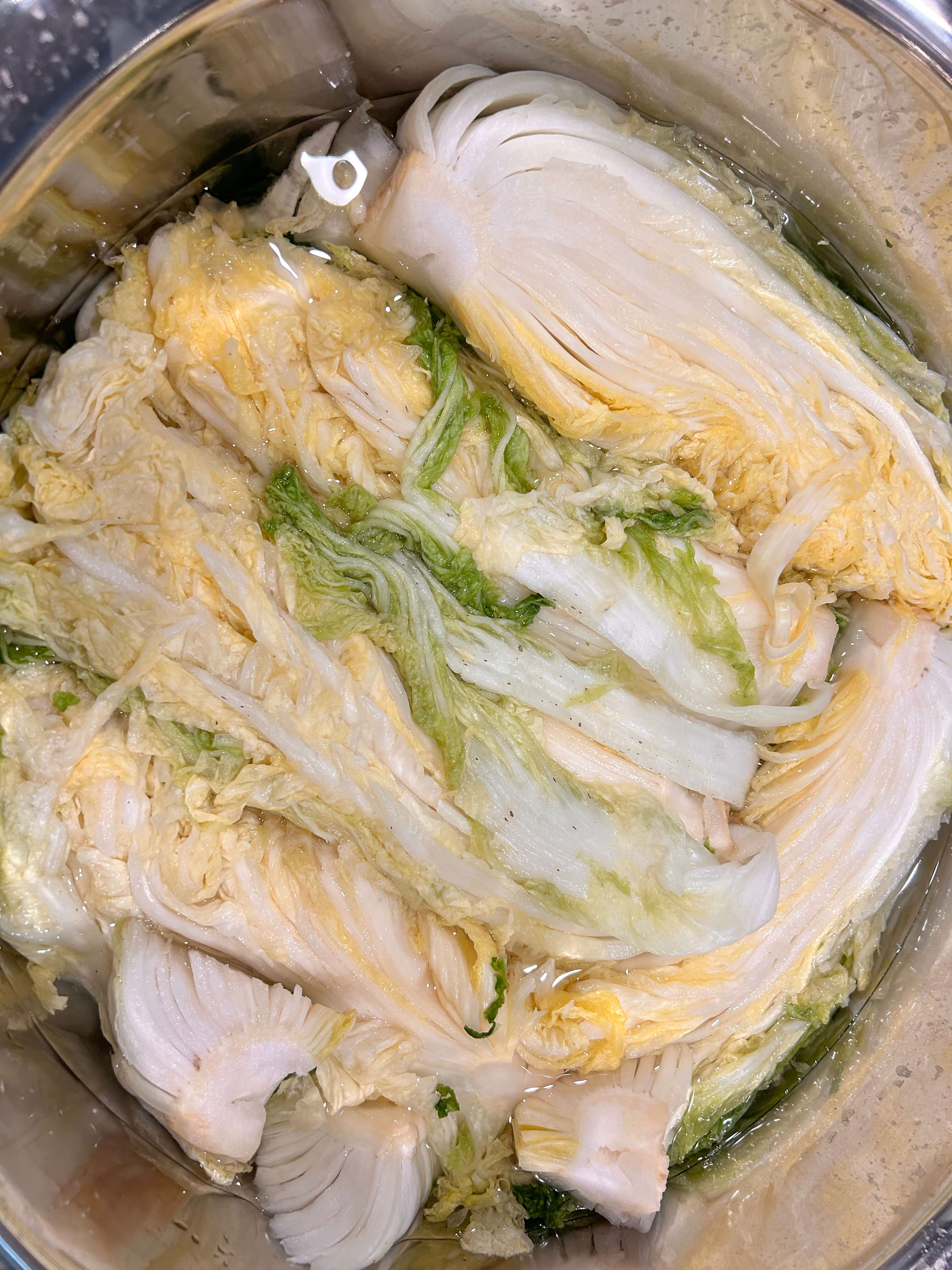 1. 배추는 물에 한번 씻어준 뒤 소금에 절여줍니다. (18~20시간)