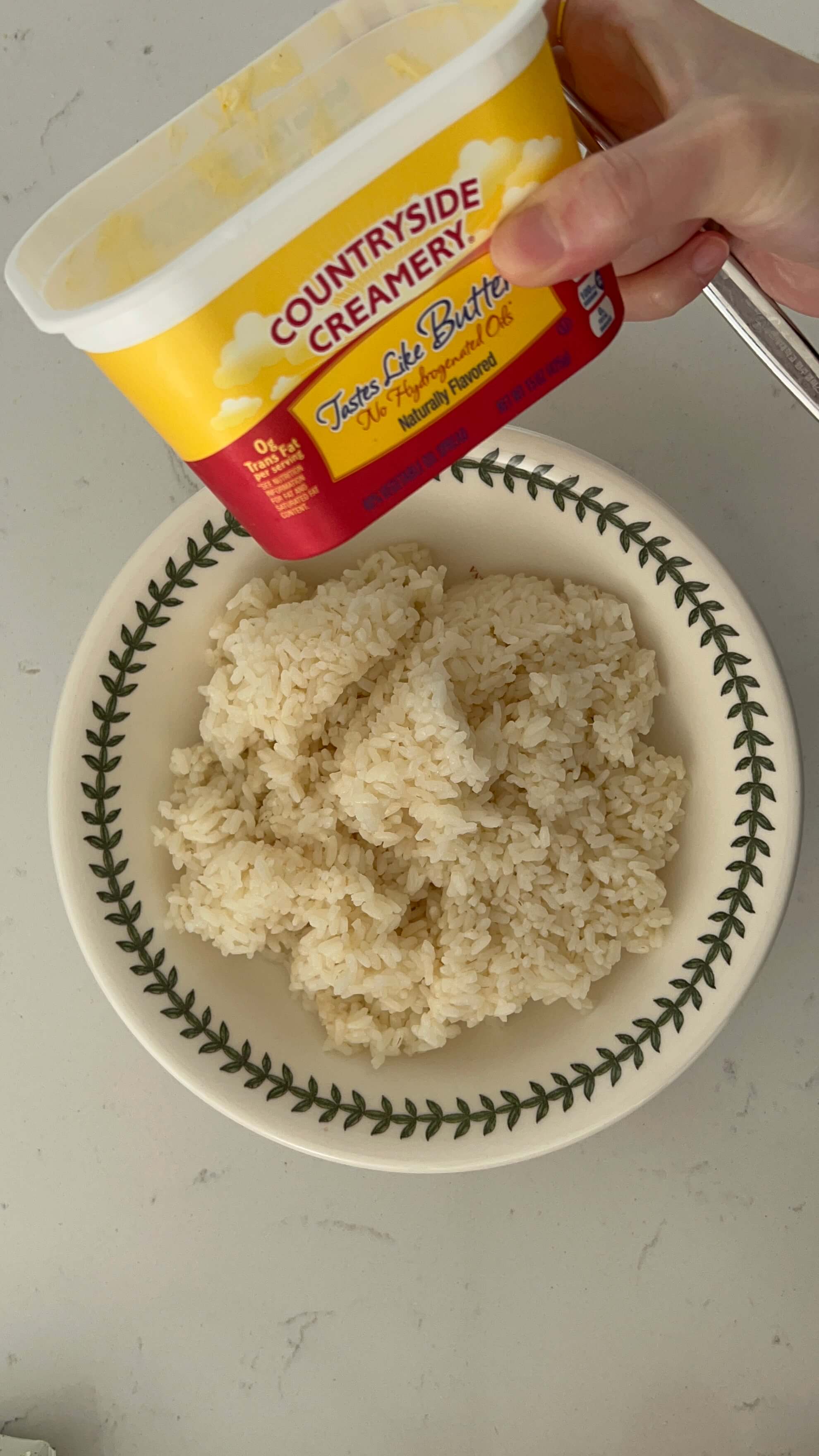 2. 버터를 준비해서 한 숟갈정도 넣고 잘 비벼줍니다.