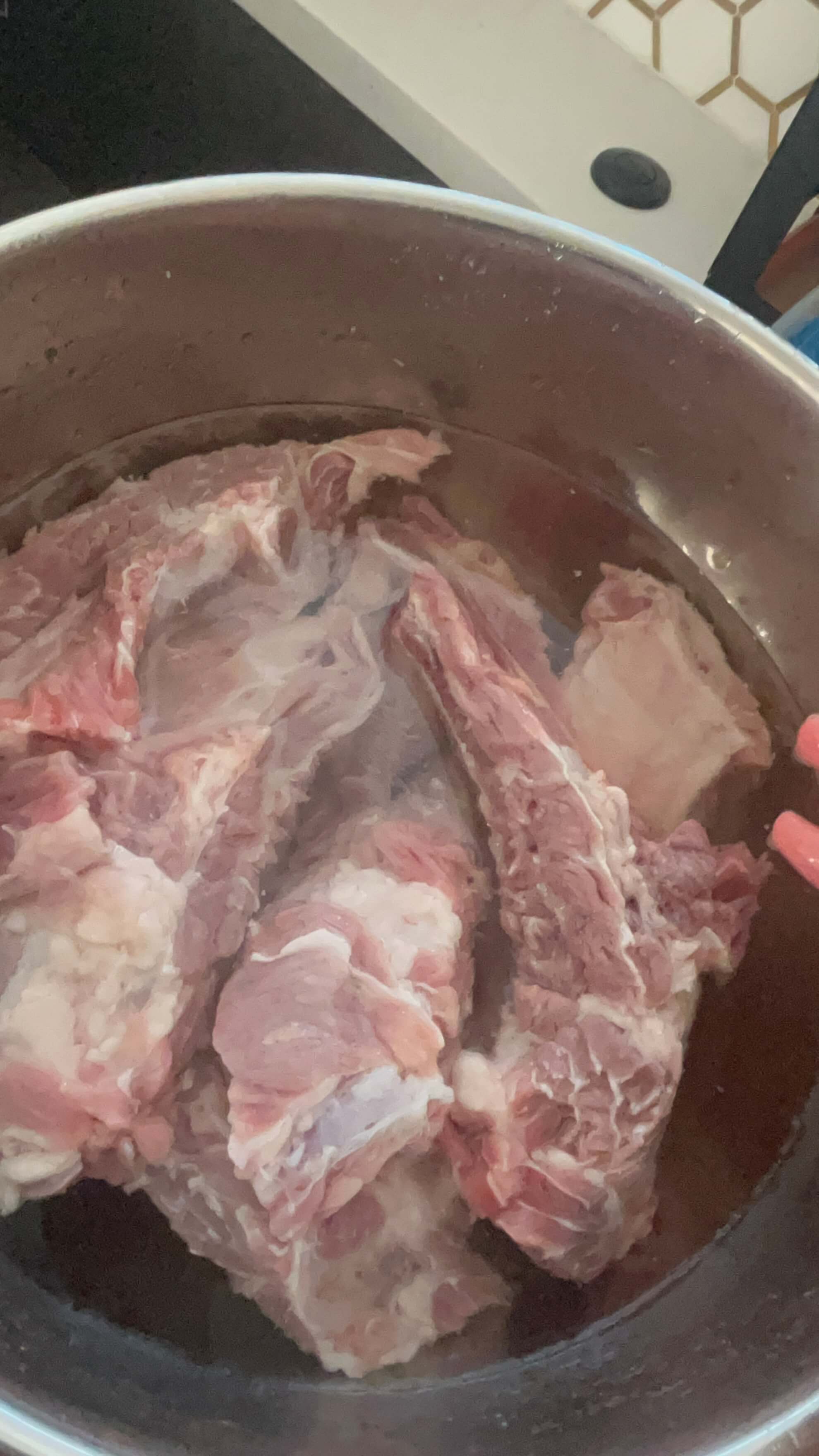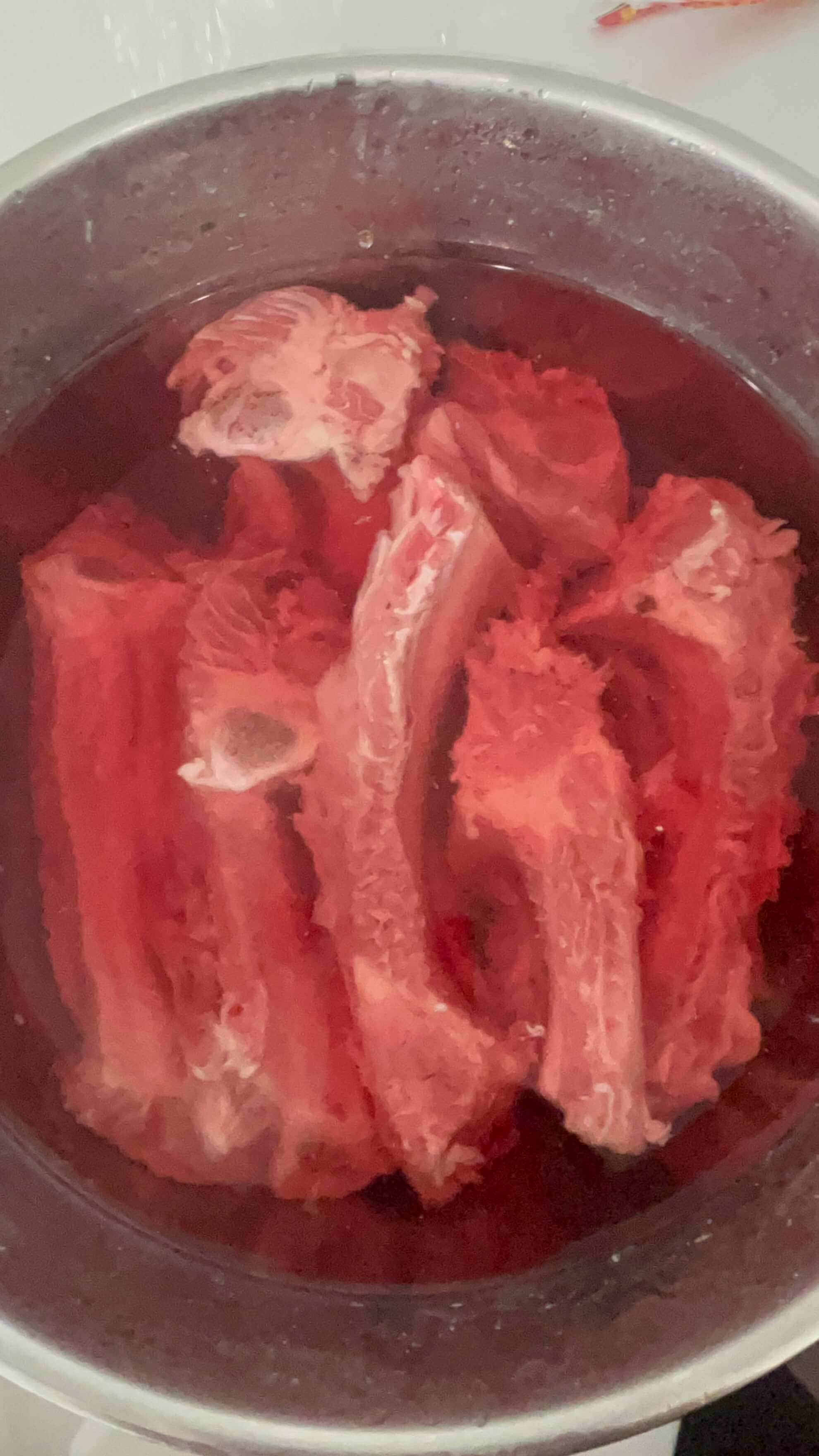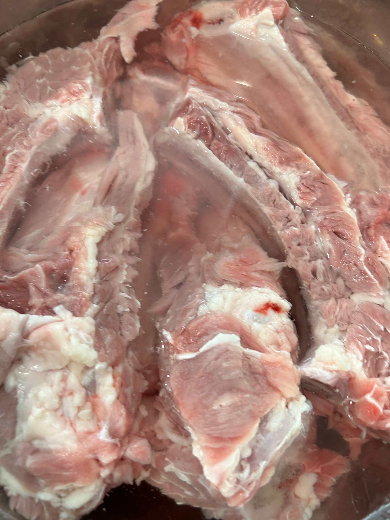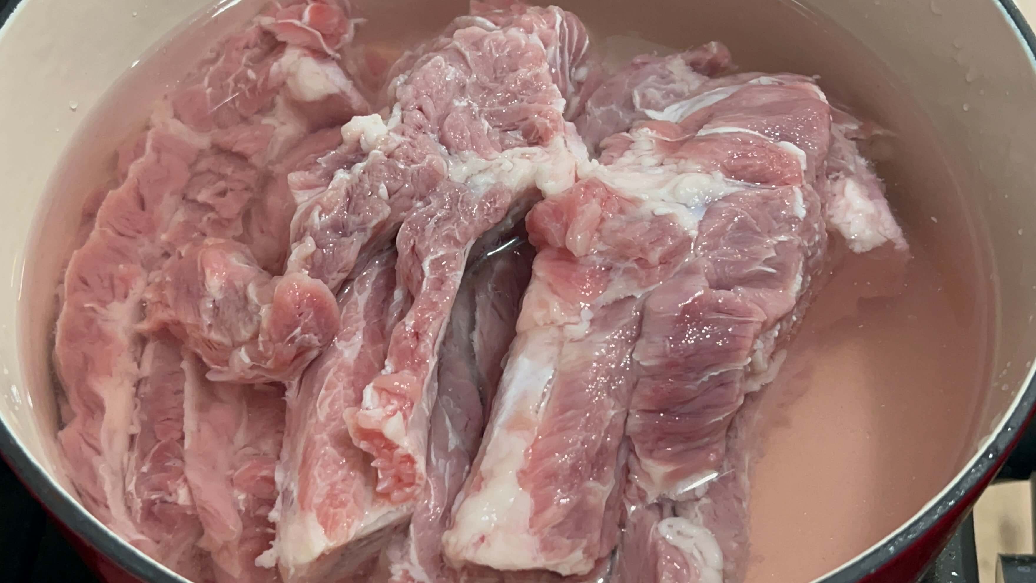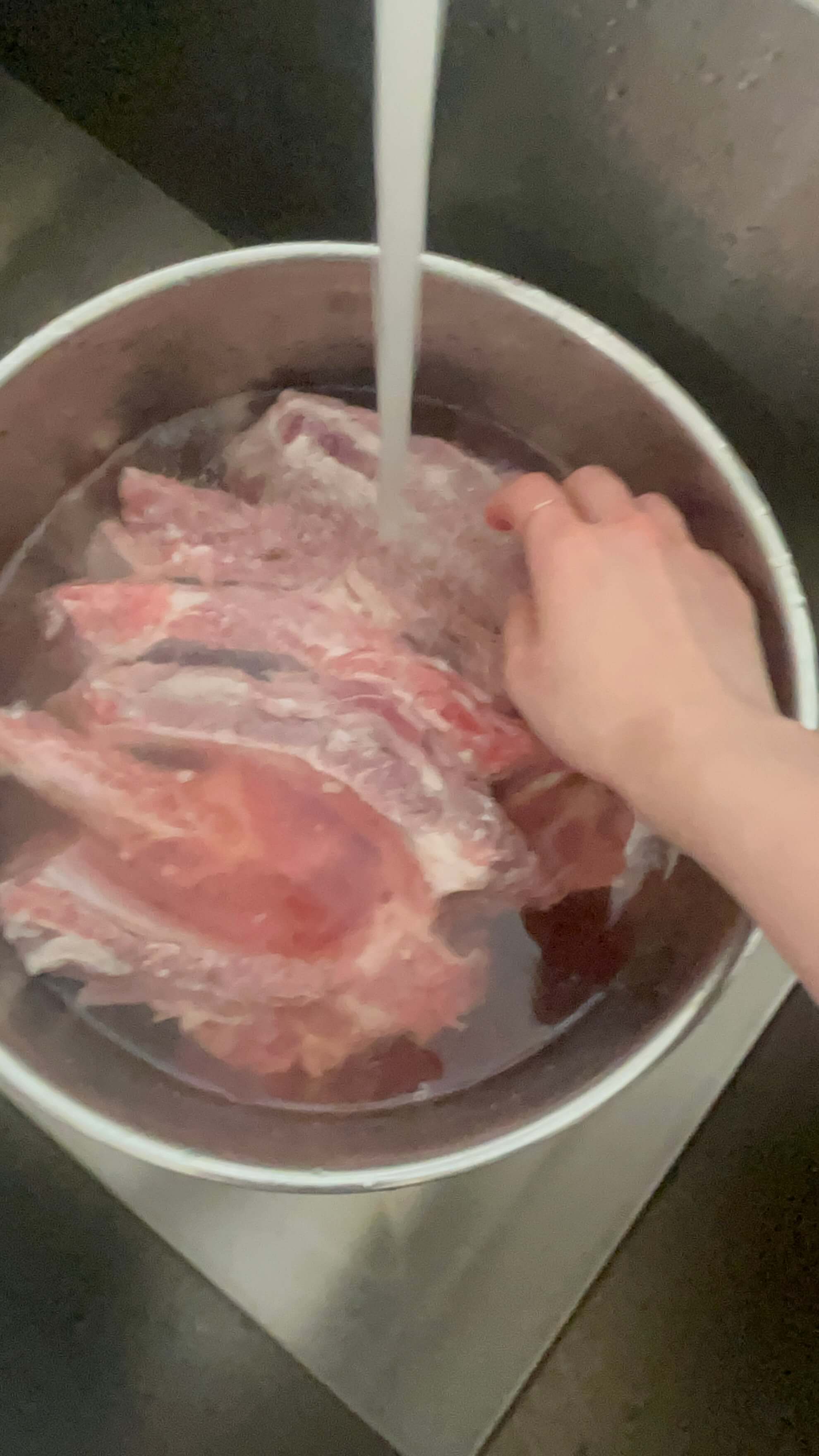 4. 핏물이 제거된 갈빗대는 흐르는 물에 몇 번 씻어줍니다.