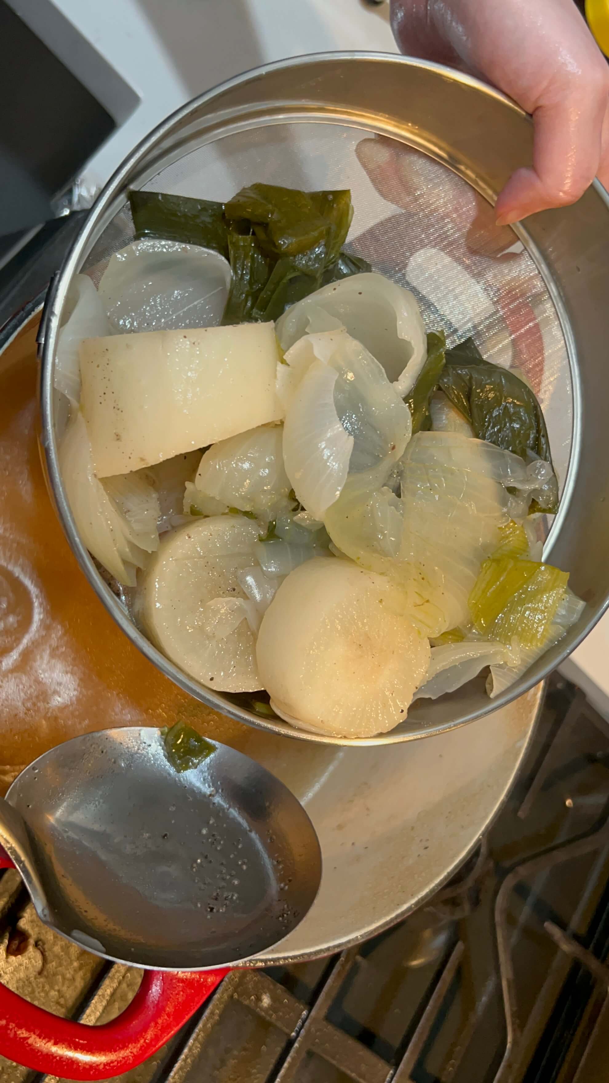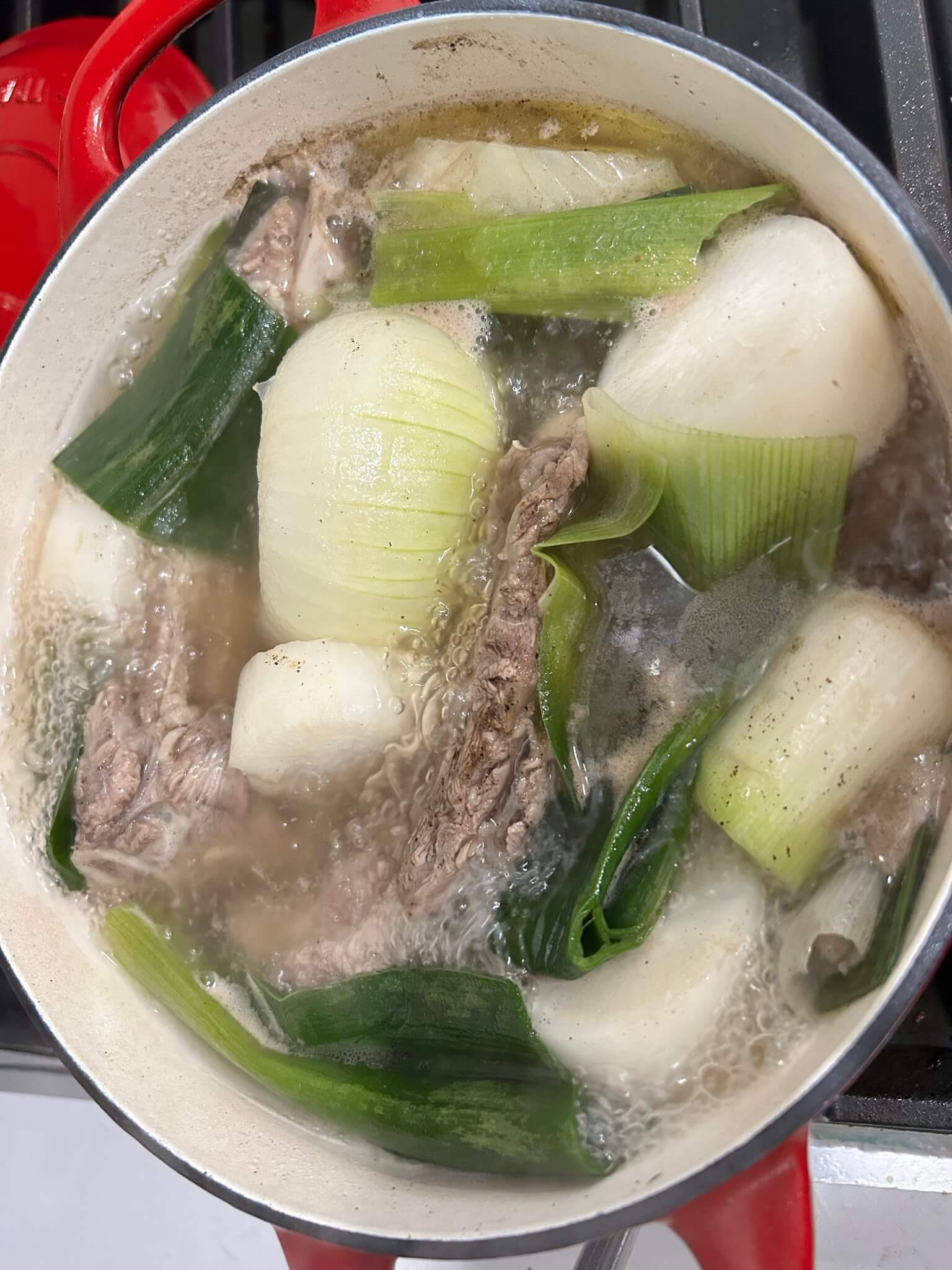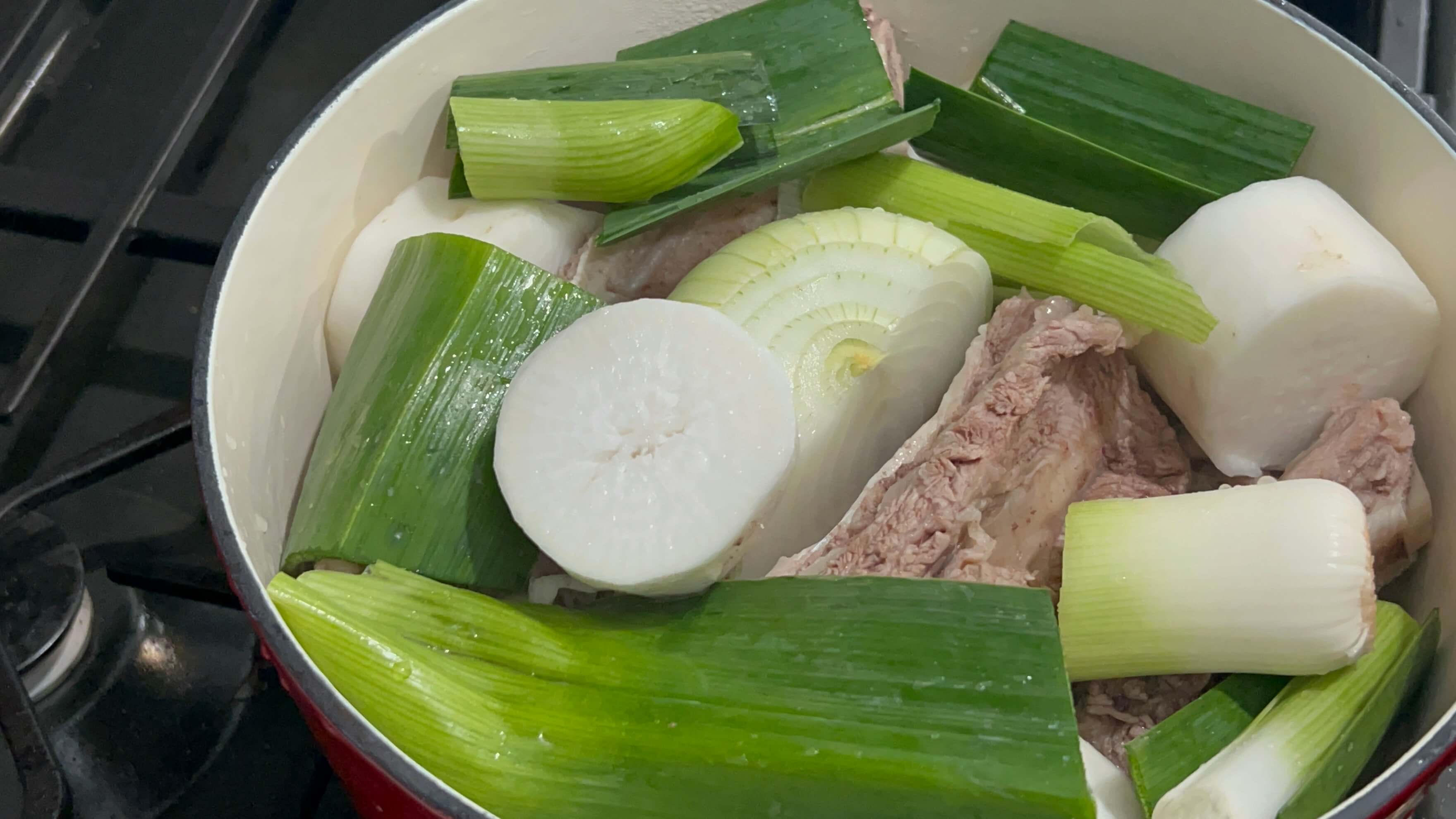 8. 무와 양파를 통으로 넣어줍니다.