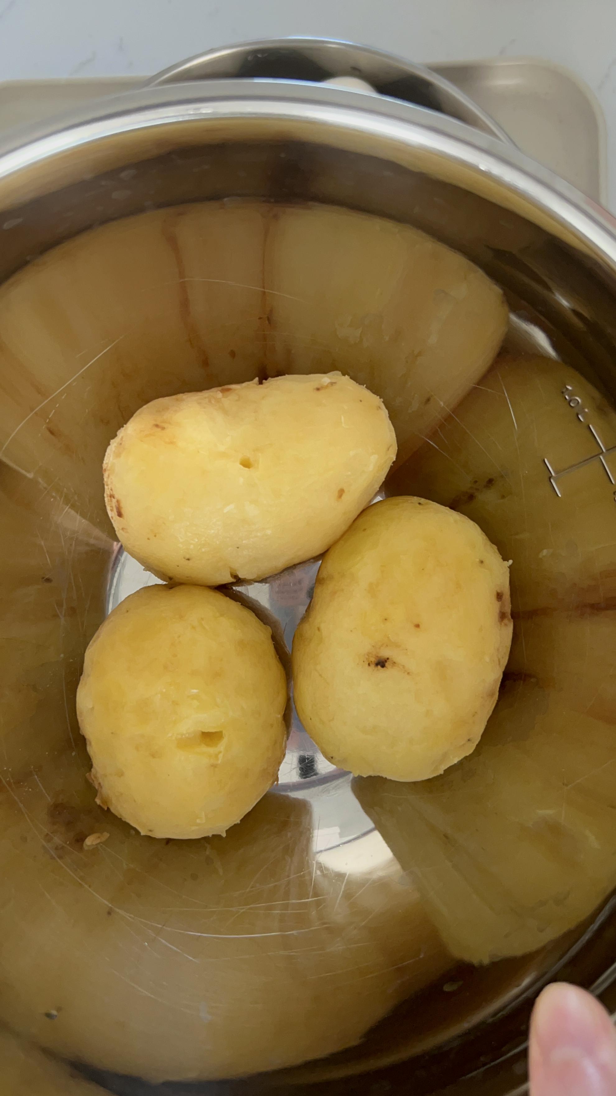 젓가락으로 감자를 찔러서 폭 들어가는 지 확인해서 감자가 잘 익었는지 확인하실 수 있습니다.