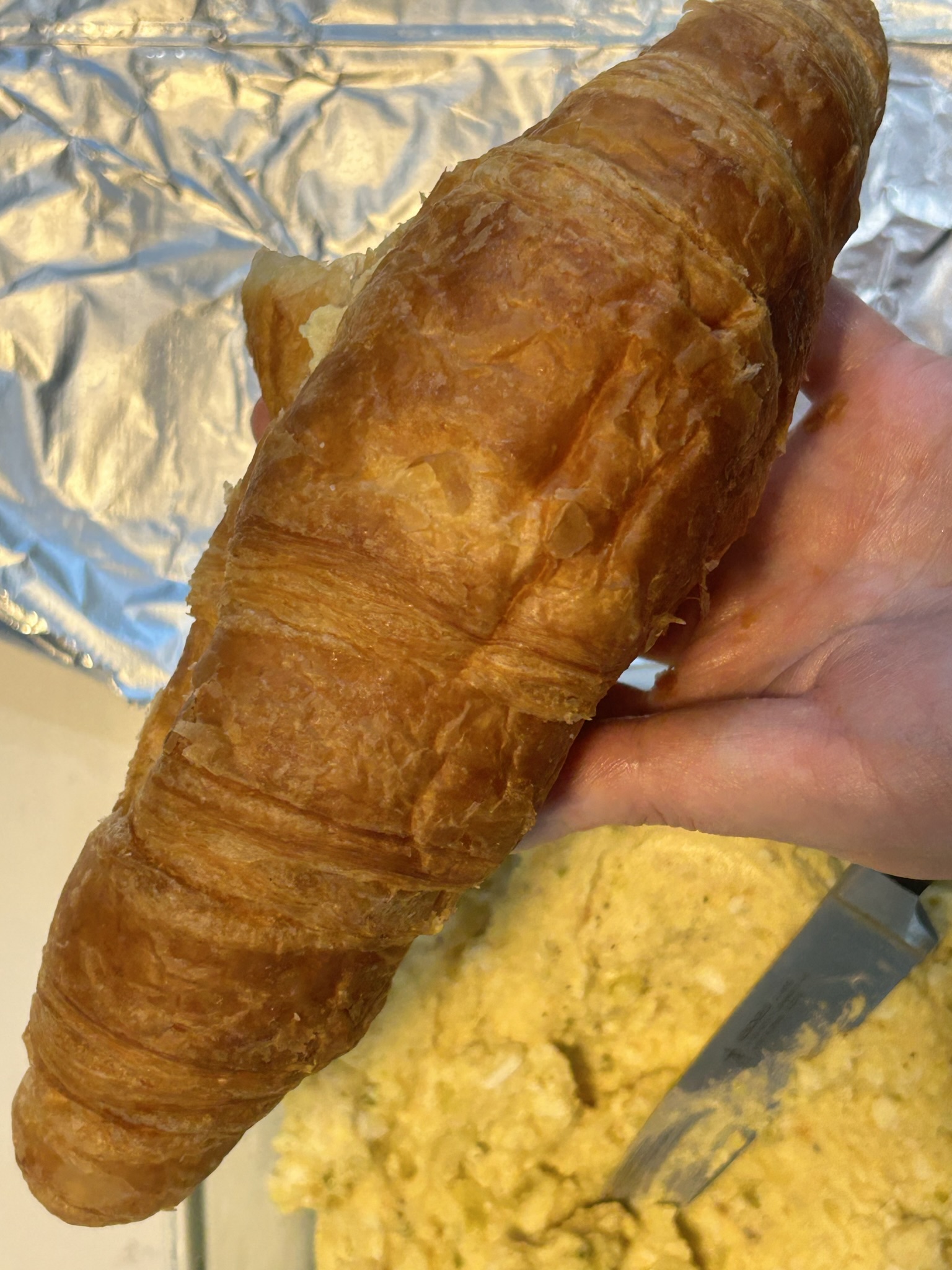 저는 핫도그빵과 크로와상을 감자샐러드에 곁들여 먹었습니다.