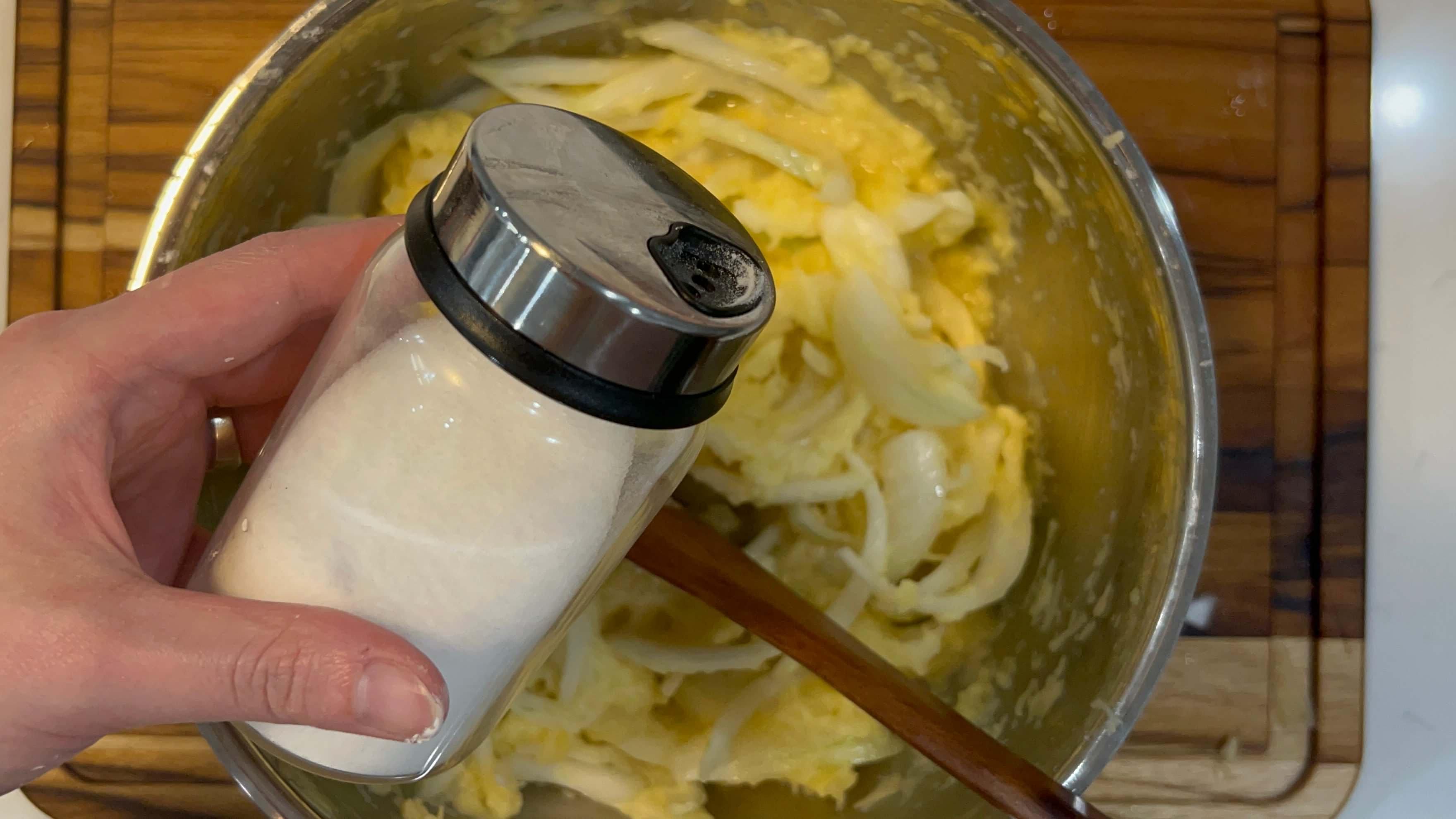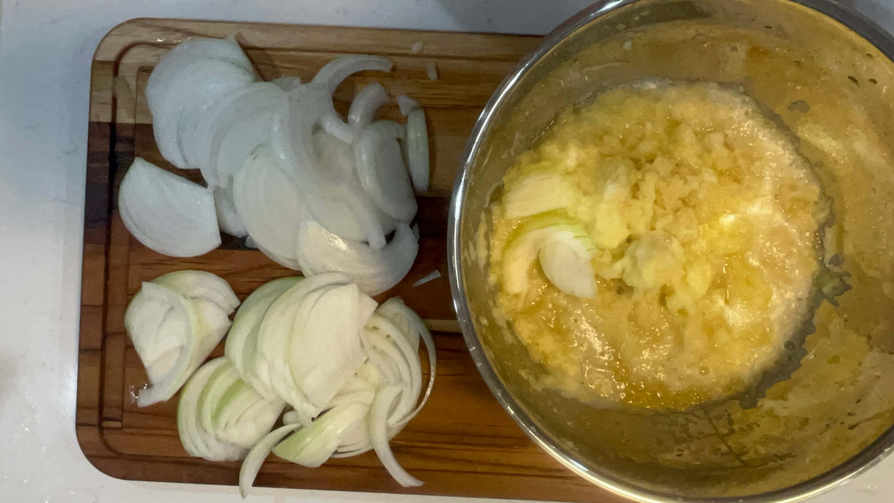 3. 감자를 다 간 뒤에 양파를 갈아주면 좋지만 너무 힘드니깐 양파는 잘 썰어줍니다.