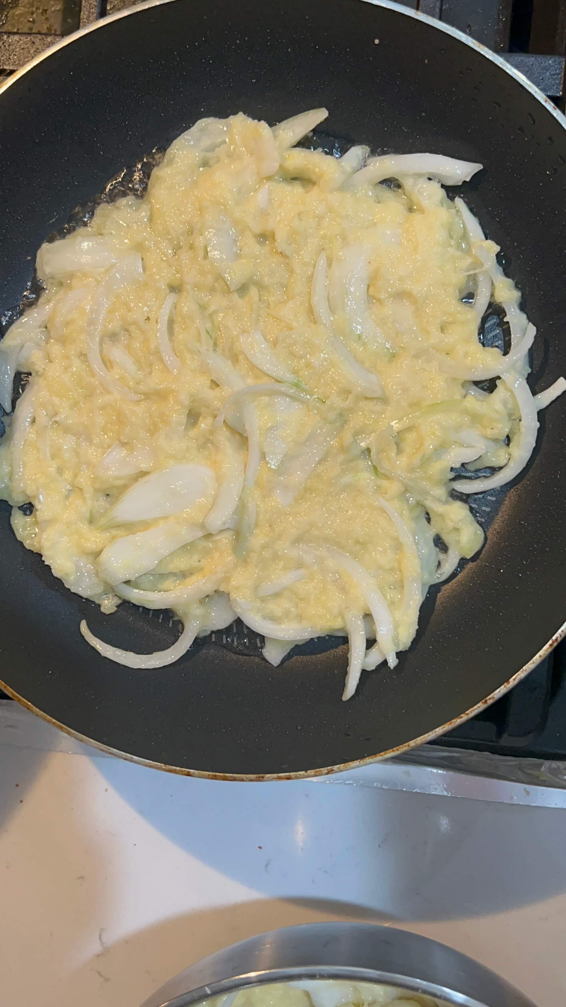 3. 감자를 다 간 뒤에 양파를 갈아주면 좋지만 너무 힘드니깐 양파는 먹기 좋게 썰어줍니다.