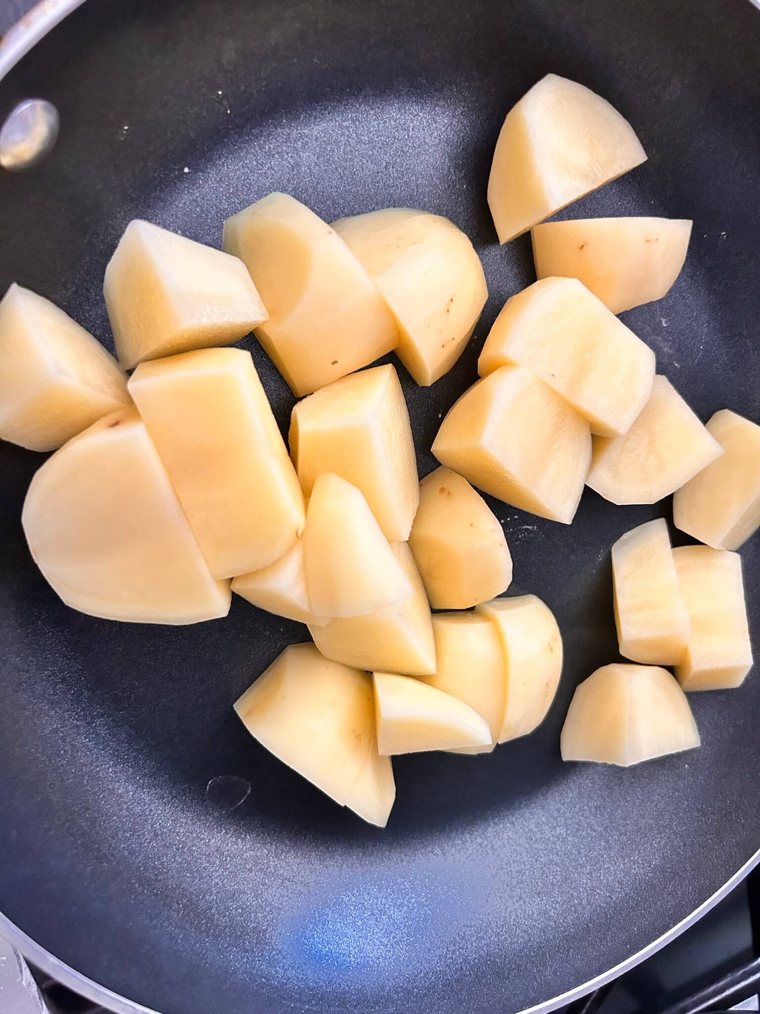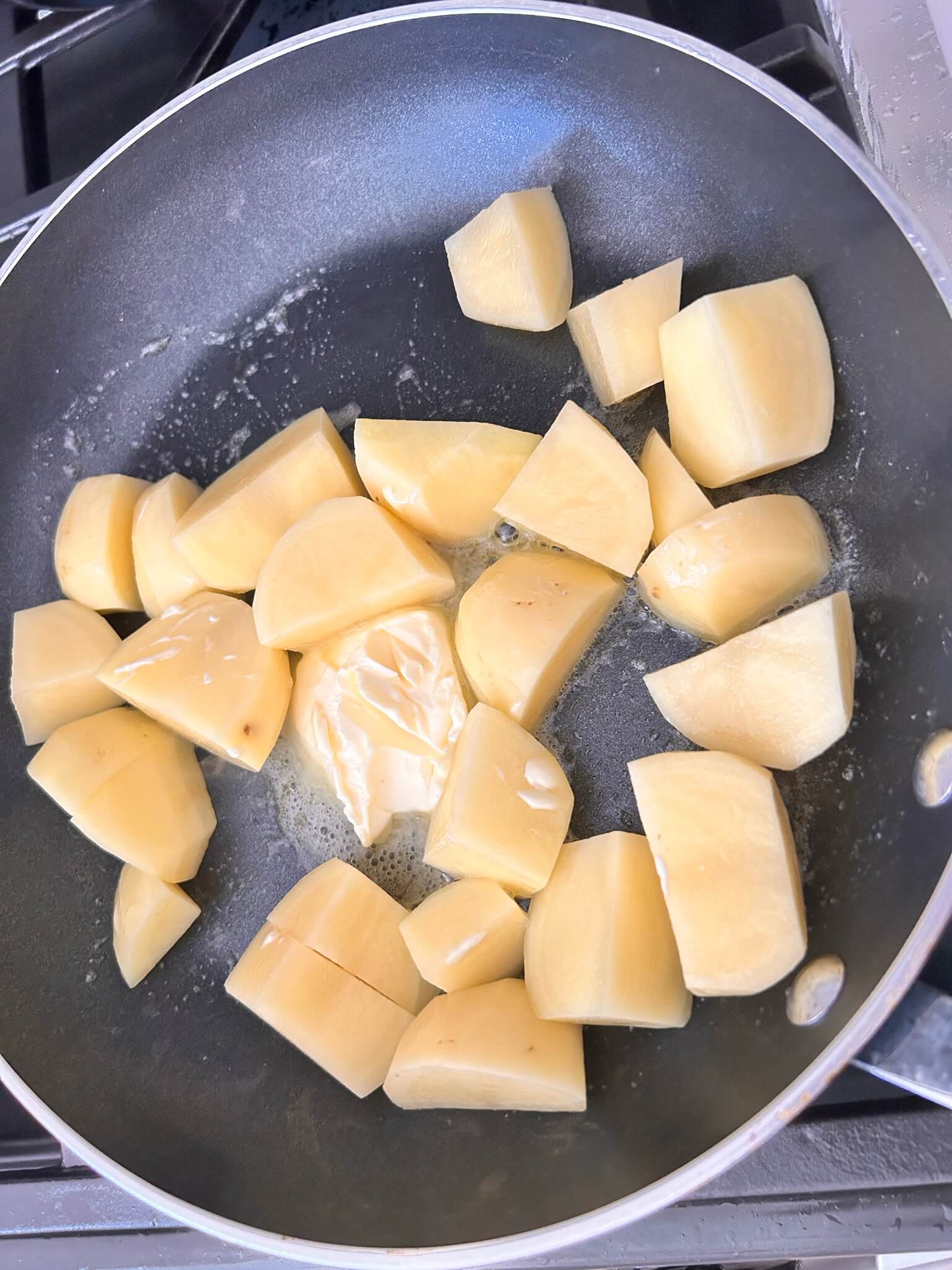 2. 프라이팬에 버터를 두르고 감자를 넣어 익혀줍니다.