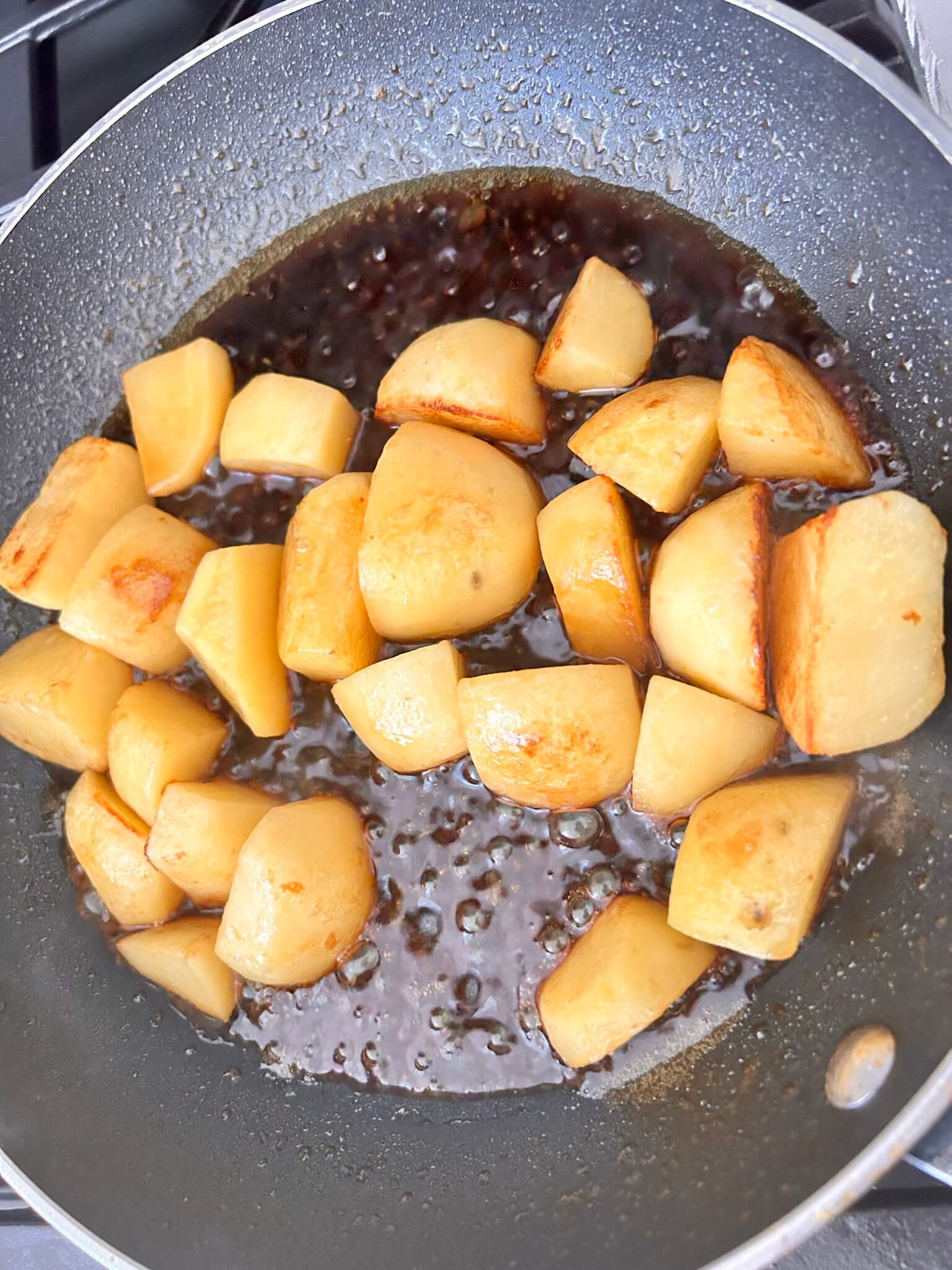 6. 소스가 타지 않게 감자와 잘 버무려줍니다.
