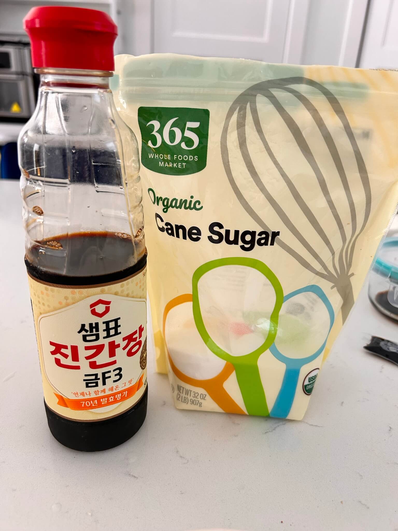 4. 간장과 설탕, 물로 양념을 만들어 줍니다.