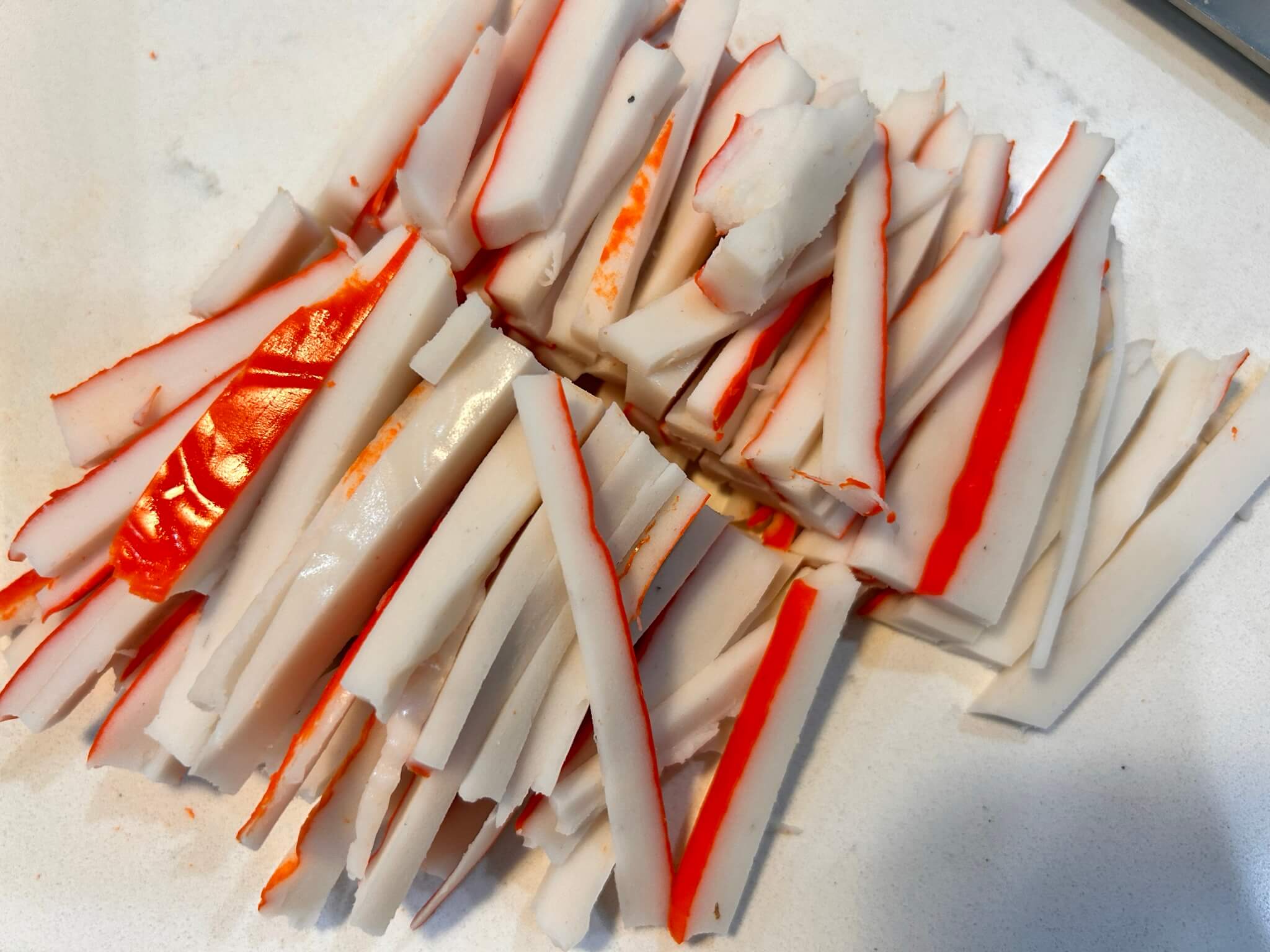 2. 맛살은 이렇게 잘라서 준비해줍니다.