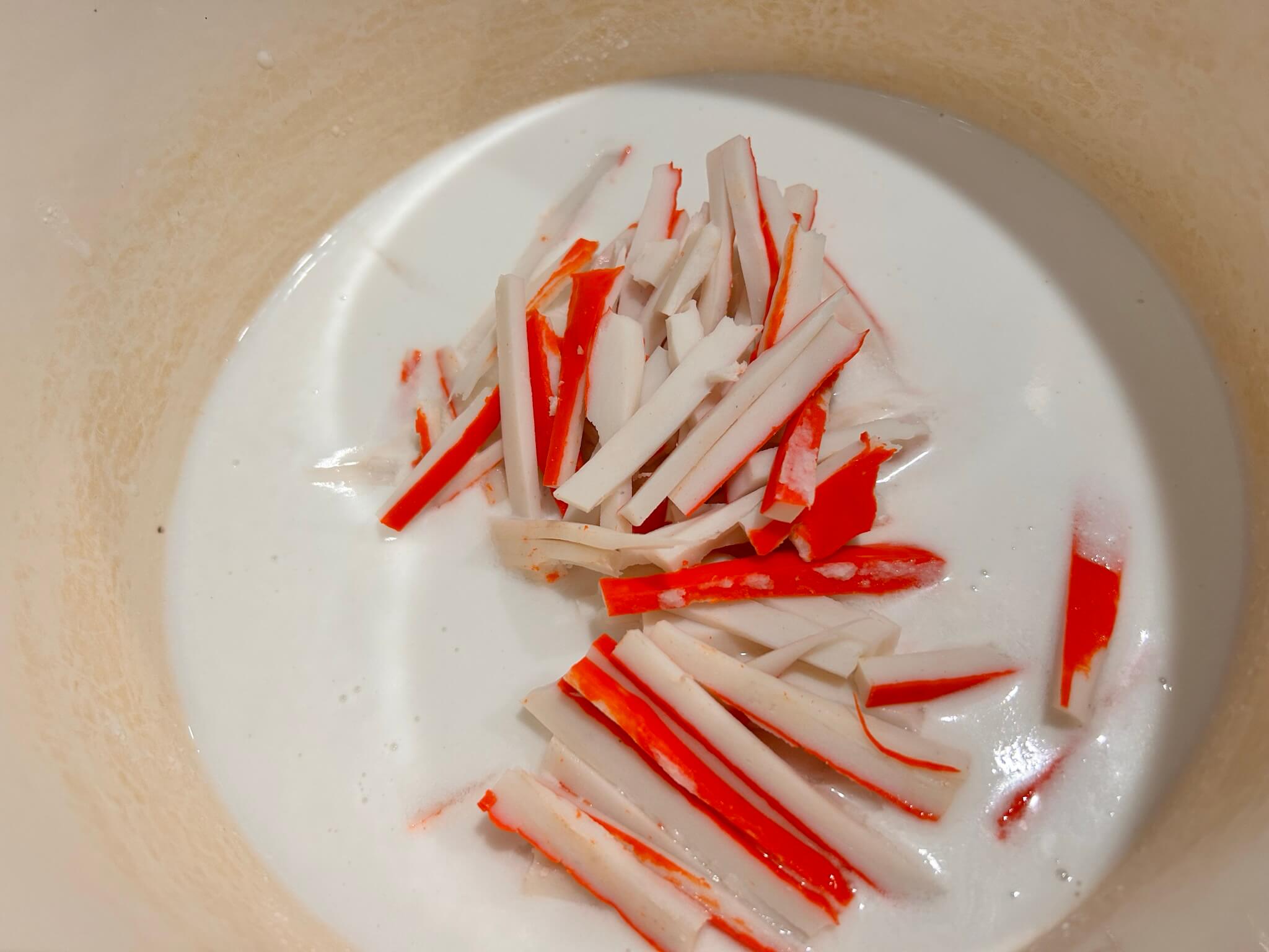 3. 냄비에 맛살을 넣어줍니다.