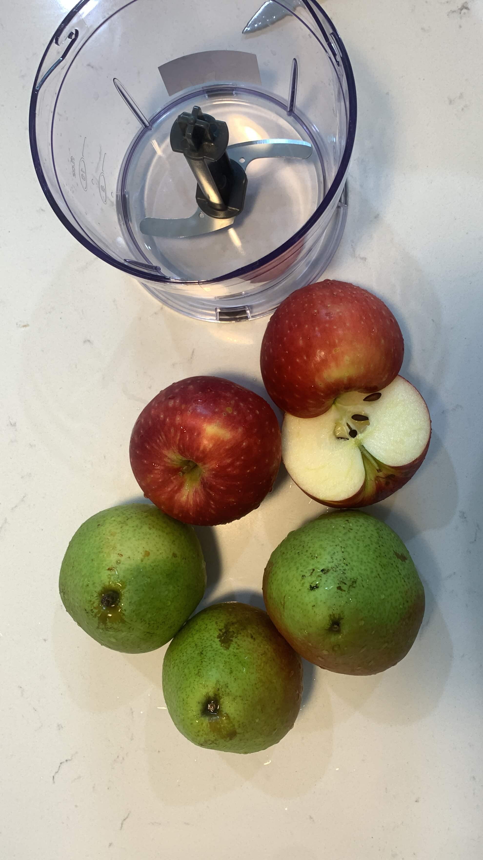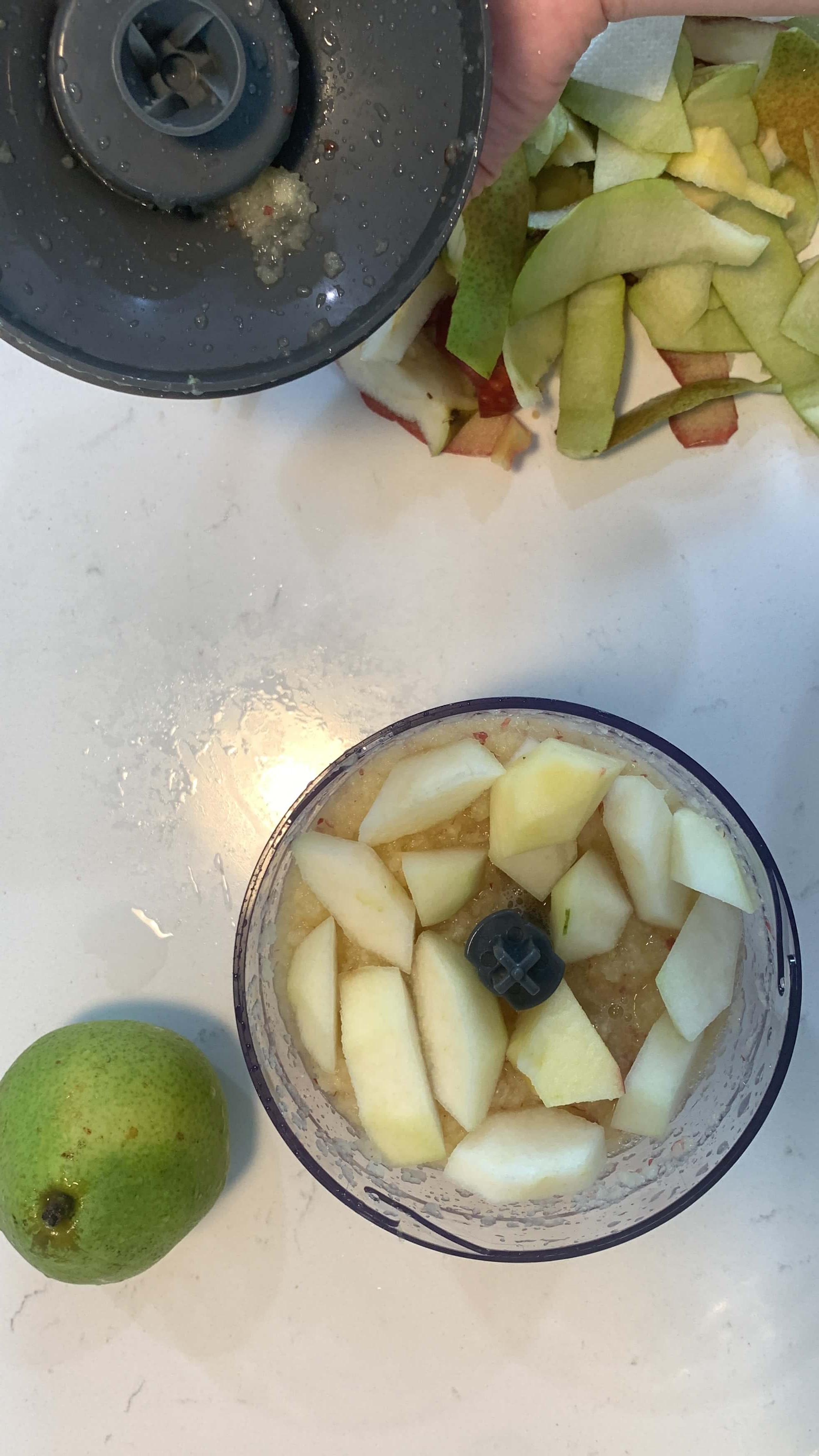 4. 여기에 갈은 사과와 배를 넣어줍니다.