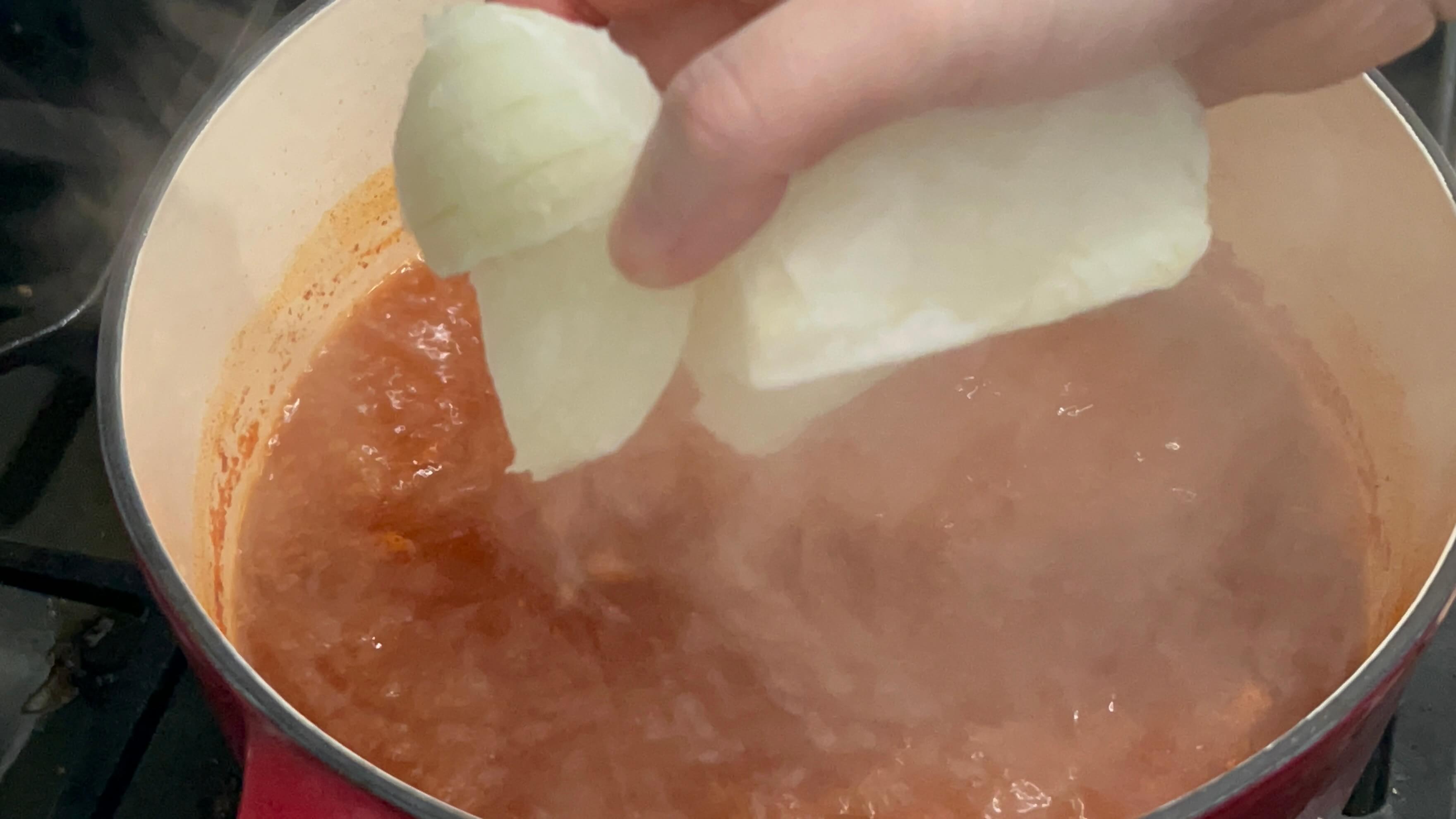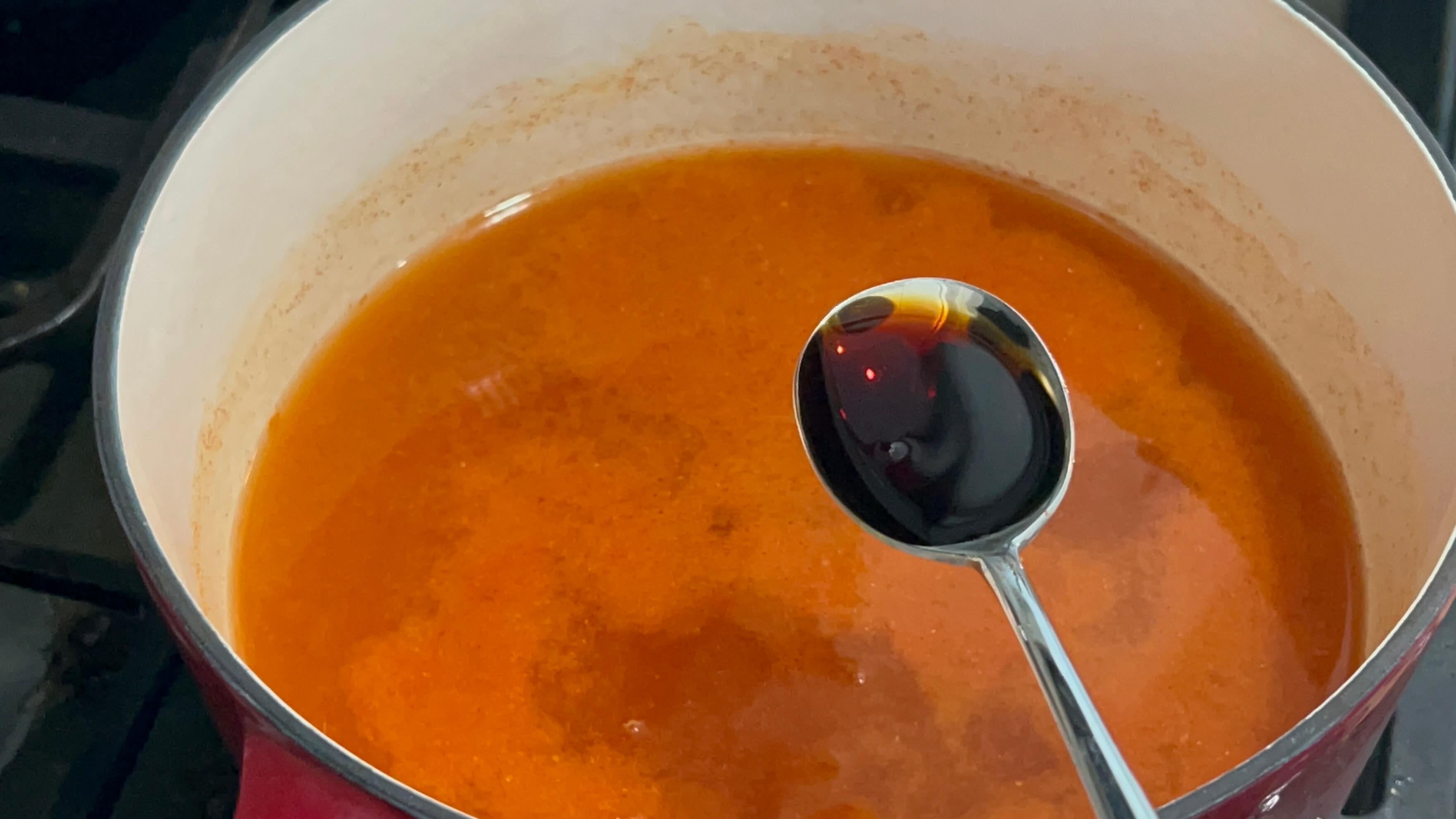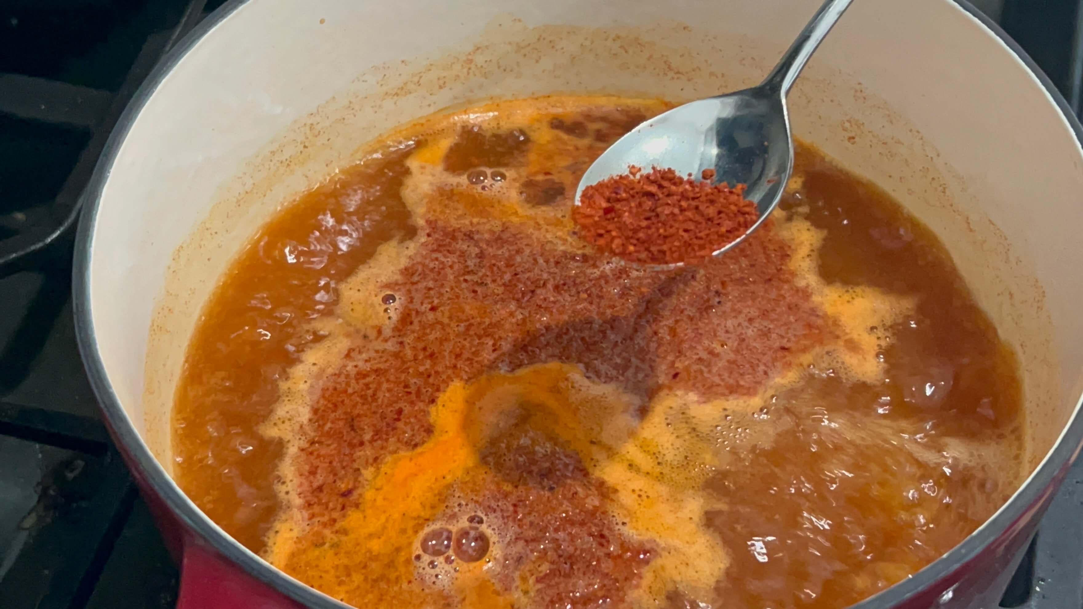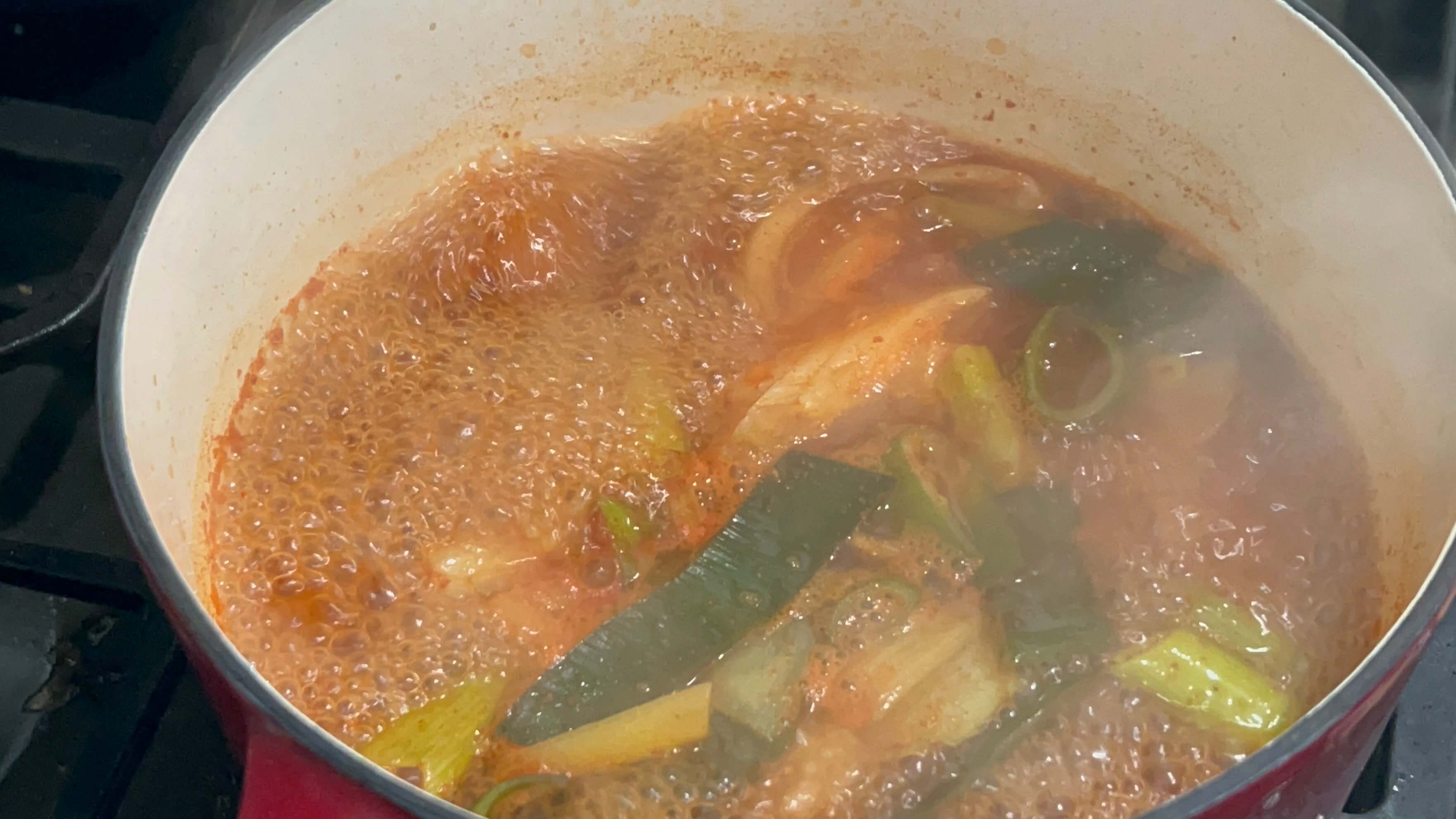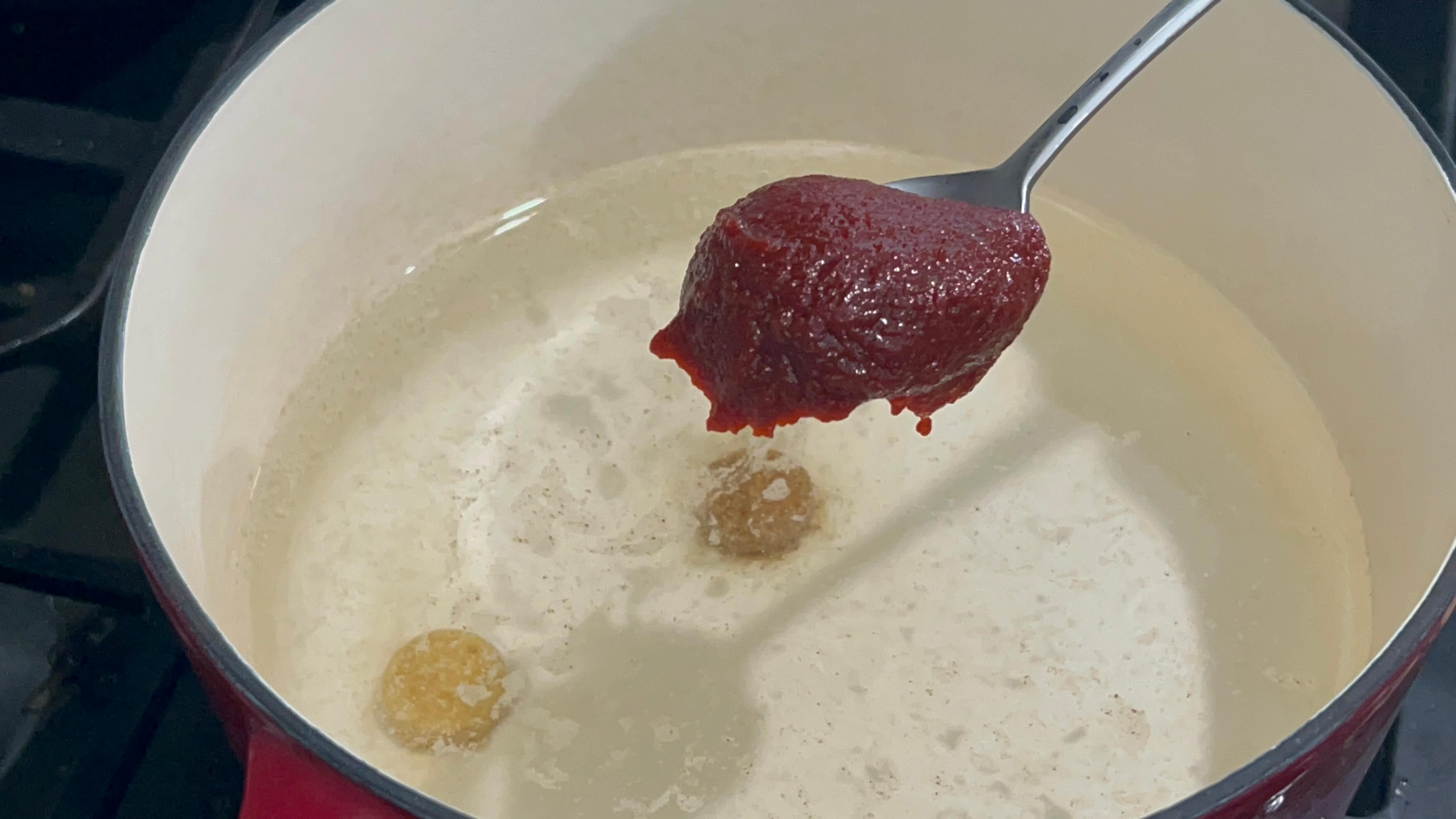 7. 고추장 한 숟갈을 넣어 풀어줍니다.