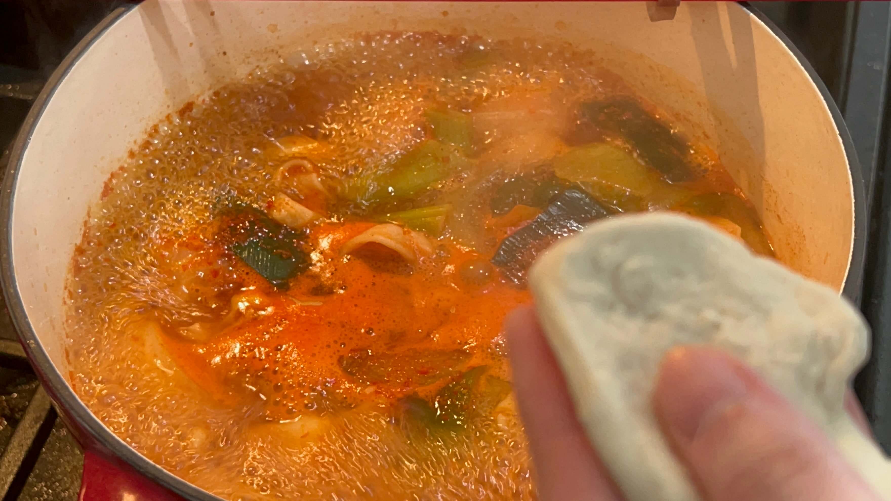 6. 육수 한 알을 넣어줍니다.