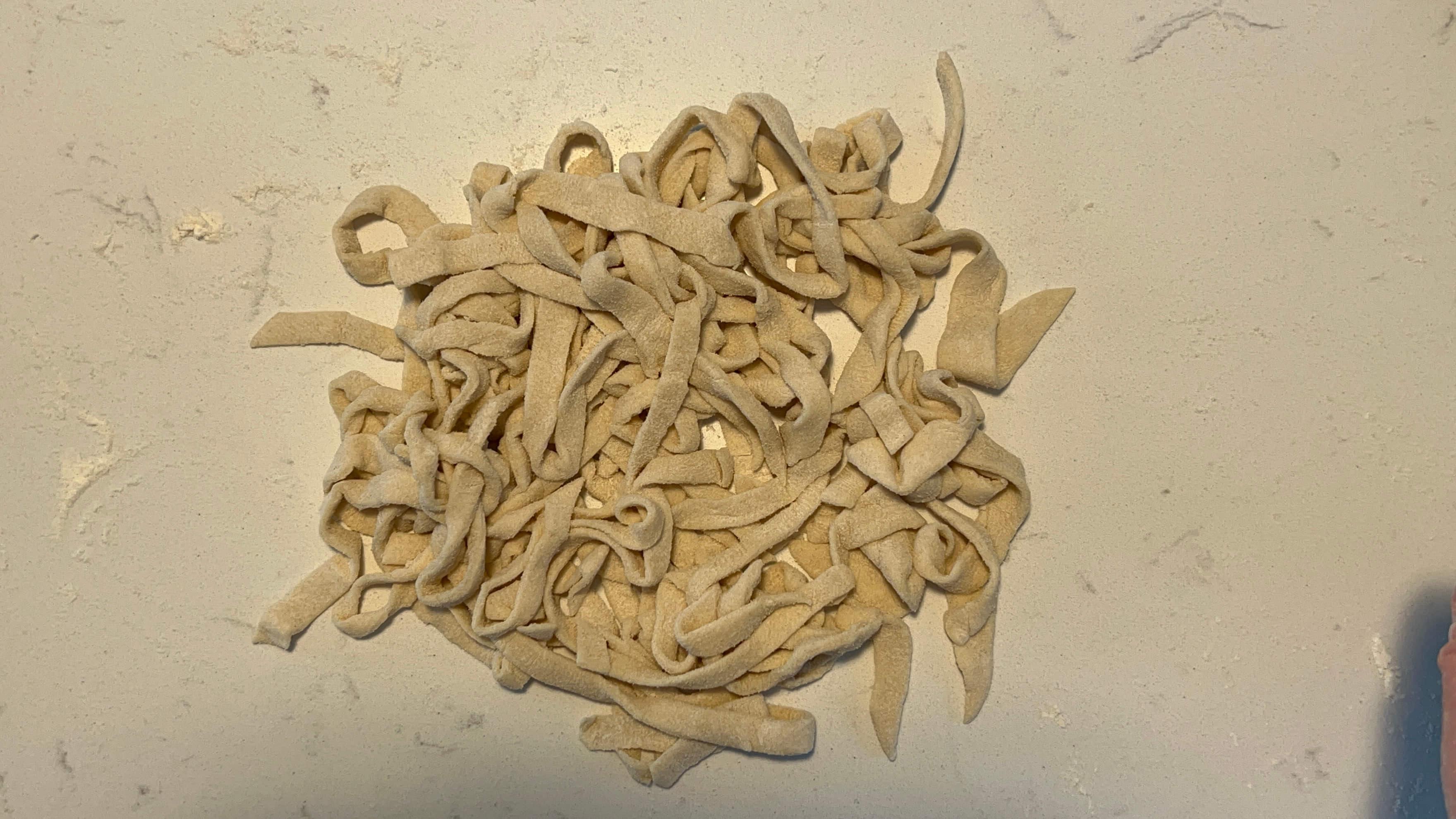 밀고 접어서 칼로 잘라주면 이렇게 칼국수면이 완성됩니다. 수제면~!!