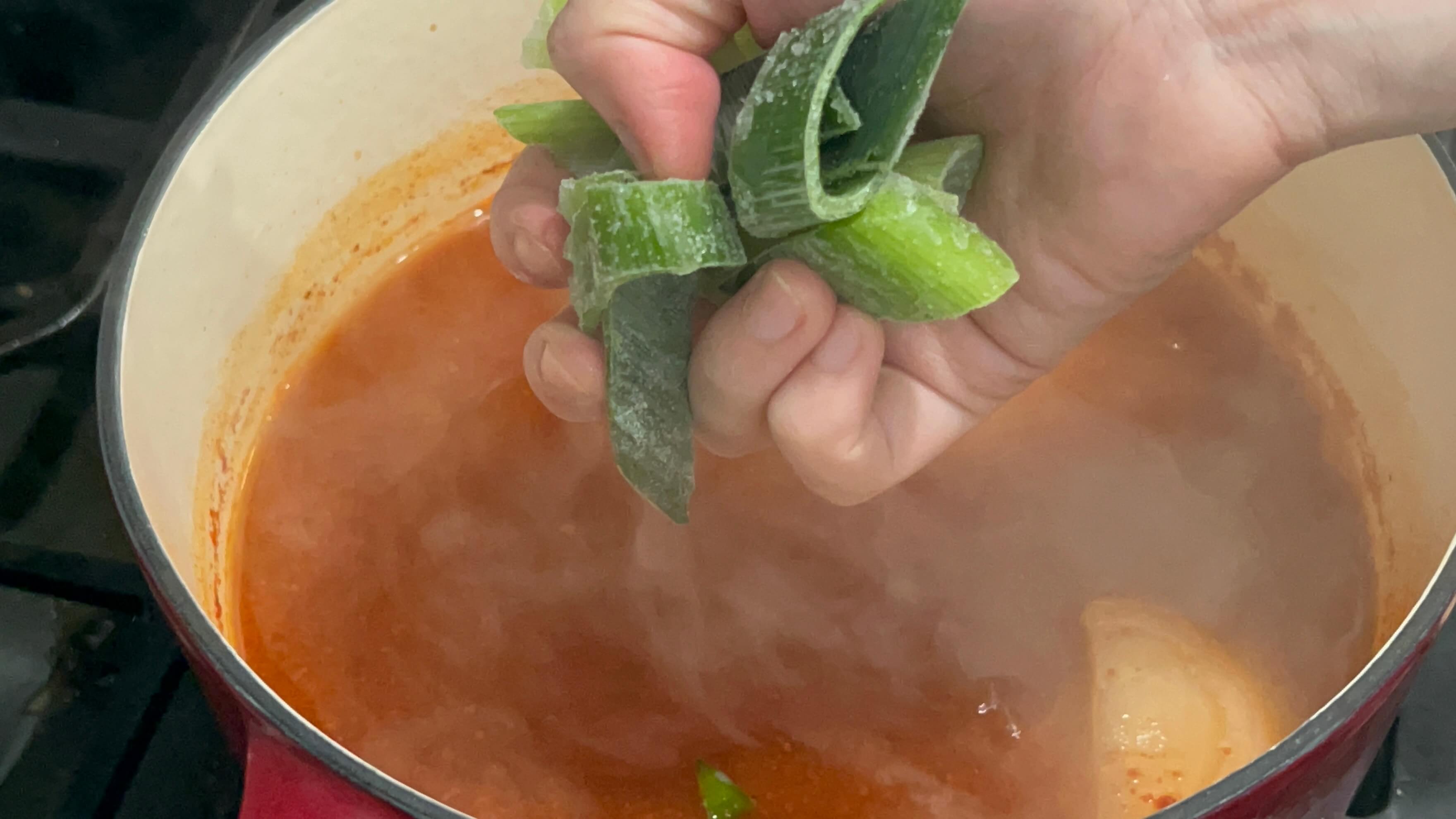 9. 양파, 대파, 다진 마늘을 넣고 끓여줍니다.