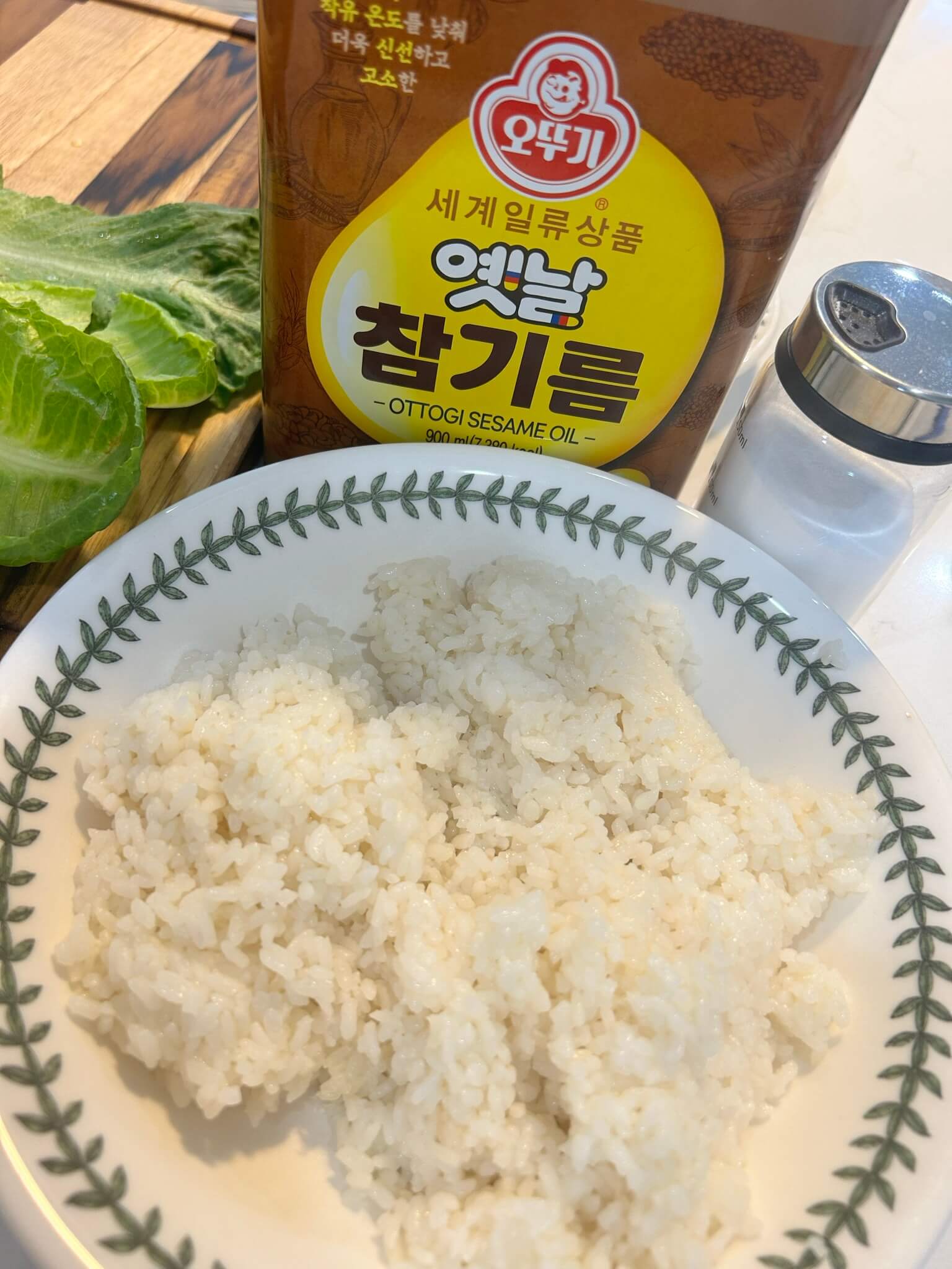 1. 밥양념을 위해 참기름과 소금을 준비합니다.