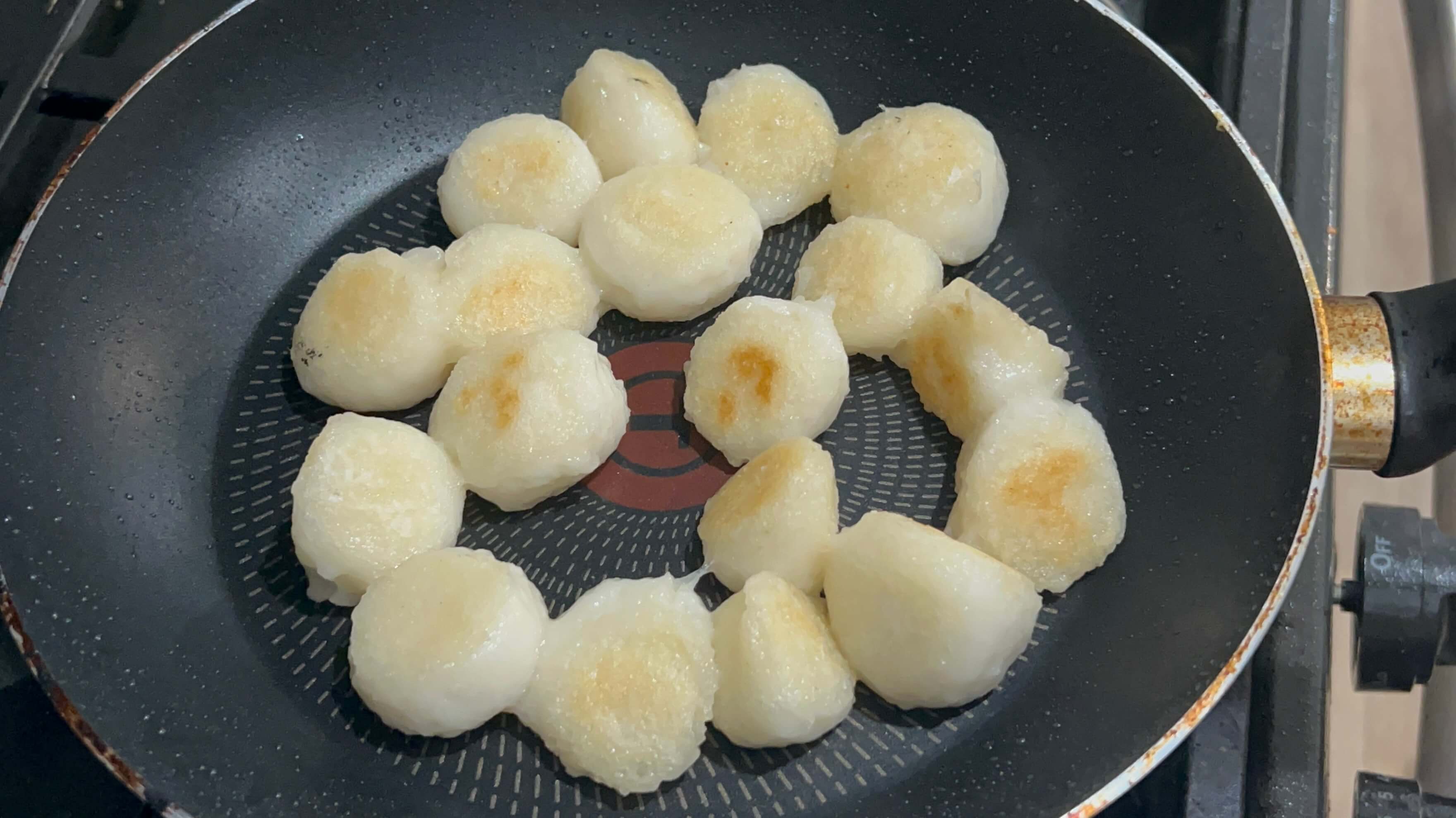 8. 노릇노릇 구워진 당고들에 소스를 부어주면 완성입니다.