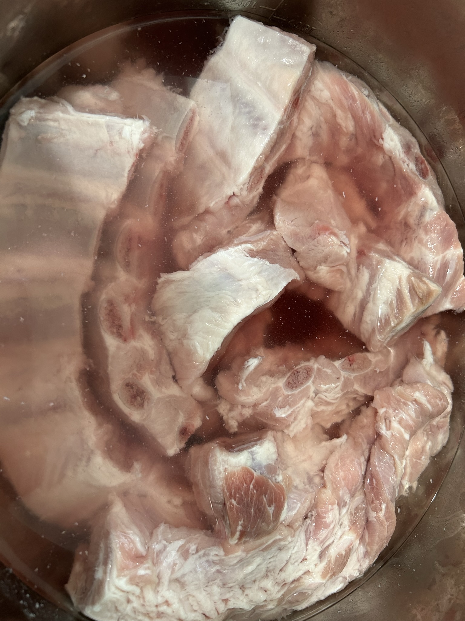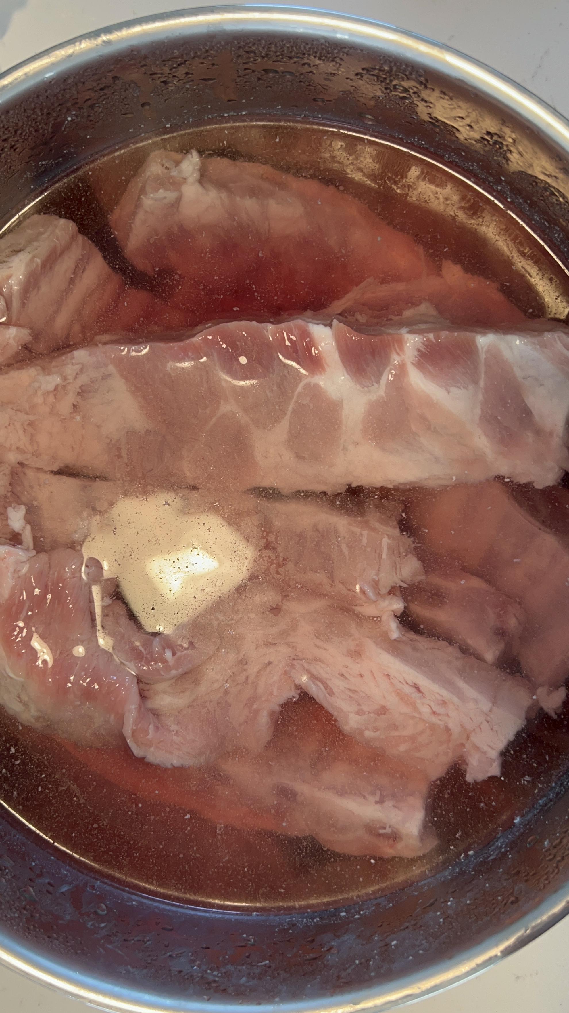5. 등갈비를 큰 냄비에 담아 한번 끓여줍니다. 한 10~15분 정도 바르르 끓여줍니다.