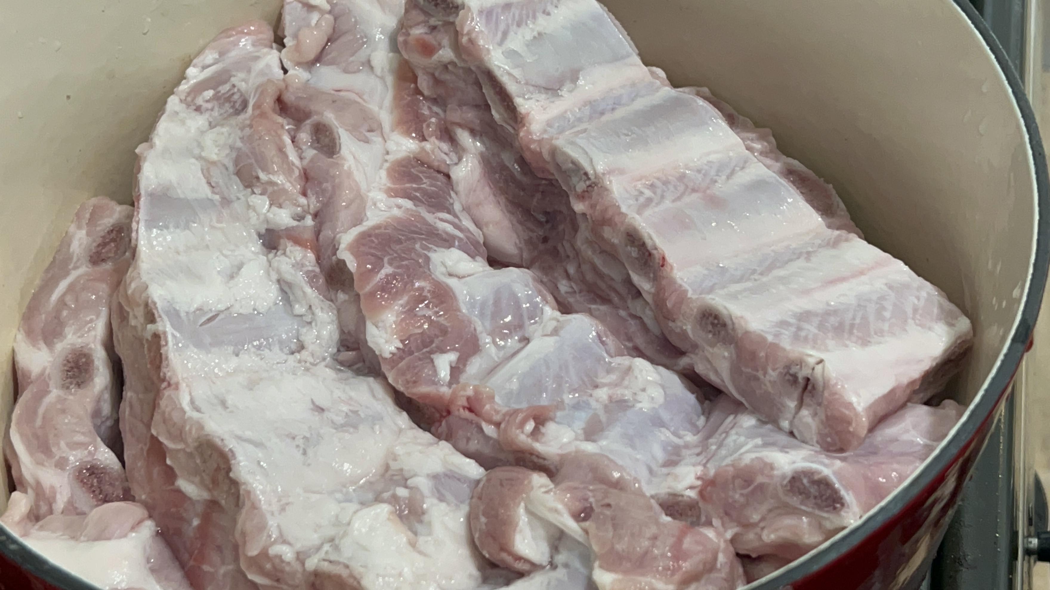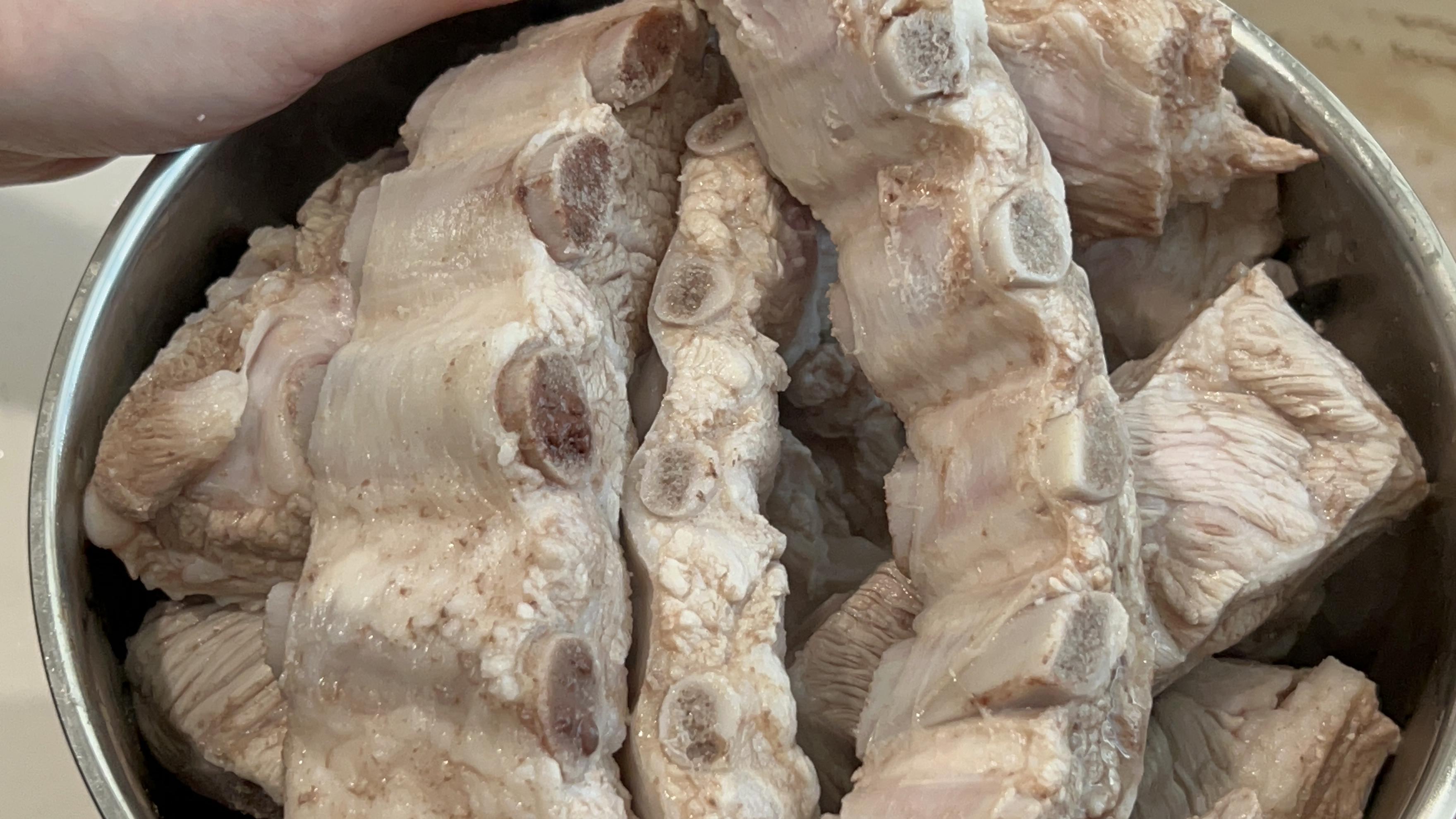 8. 삶은 뒤 한번 더 헹궈주면 이제 등갈비준비 완료입니다.