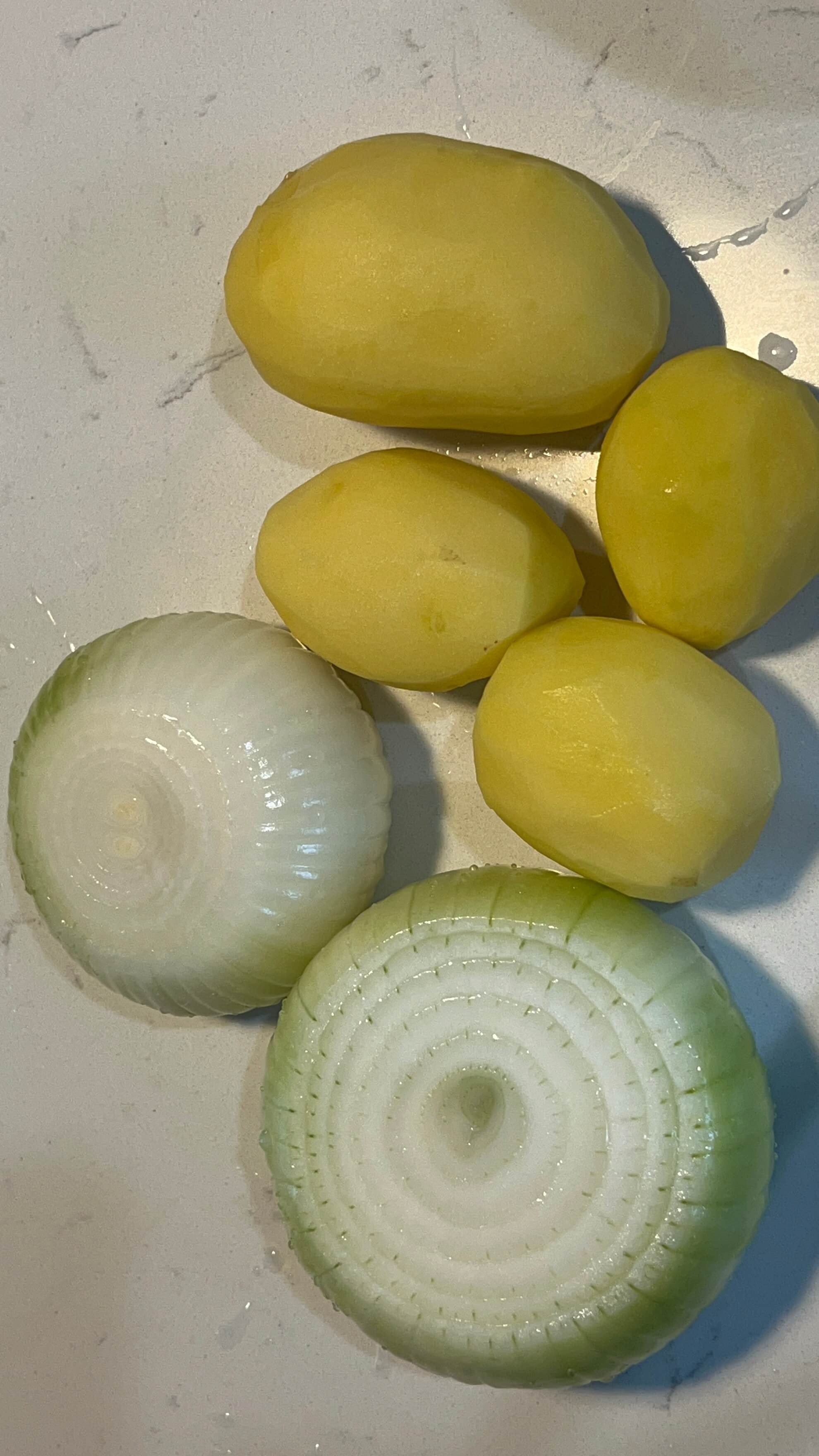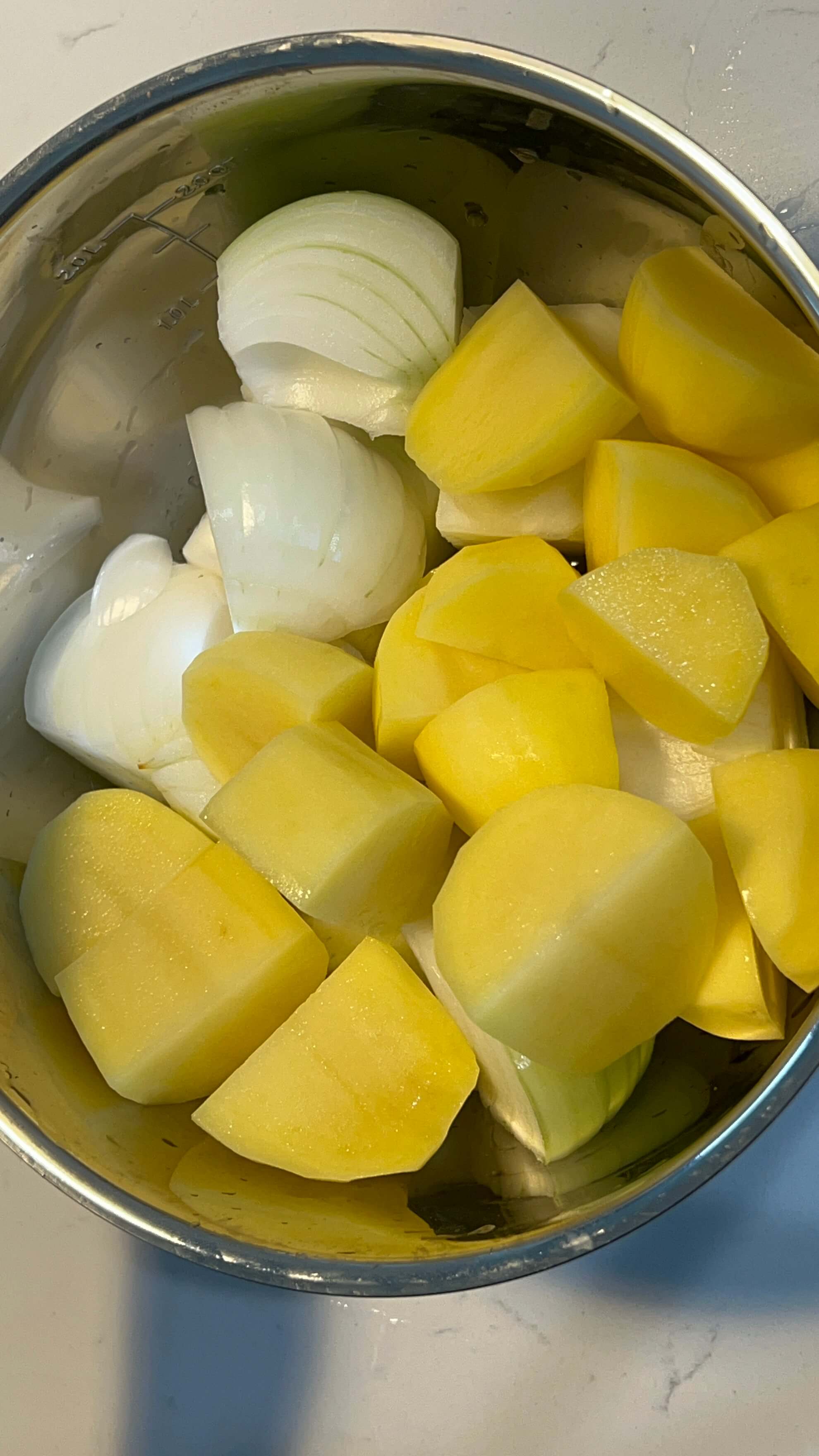 19. 등갈비찜에 들어갈 야채로 감자와 양파를 깍둑썰기로 준비해 줍니다.