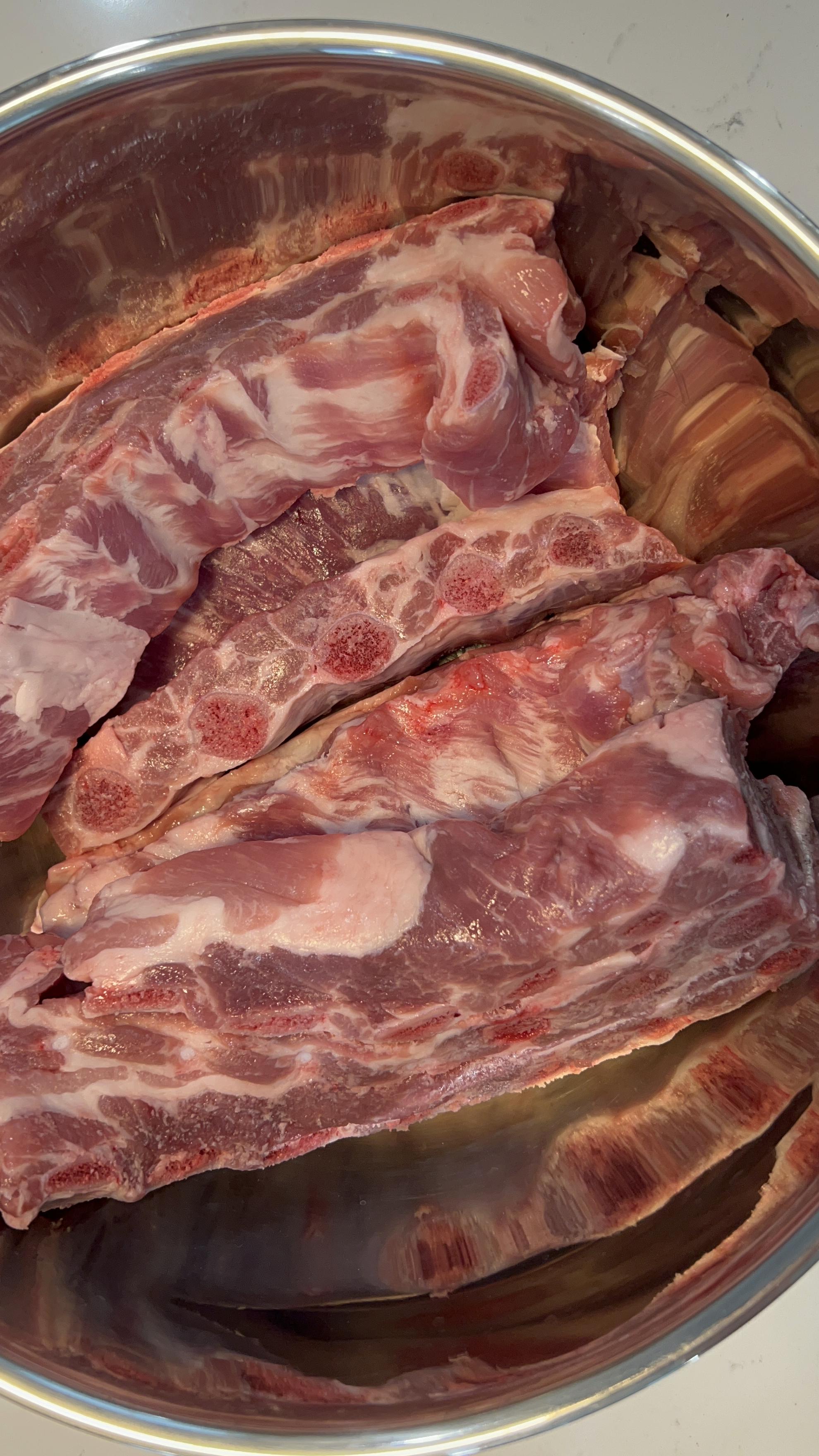 1. 돼지 등갈비를 통에 담아줍니다.