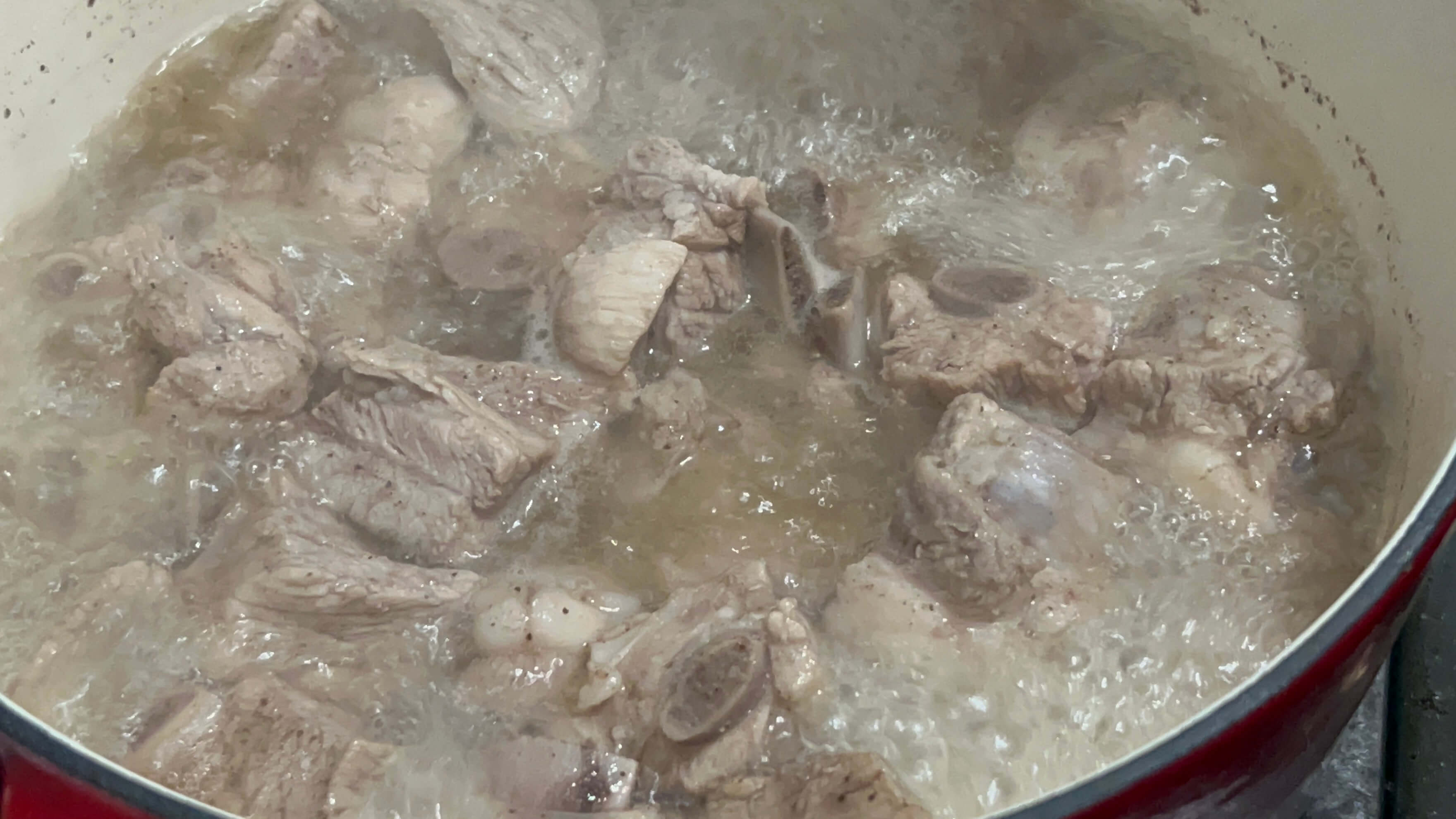 하루 동안 핏물제거를 해도, 뼛속 핏기가 아직 나오기 때문에 이렇게 두 번 삶아주는 게 좋습니다