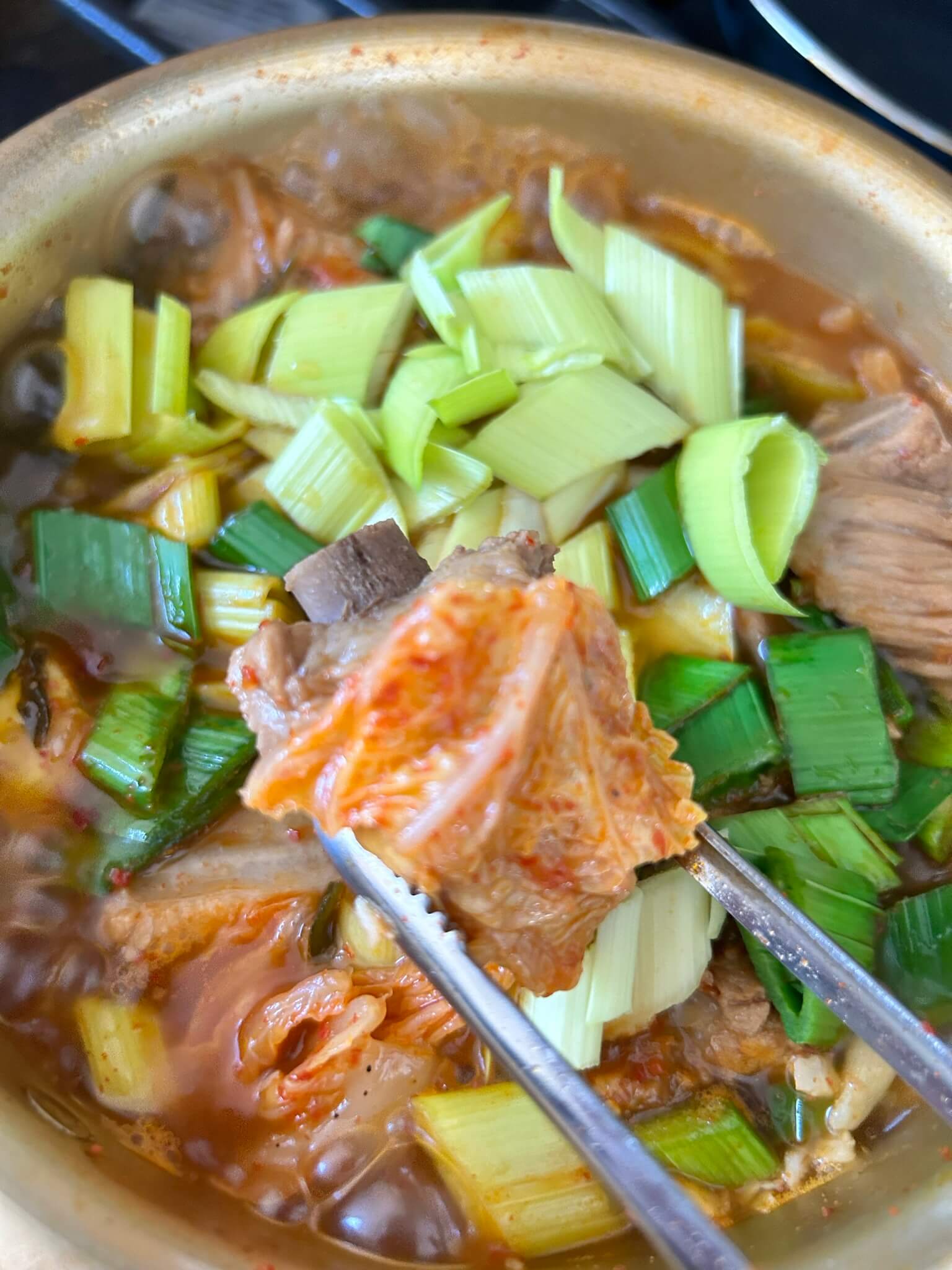 9. 배추가 충분히 숨이 죽고, 고기에도 국물이 충분히 스며들 때까지 푹 끓여줍니다.