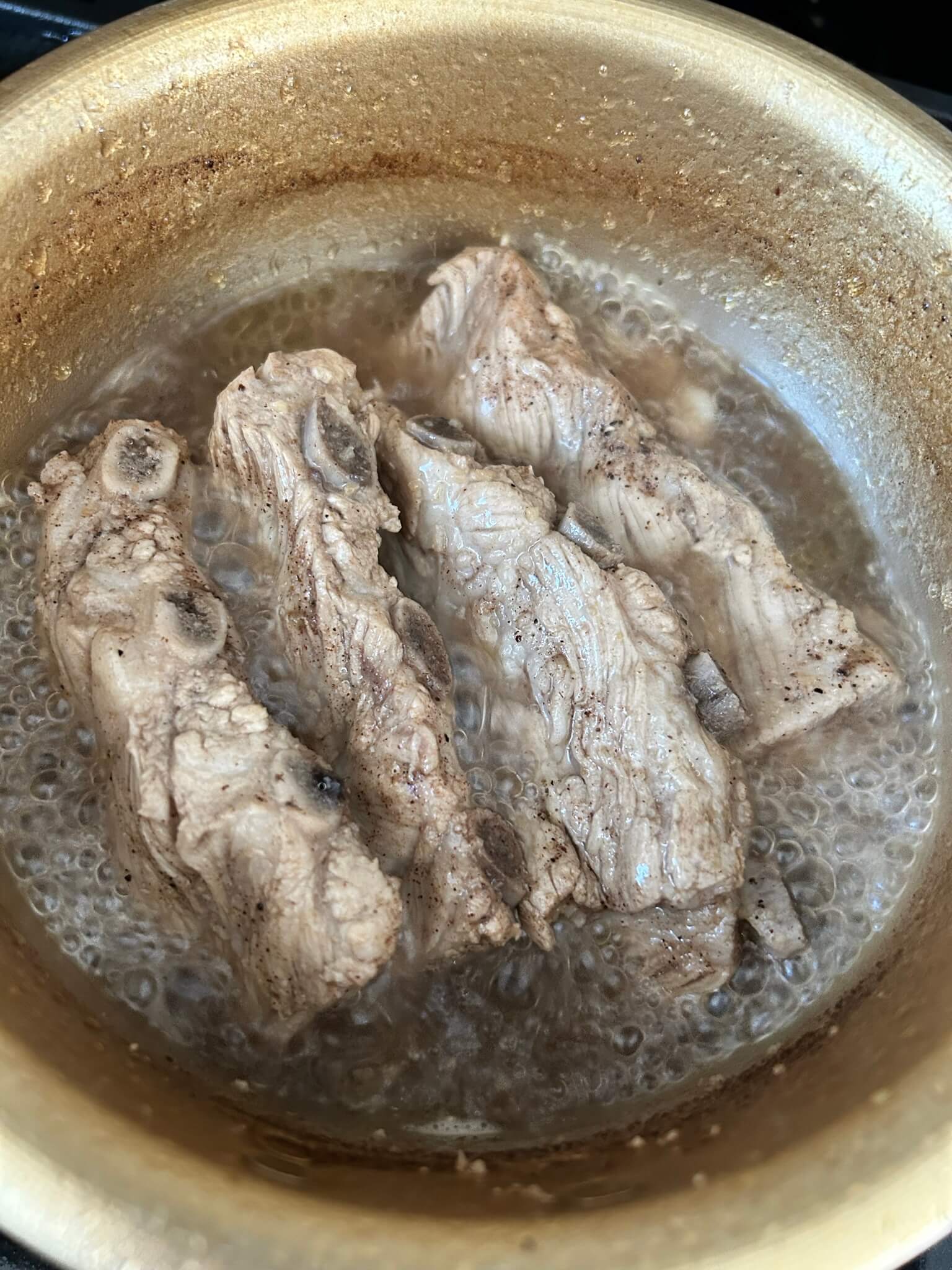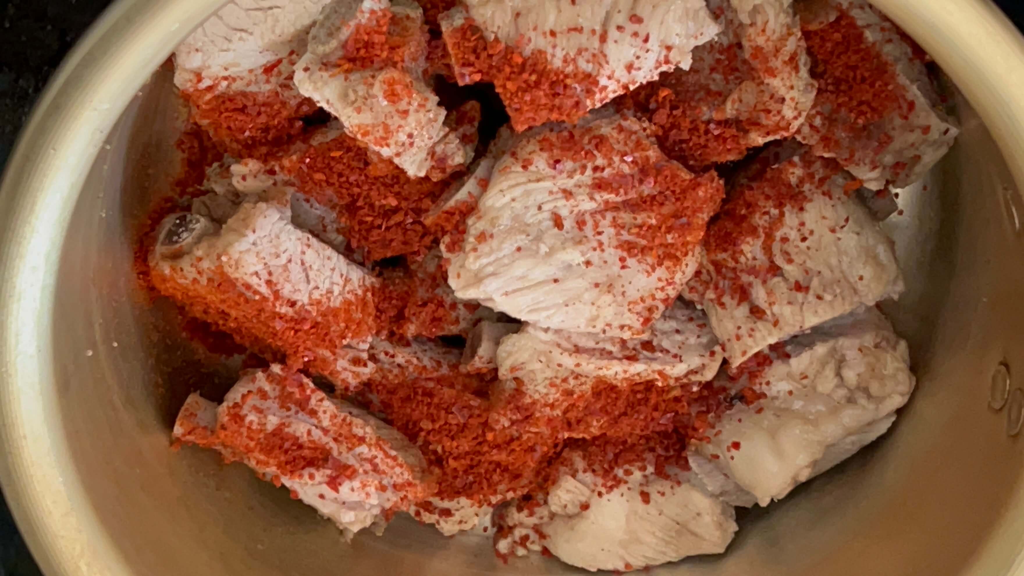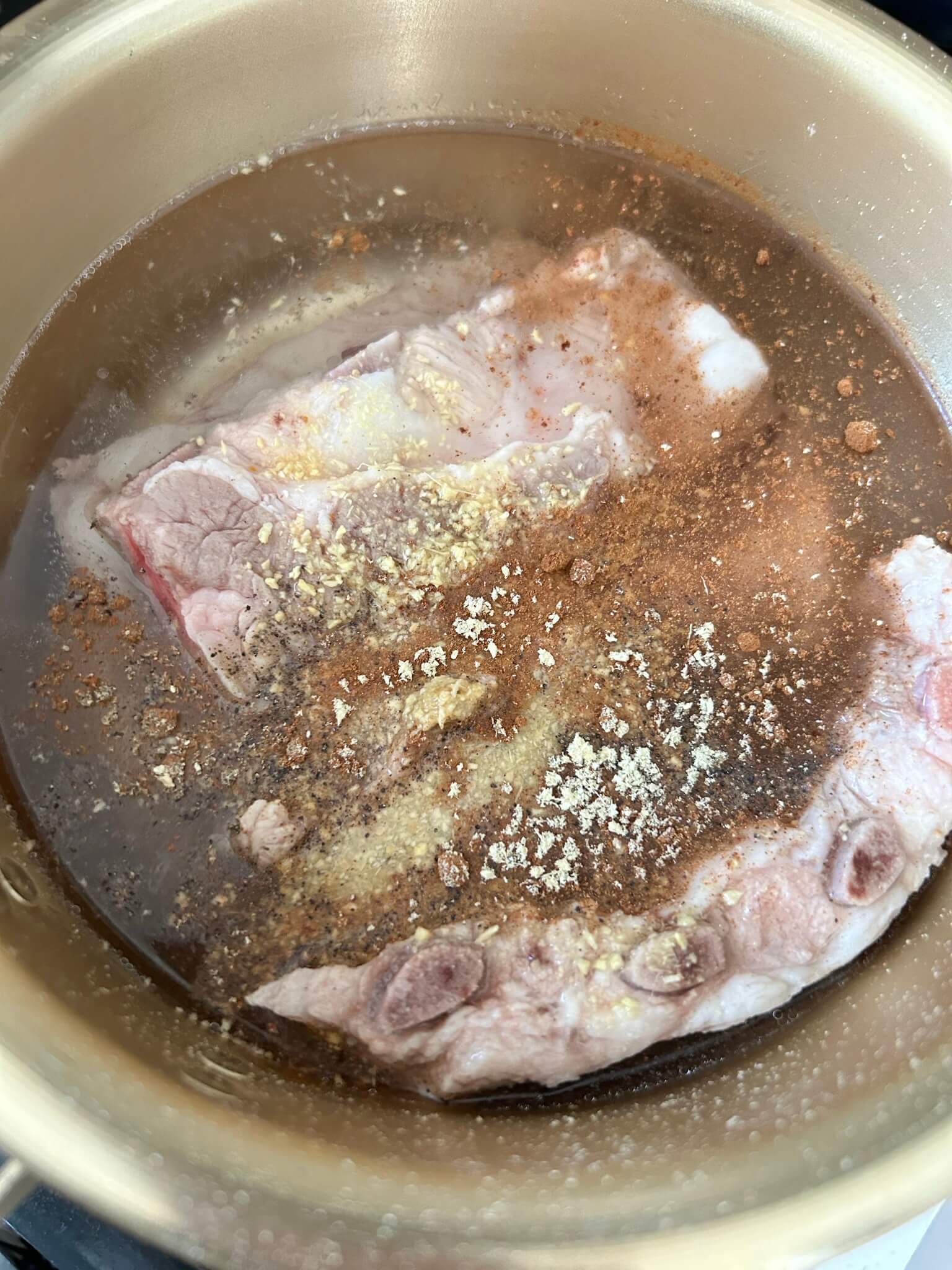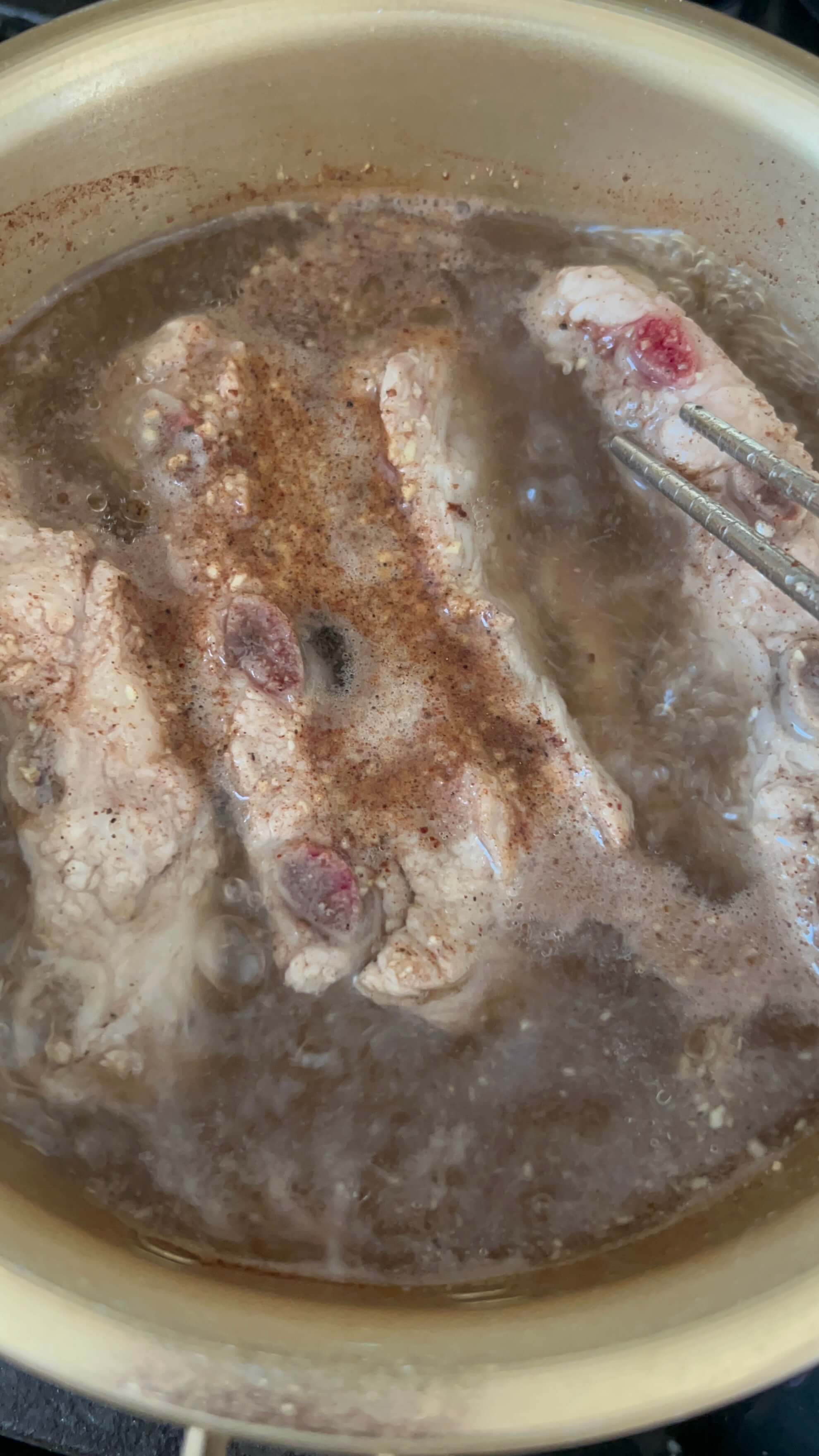 2. 한번 끓은 등갈비는 다시 이렇게 시나몬가루, 생강가루, 후추를 넣고 한번 더 끓여줍니다.