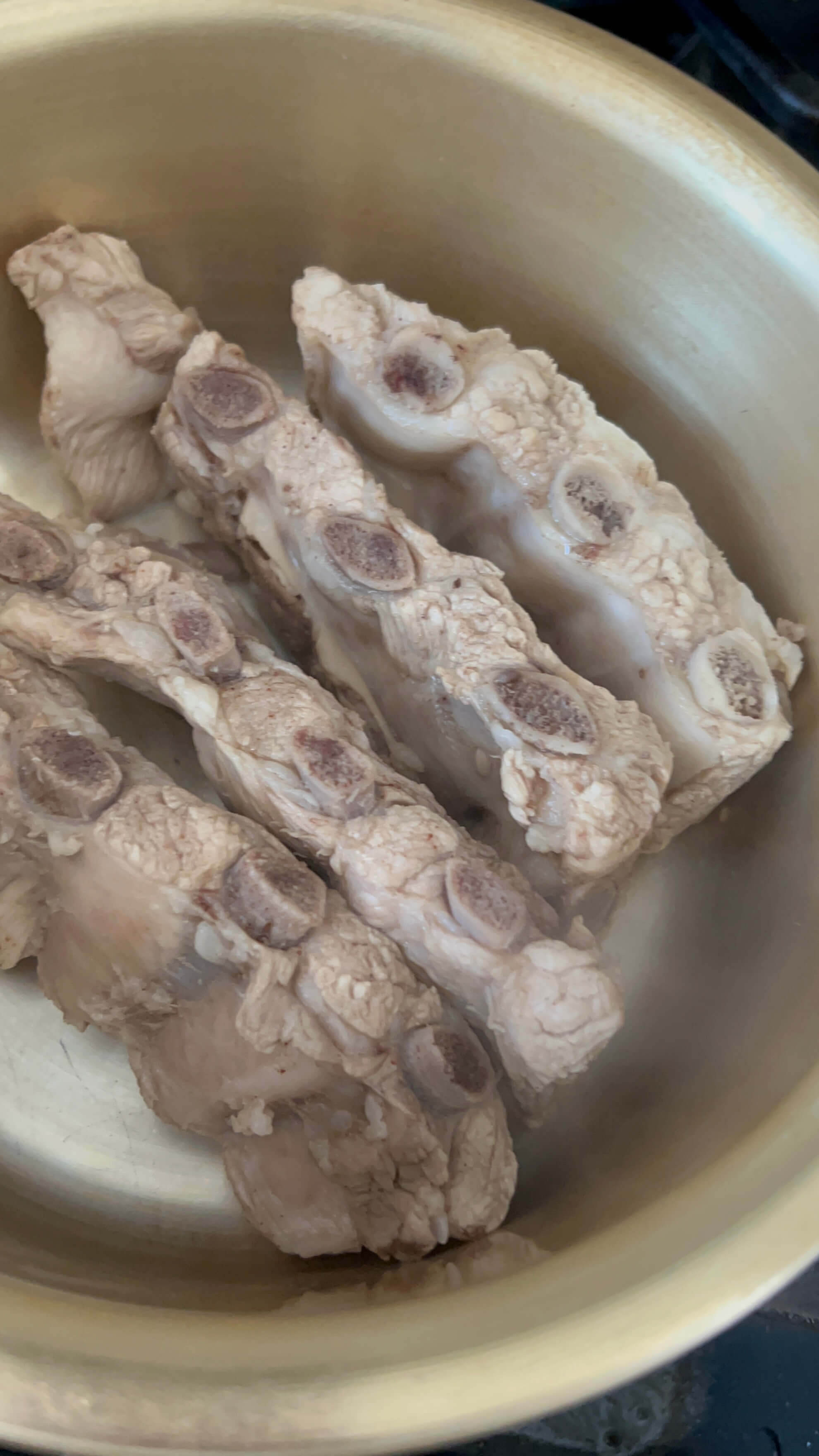 잡내에 신경을 많이 썼습니다. 이렇게 삶아주어야 뼈에서 핏기가 완전히 없는 것을 확인하실 수 있습니다.