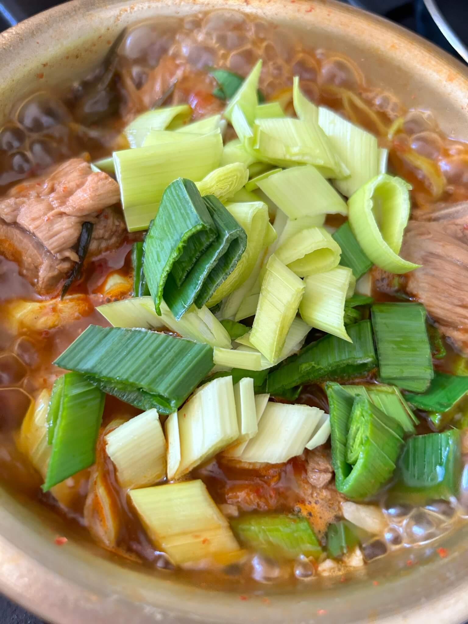 10. 한번 끓으면 대파를 종종 썰어서 한소끔 더 끓여줍니다.