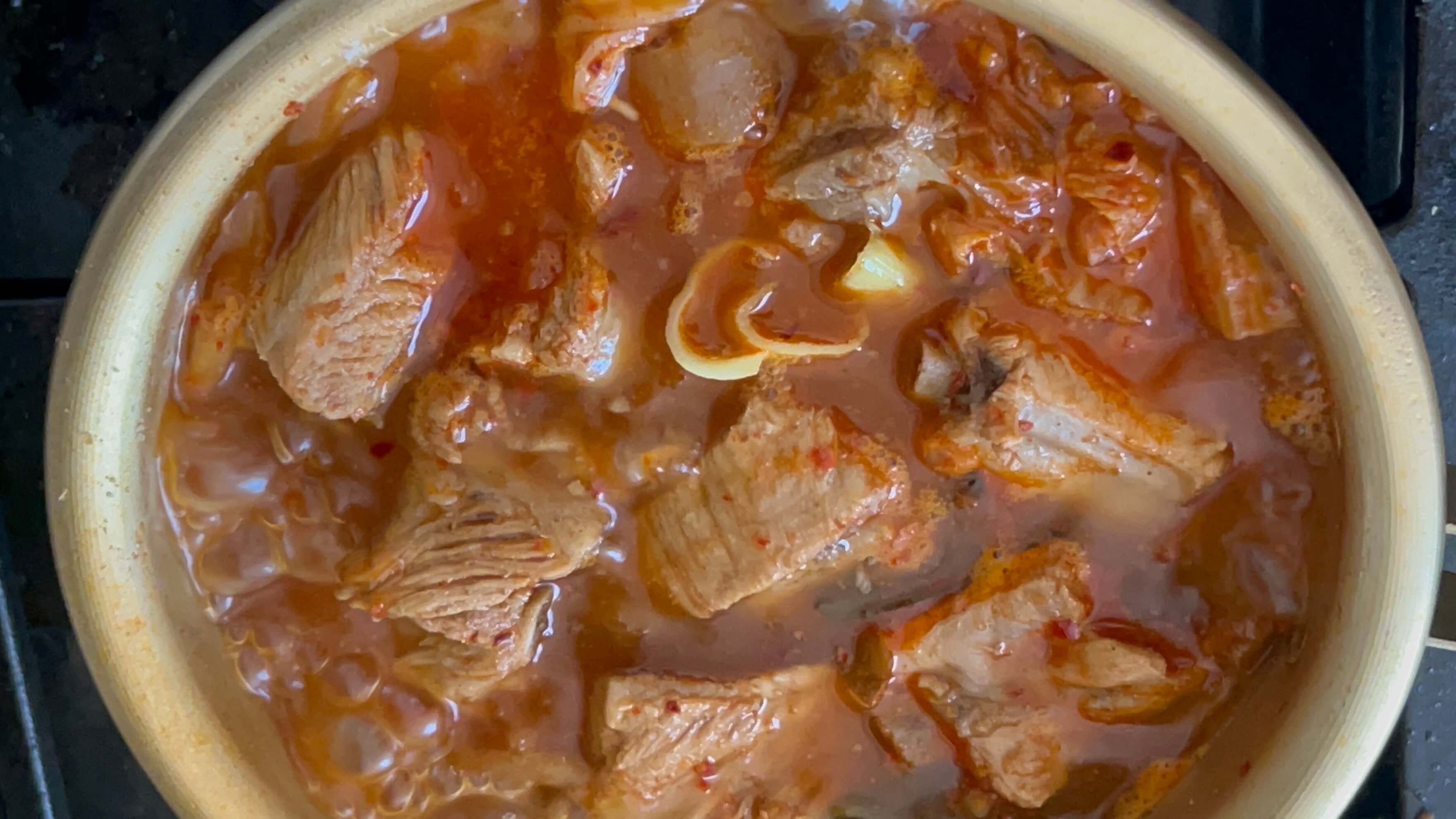 9. 배추가 충분히 숨이 죽고, 고기에도 국물이 충분히 스며들때까지 푹 끓여줍니다.