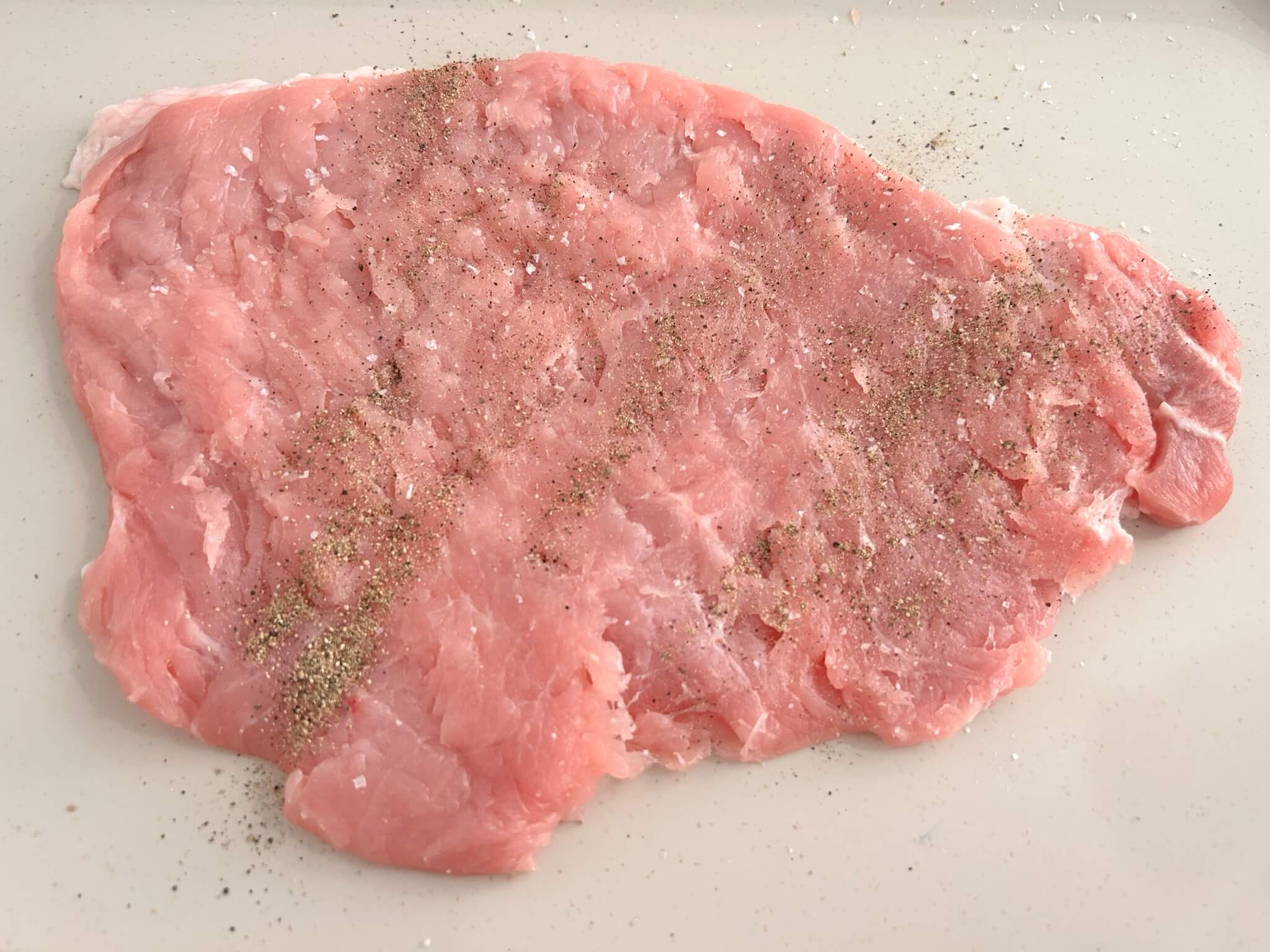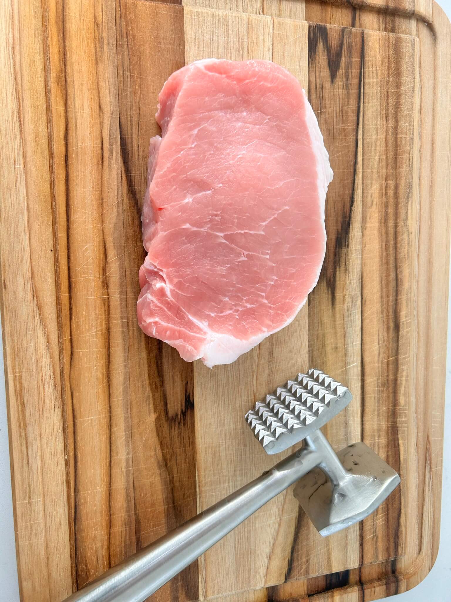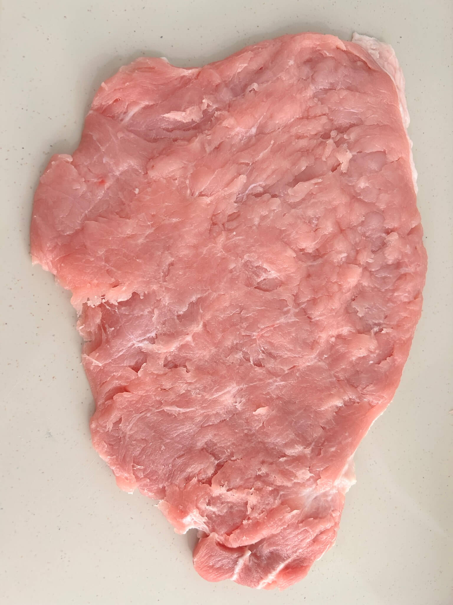 1. 등심을 고기다짐기로 얇아질 때까지 (취향에 맞는 두께까지) 다져줍니다.
