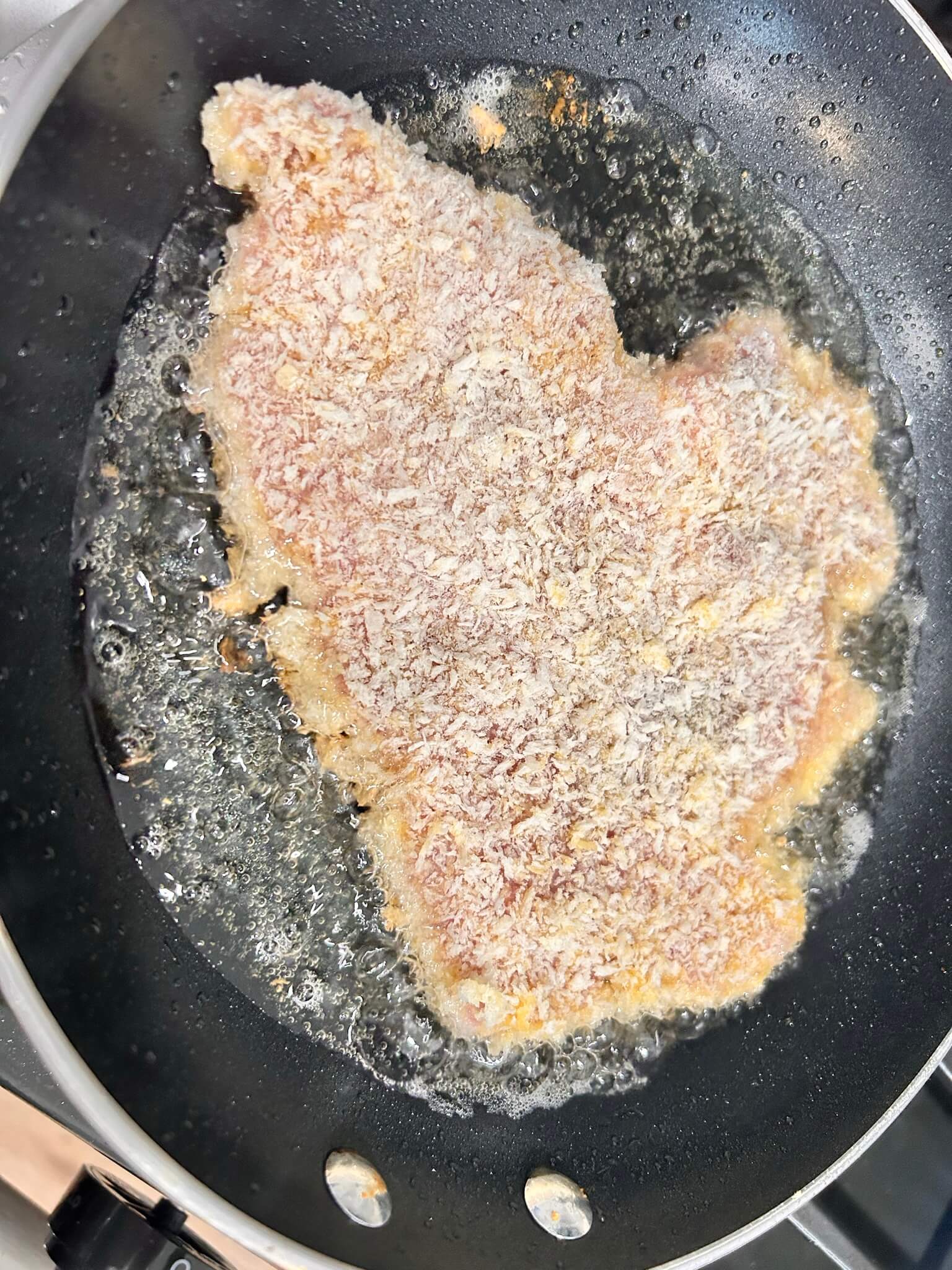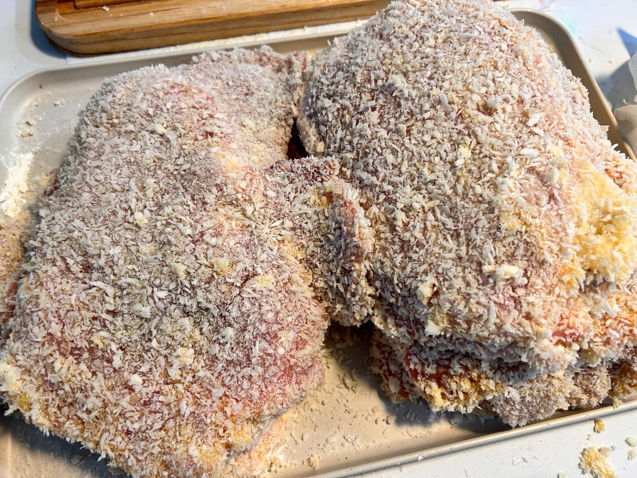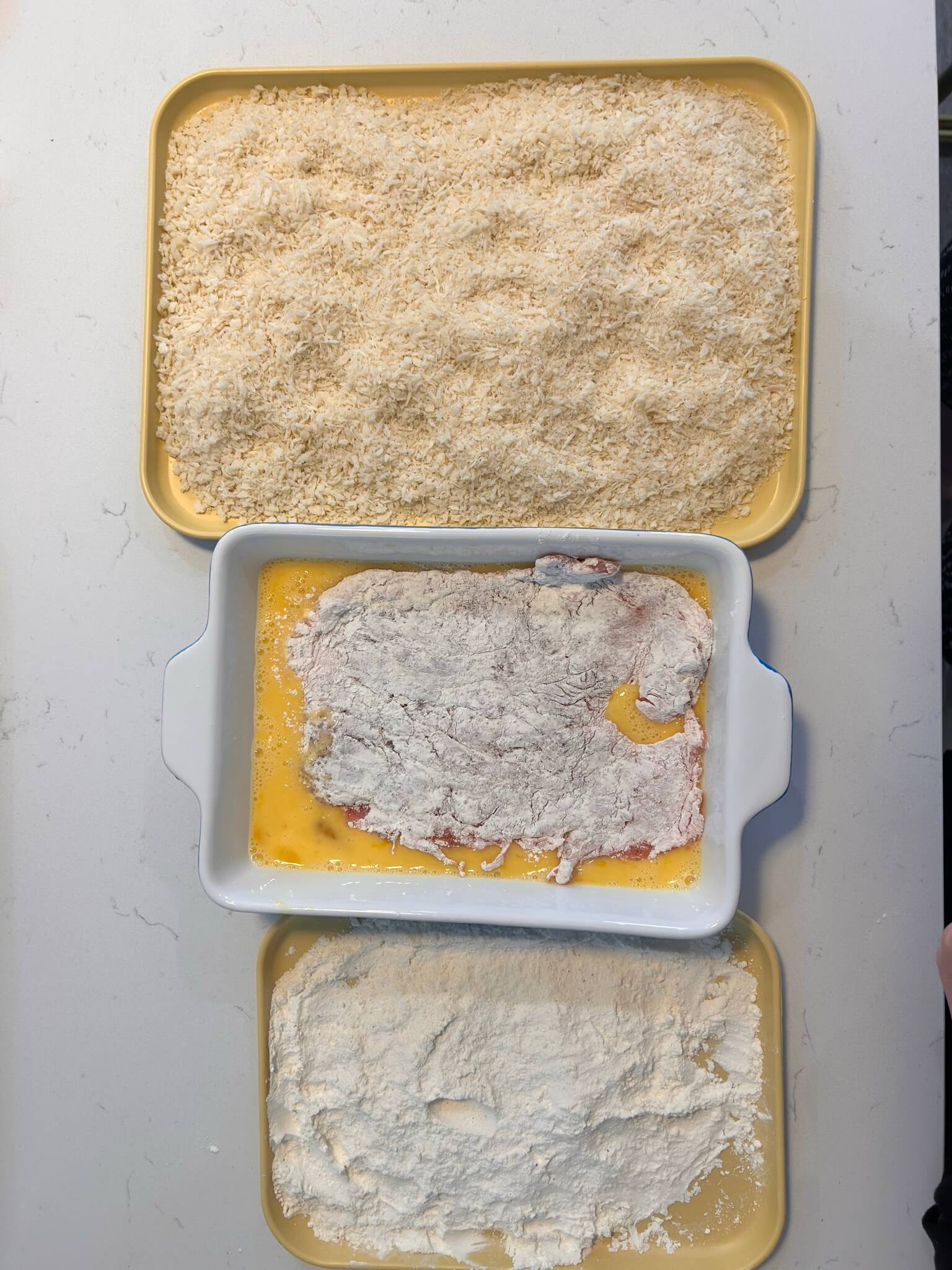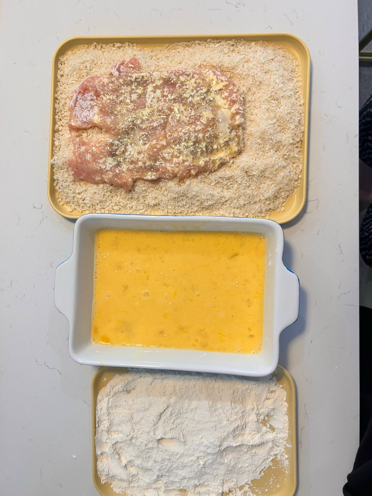 4. 고기를 밀가루-> 계란물-> 빵가루 순으로 묻혀줍니다.