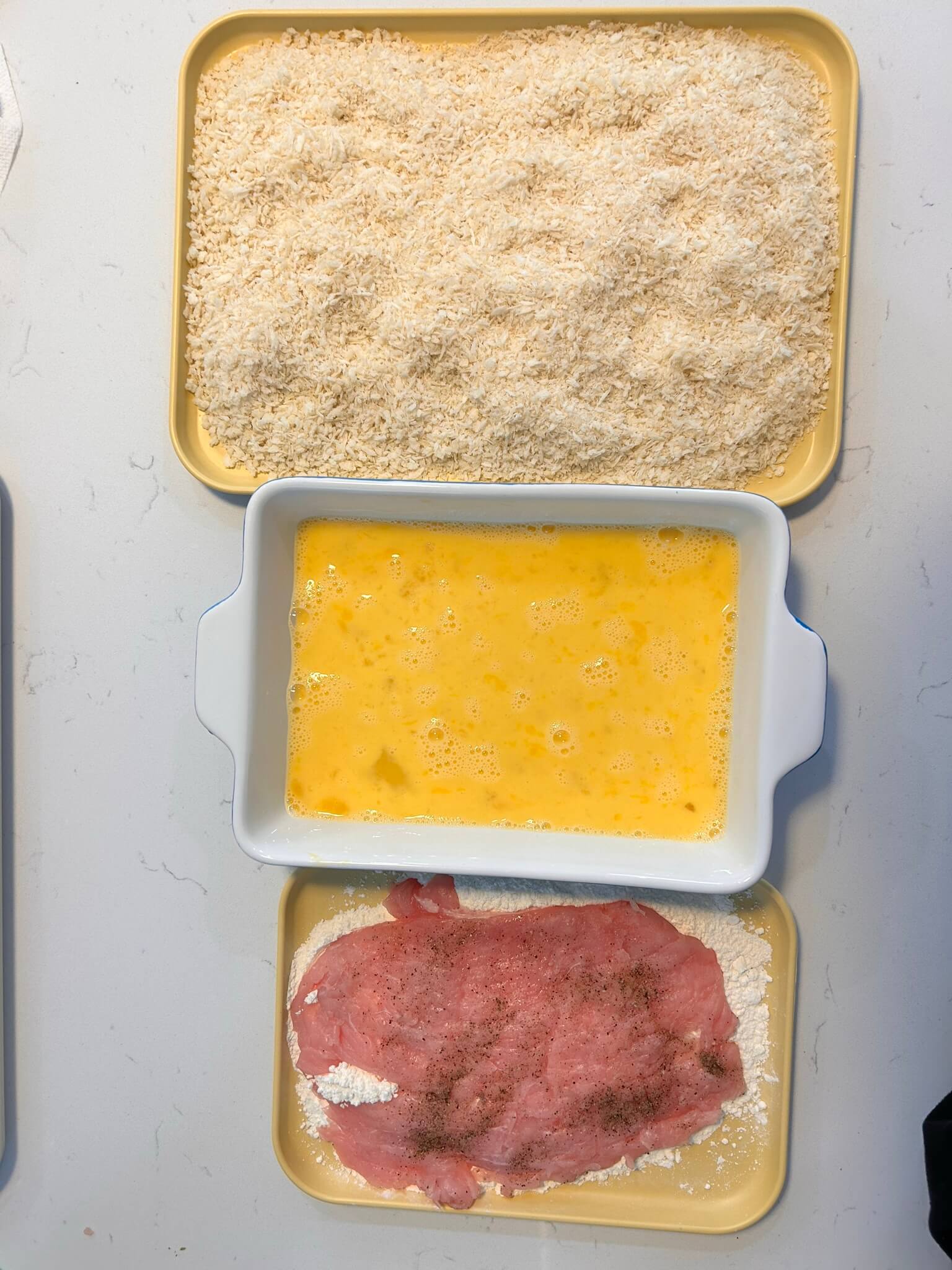 3. 밀가루, 계란, 빵가루를 준비해 줍니다.