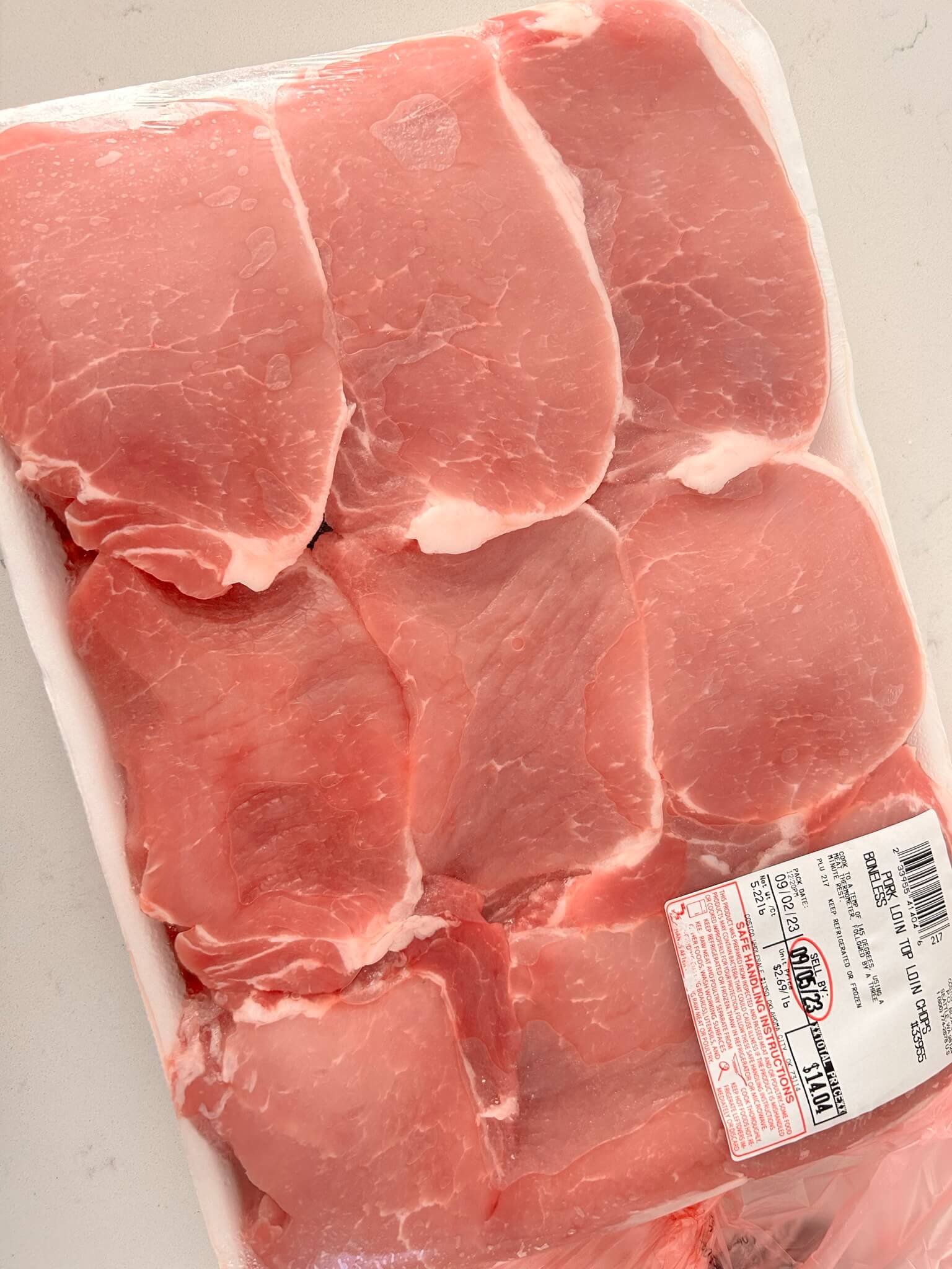 코스트코에서 산 이 돼지 등심 여러 장으로 있을 줄 알았는데 한 덩어리더라고요. 두께가 생각보다 많이 두껍습니다.