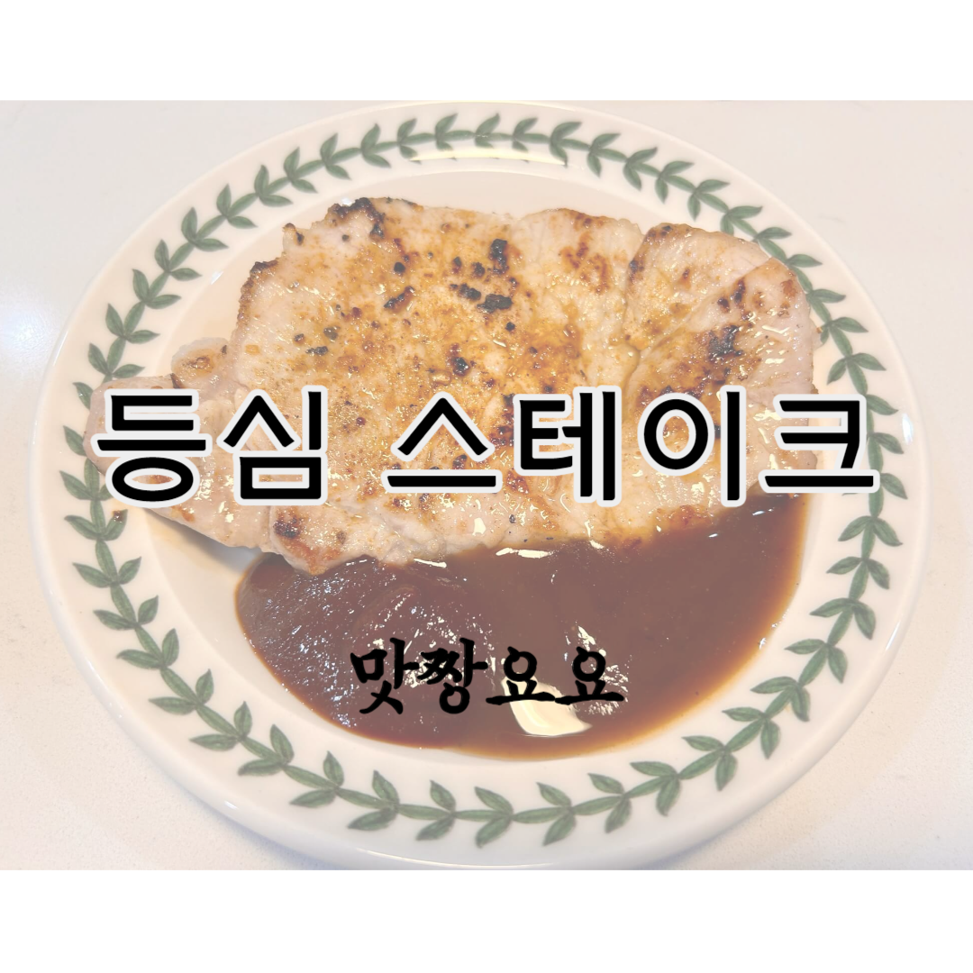 돼지 등심을 돈까스 하려고 사면서 한 덩이는 이렇게 등심 스테이크를 해 먹었습니다.