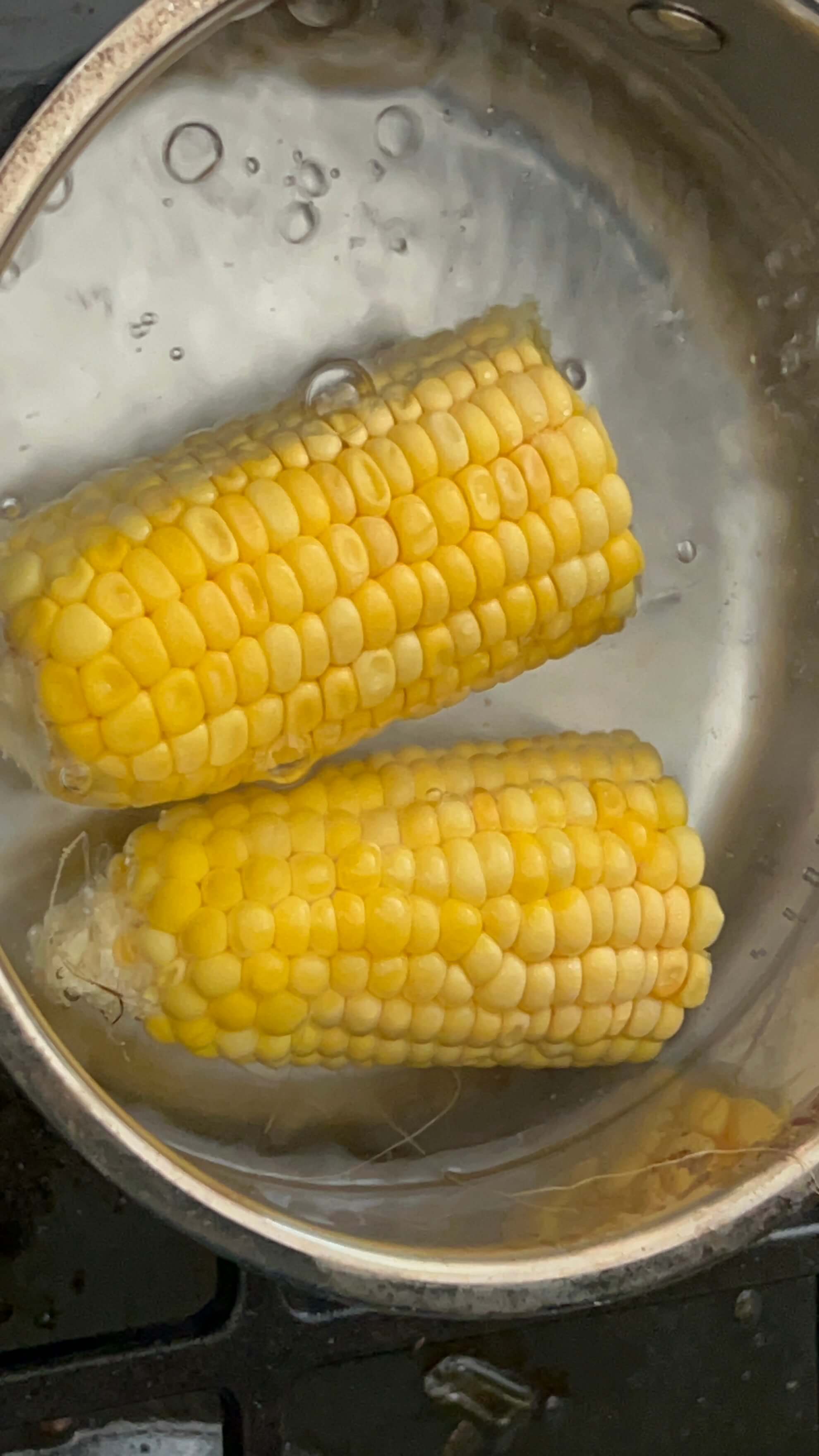 1. 옥수수를 끓는 소금물에 삶아 익혀줍니다.