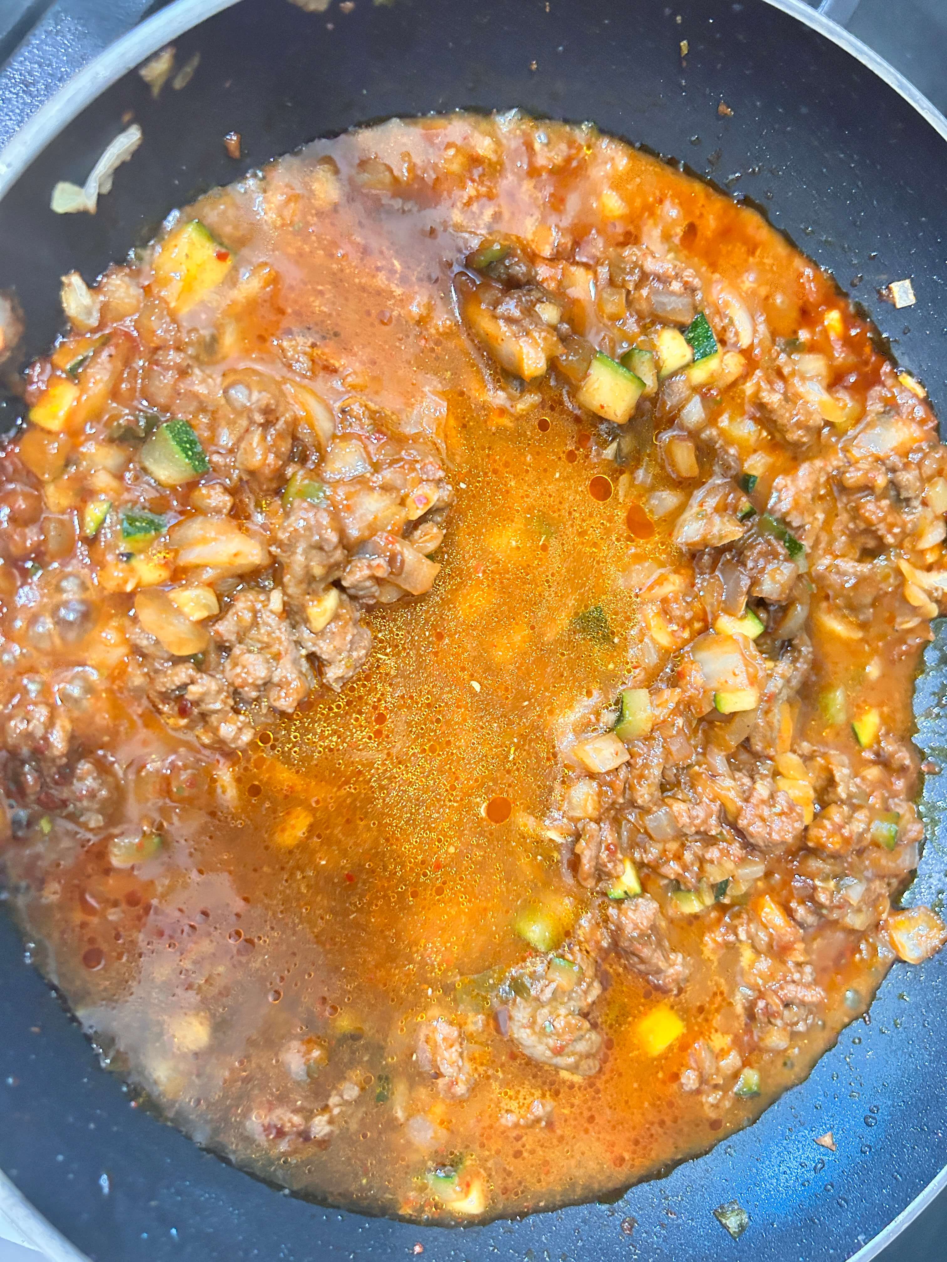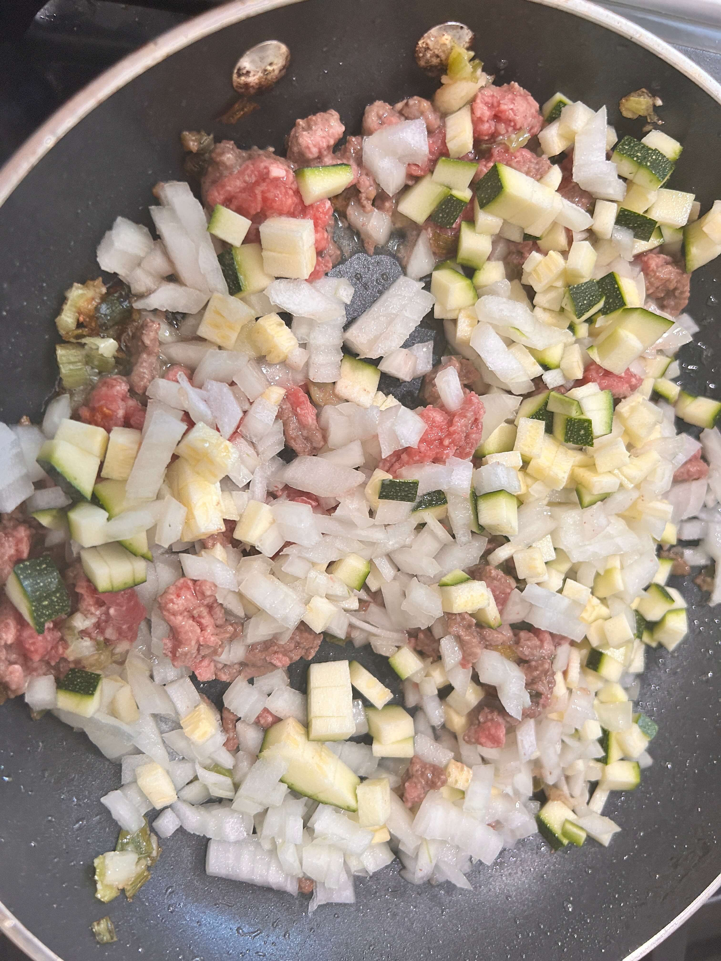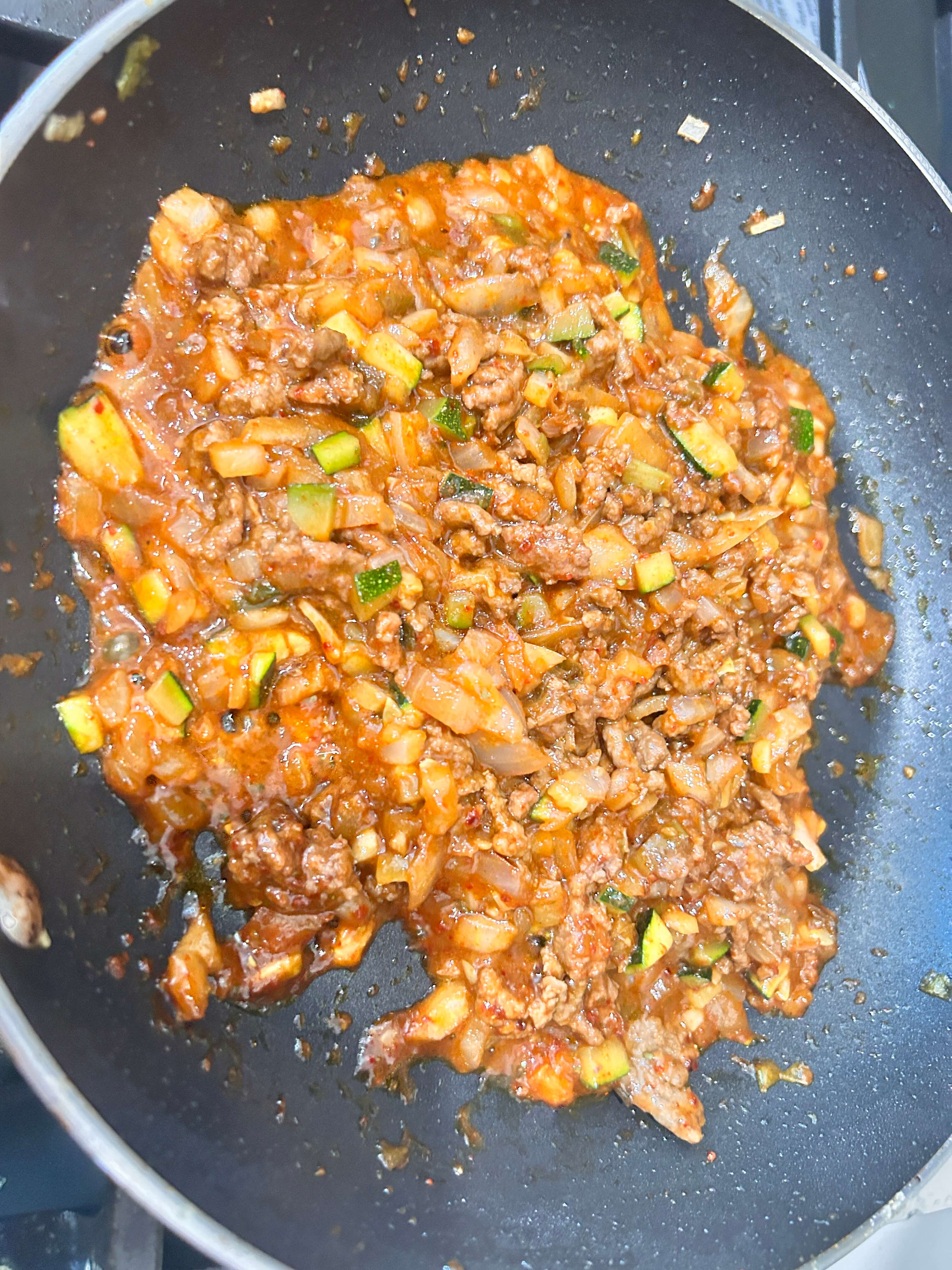 7. 다짐육을 넣어 노릇하게 볶아줍니다.