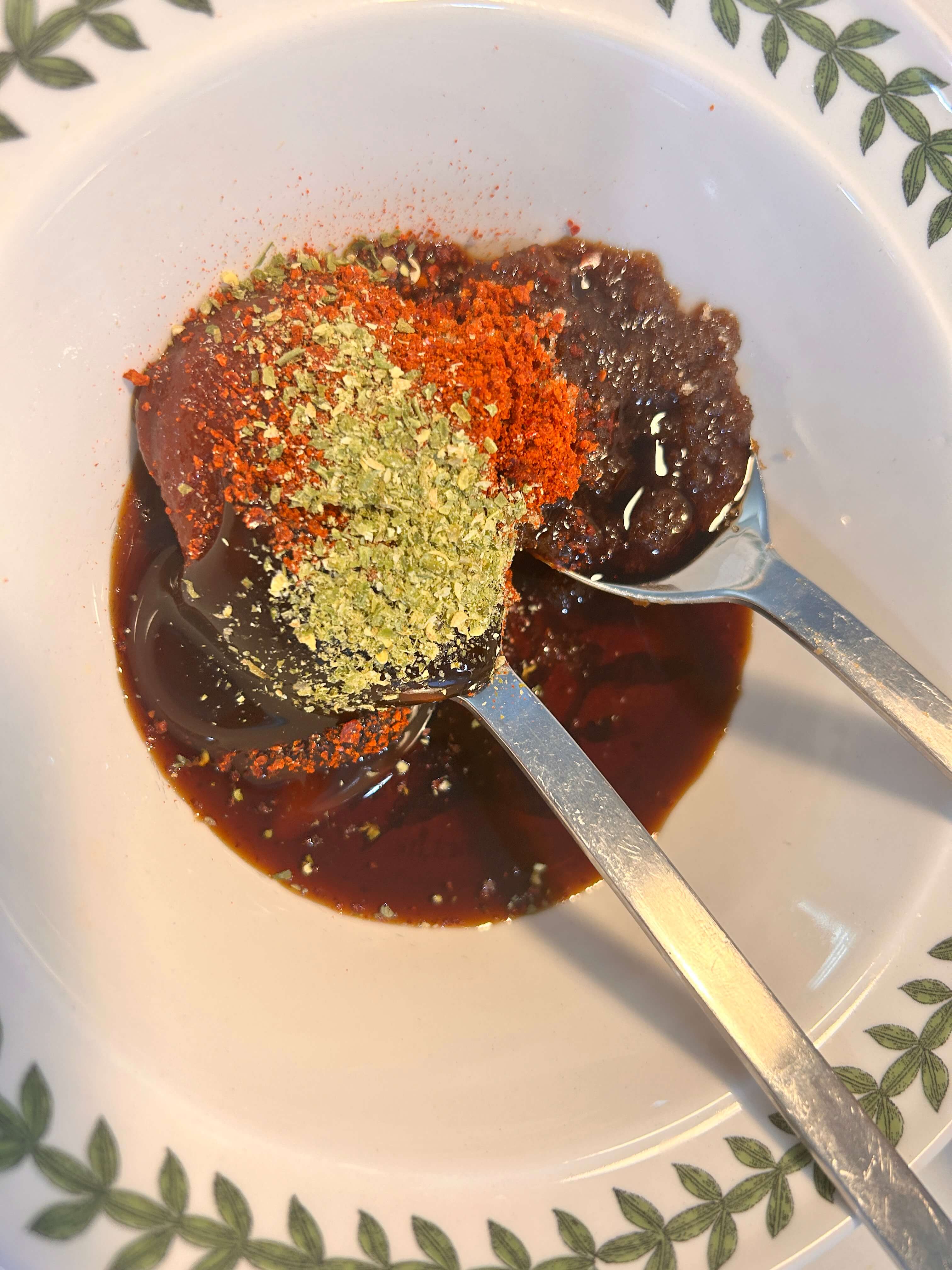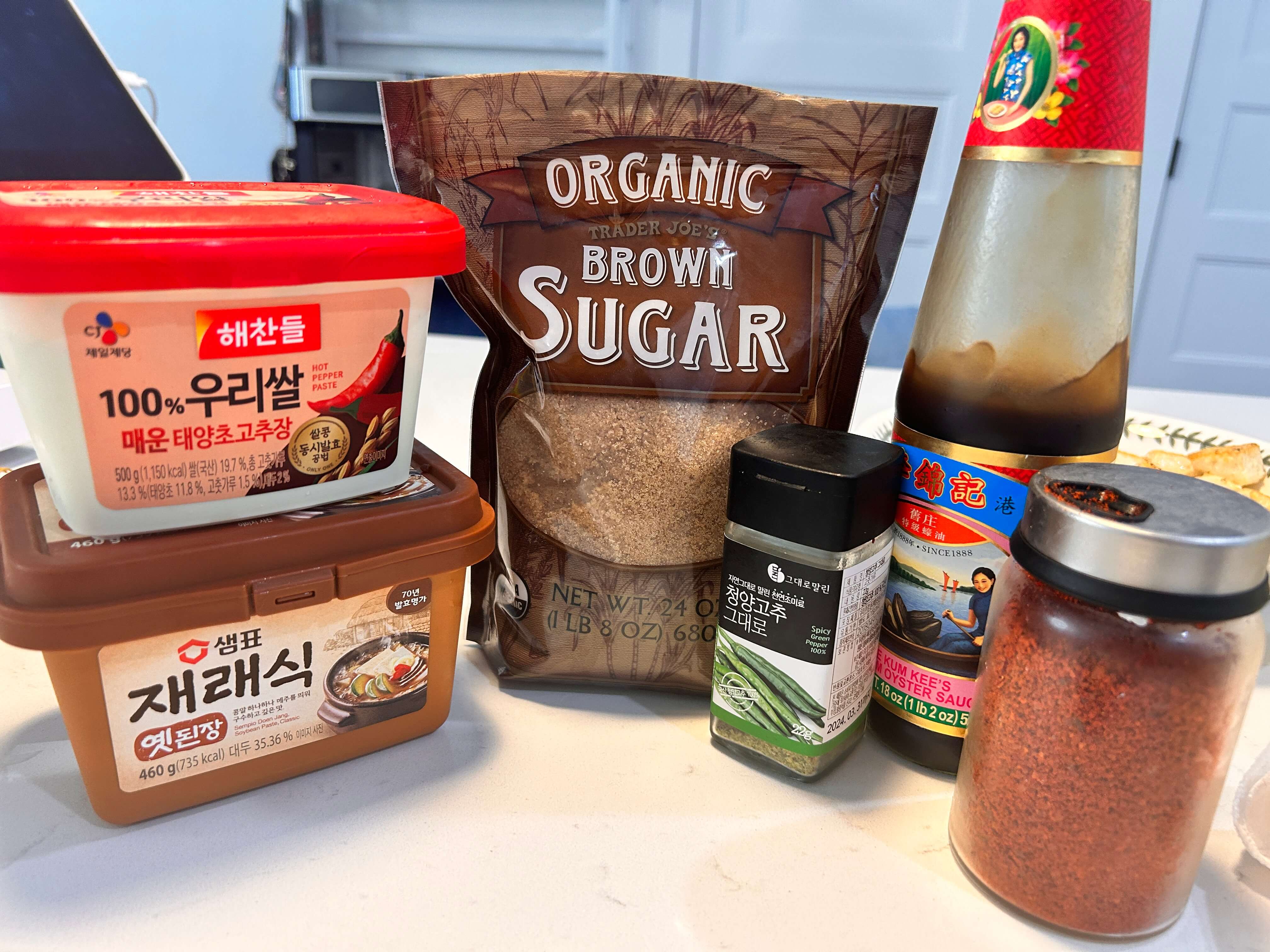 5. 소스를 먼저 준비해 줍니다. ( 고추장, 된장, 황설탕, 굴소스, 고춧가루, 청양고춧가루 )