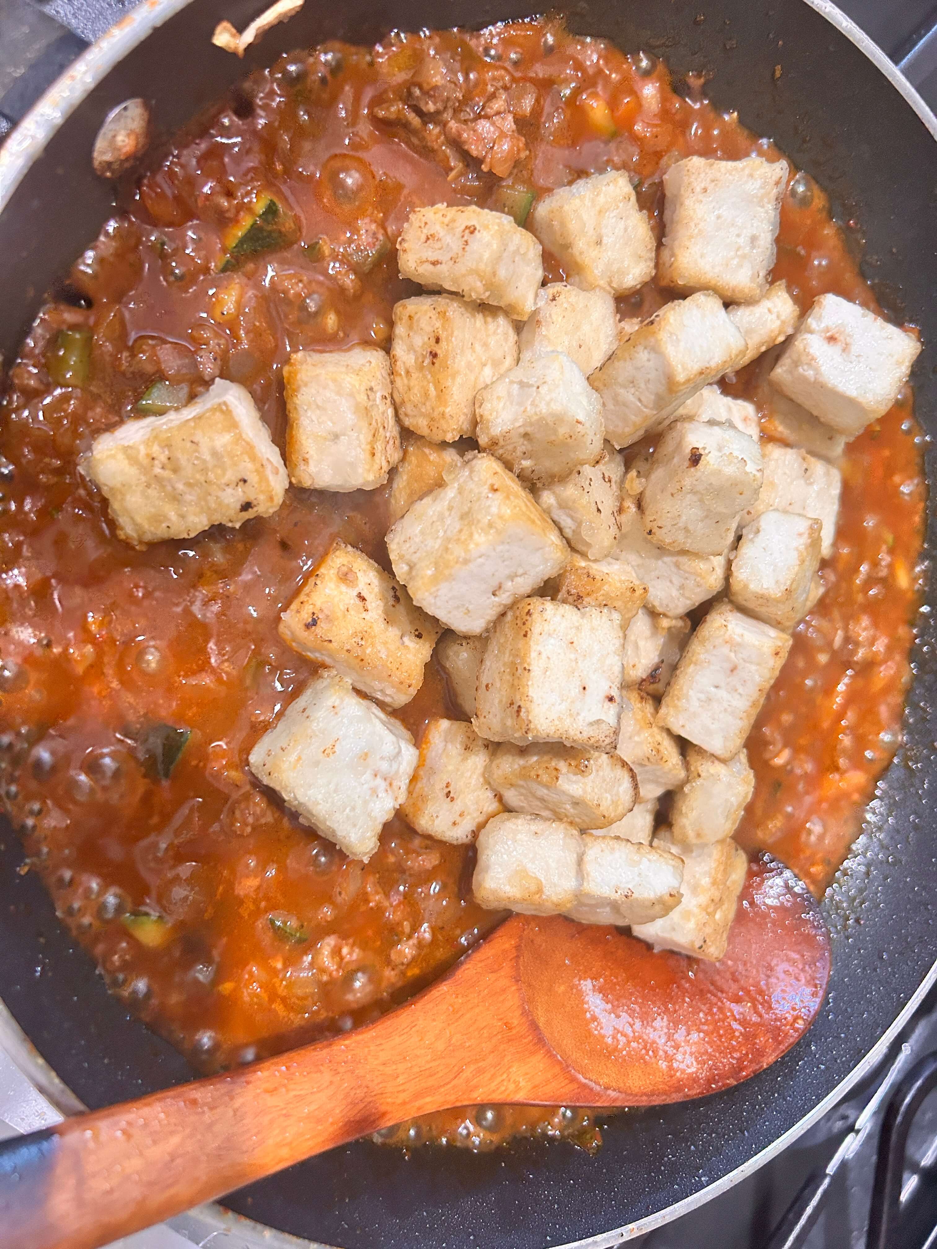 11. 준비된 두부를 넣고 볶아줍니다.