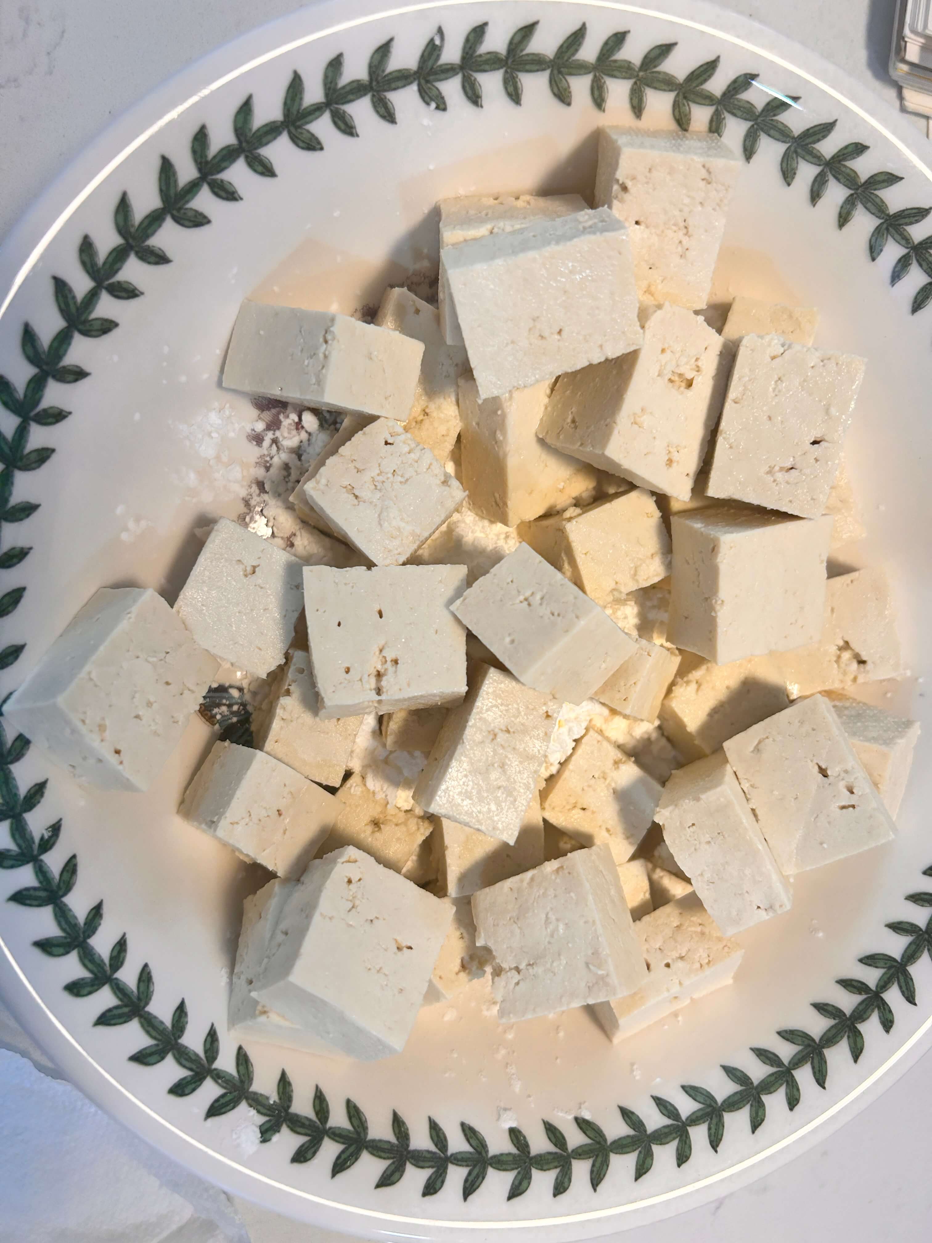 3. 두부에 전분을 살짝 묻혀줍니다.