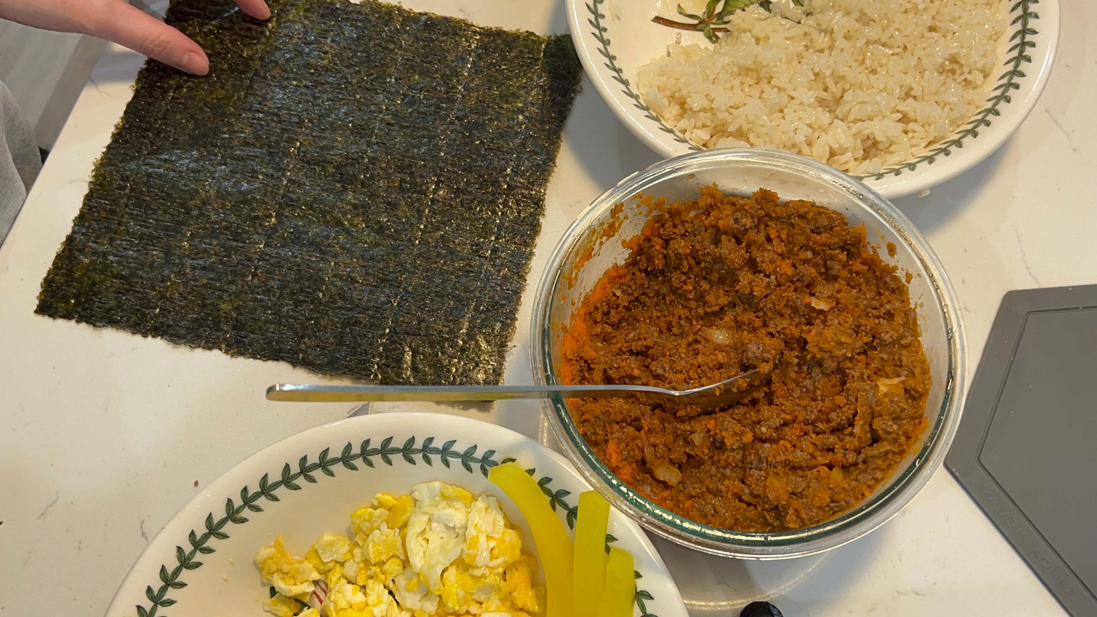 김밥 김밥~! 한국에 있을 때도 아주 간단하고 빠르게 김밥을 만들어 먹곤 했었는데요. 미국에서는 도시락 싸가기에도 너무 간편하고 좋은 한 끼라 속재료들만 바꿔가면서 김밥을 만들어 먹고 있