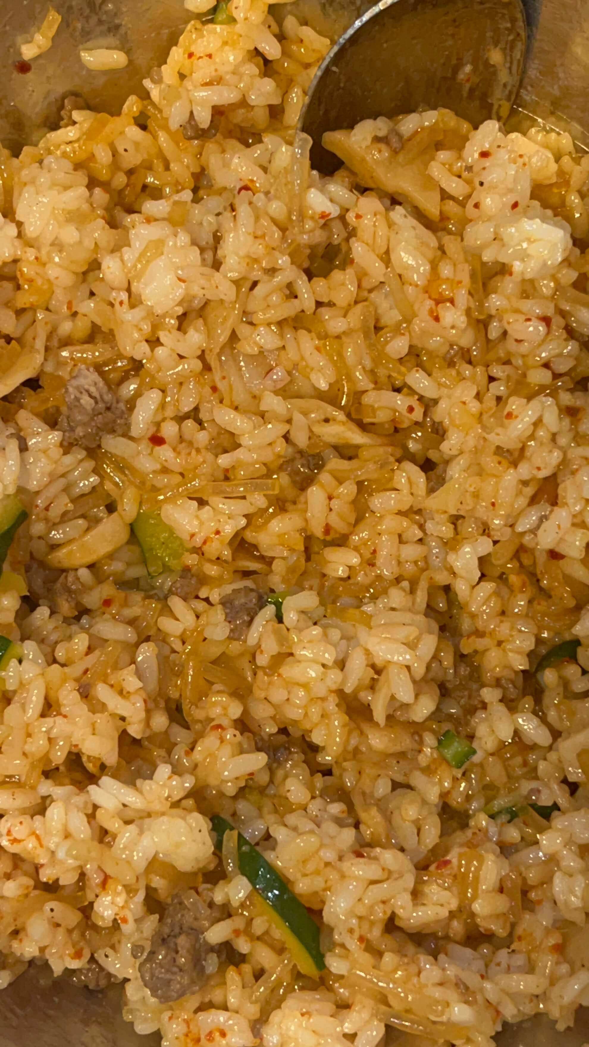 만두로 양념 밥을 만들고~!!! 김밥을 만들어주는 것입니다.