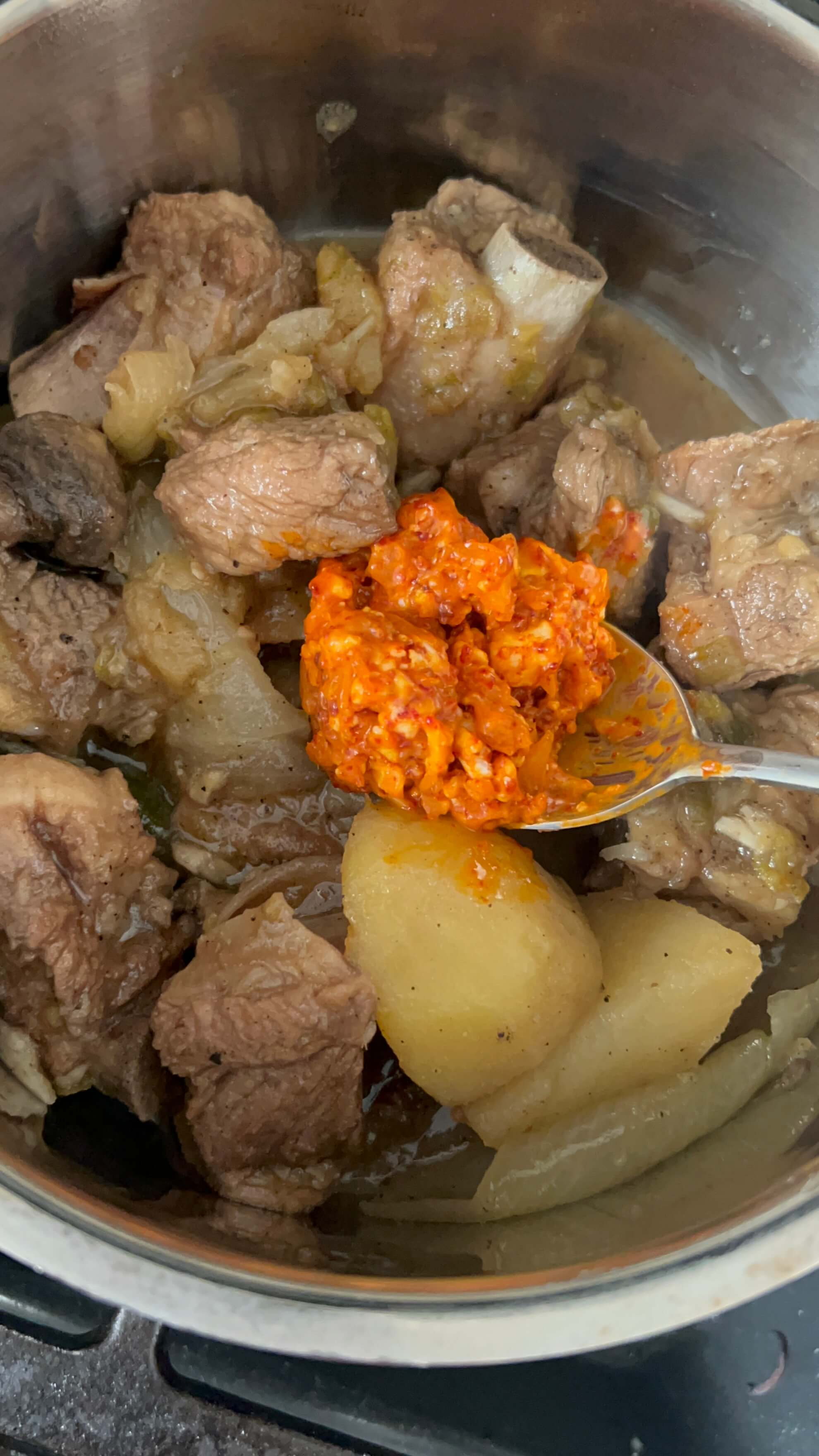 2. 갈비찜에 이 매운 소스를 추가해서 잘 볶아 줍니다.