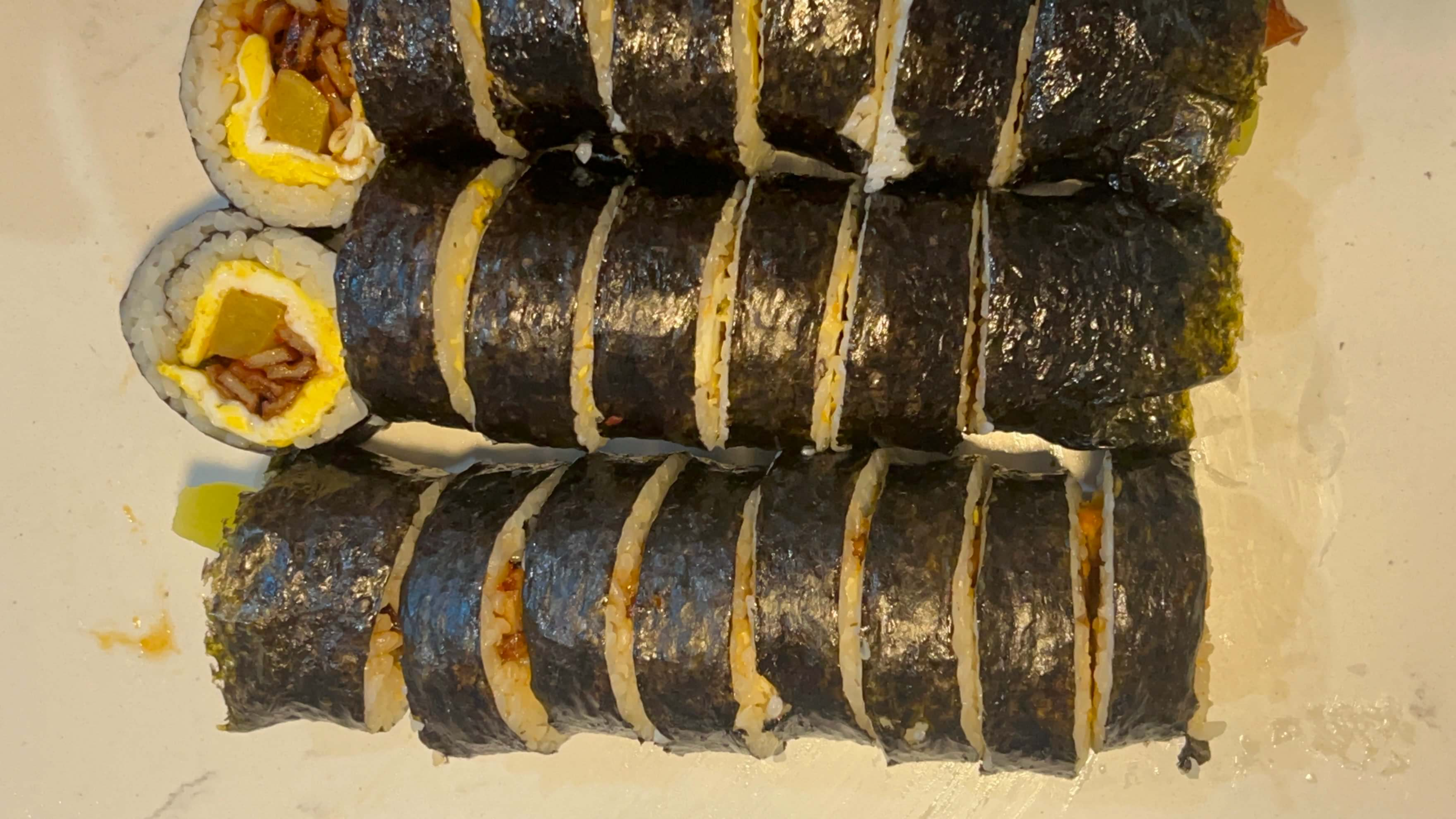 김밥 김밥~! 한국에 있을 때도 아주 간단하고 빠르게 김밥을 만들어 먹곤 했었는데요. 미국에서는 도시락 싸가기에도 너무 간편하고 좋은 한 끼라 속재료들만 바꿔가면서 김밥을 만들어 먹고 있